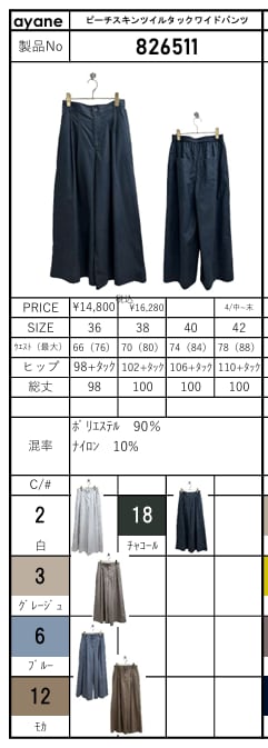 ![[予約販売] ayane アヤン ピーチスキンツイルタックワイドパンツ 826511 (4/中〜末入荷予定)](https://baseec-img-mng.akamaized.net/images/item/origin/50615eb8486f0153690d4229eb5ac019.jpg?imformat=generic)