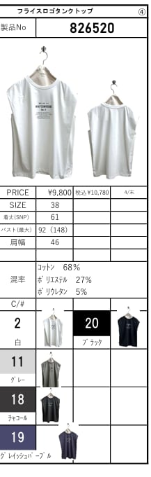 [予約販売] ayane アヤン フライスロゴタンクトップ 826520 (4/末入荷予定)