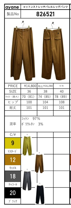 ![[予約販売] ayane アヤン コットンストレッチバレルレッグパンツ 826521 (4/末入荷予定)](https://baseec-img-mng.akamaized.net/images/item/origin/0b1bf65d563d78c1cc656d3d0825104c.jpg?imformat=generic)