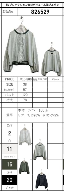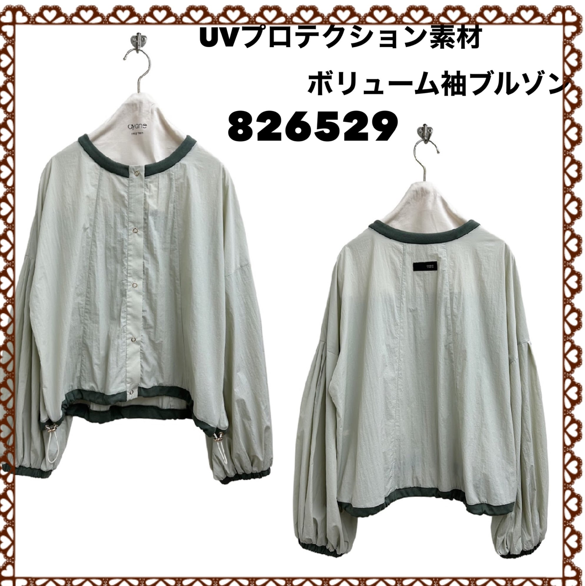 [予約販売] ayane アヤン UVプロテクション素材ボリューム袖ブルゾン 826529 (4/中〜末入荷予定)
