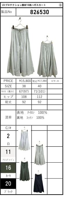 [予約販売] ayane アヤン UVプロテクション素材16枚ハギスカート 826530 (4/中〜末入荷予定)