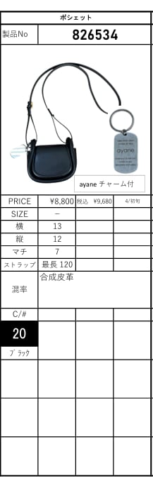 [予約販売] ayane アヤン ポシェット 826534 (4/初旬入荷予定)