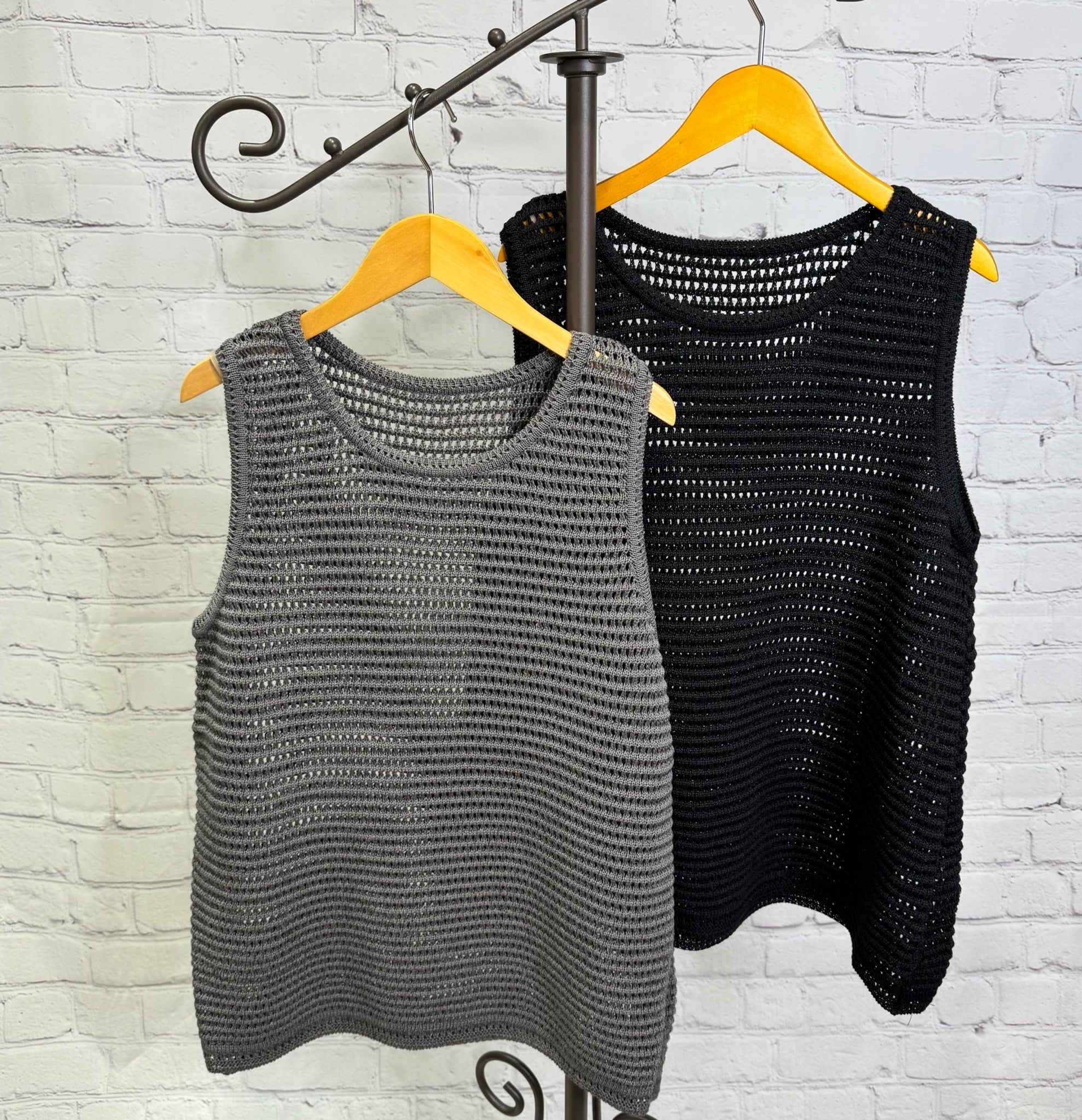 珍しいメッシュ編みのタンクトップです。レイヤードやインナーとしてちらっと見える感じがレースを見せる感覚に近くとてもかわいいです。コーディネートのスパイス的な要素をもっているアイテムです。