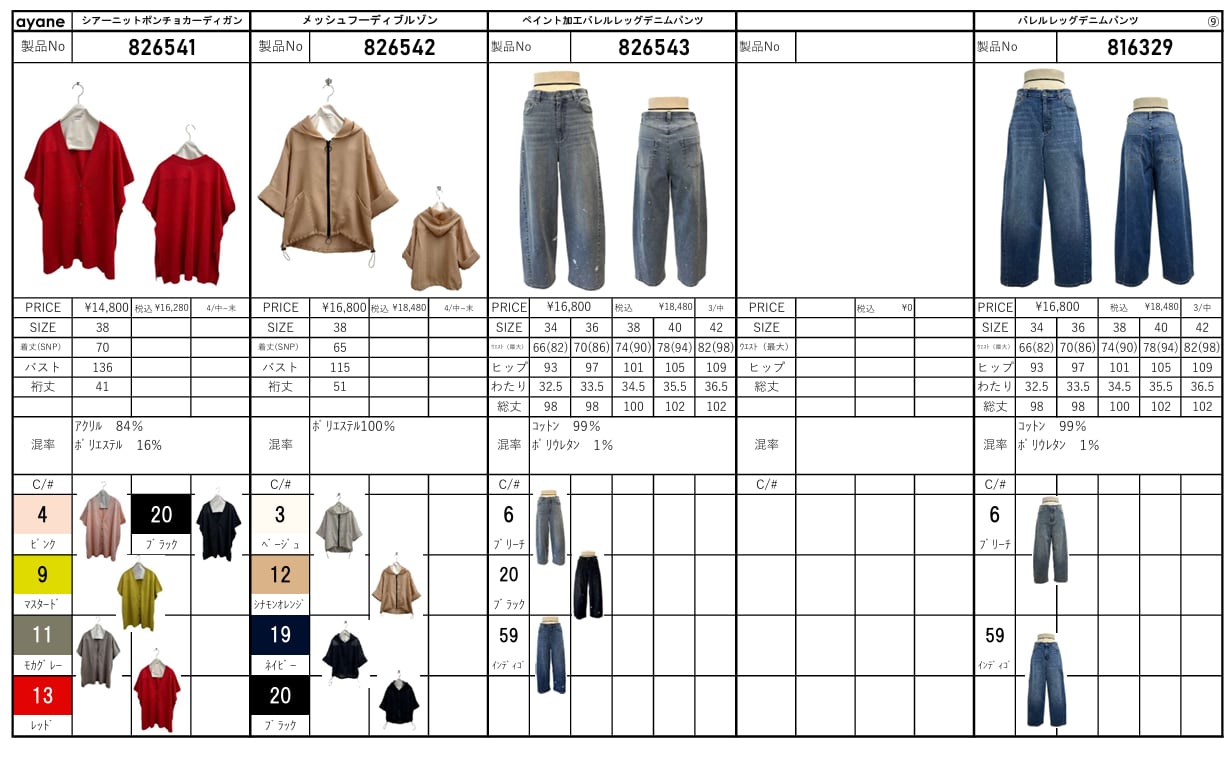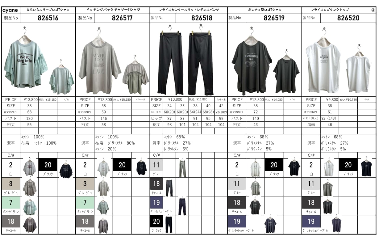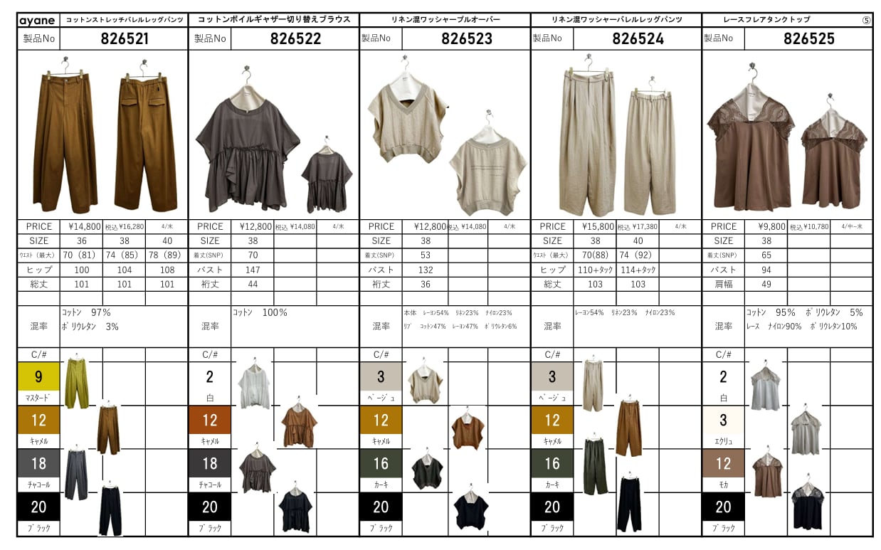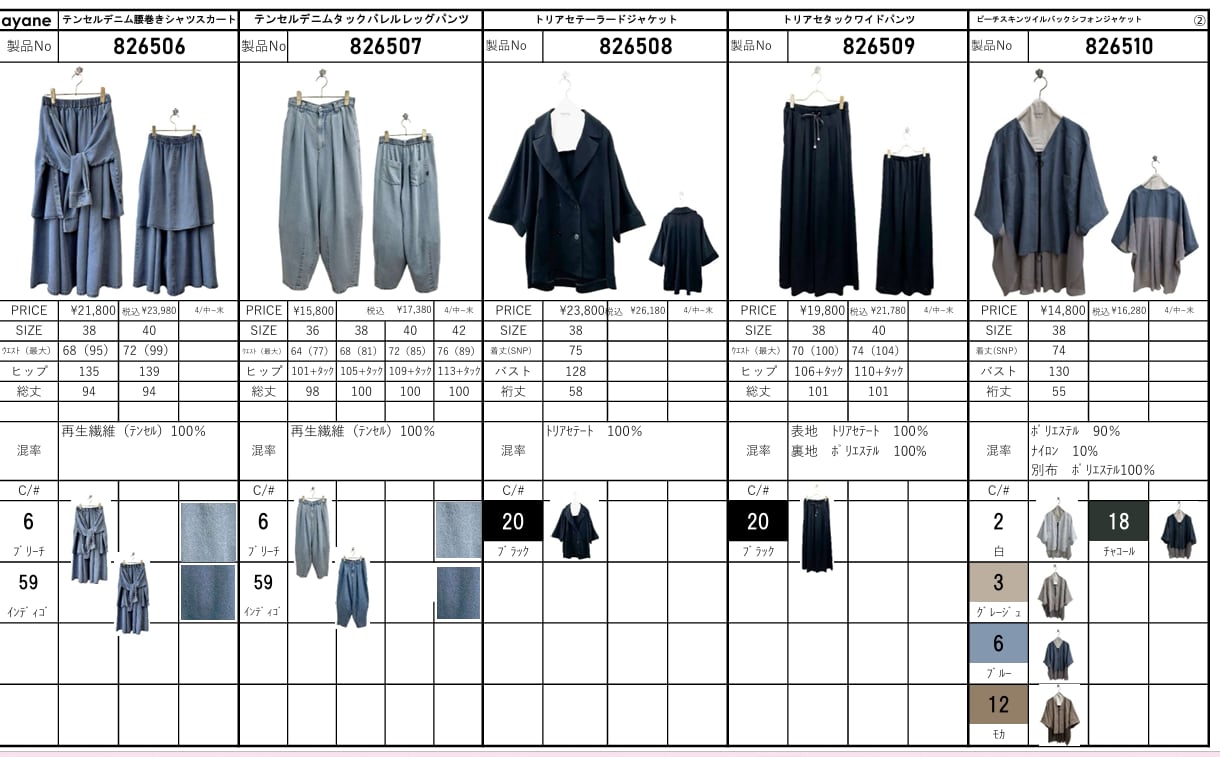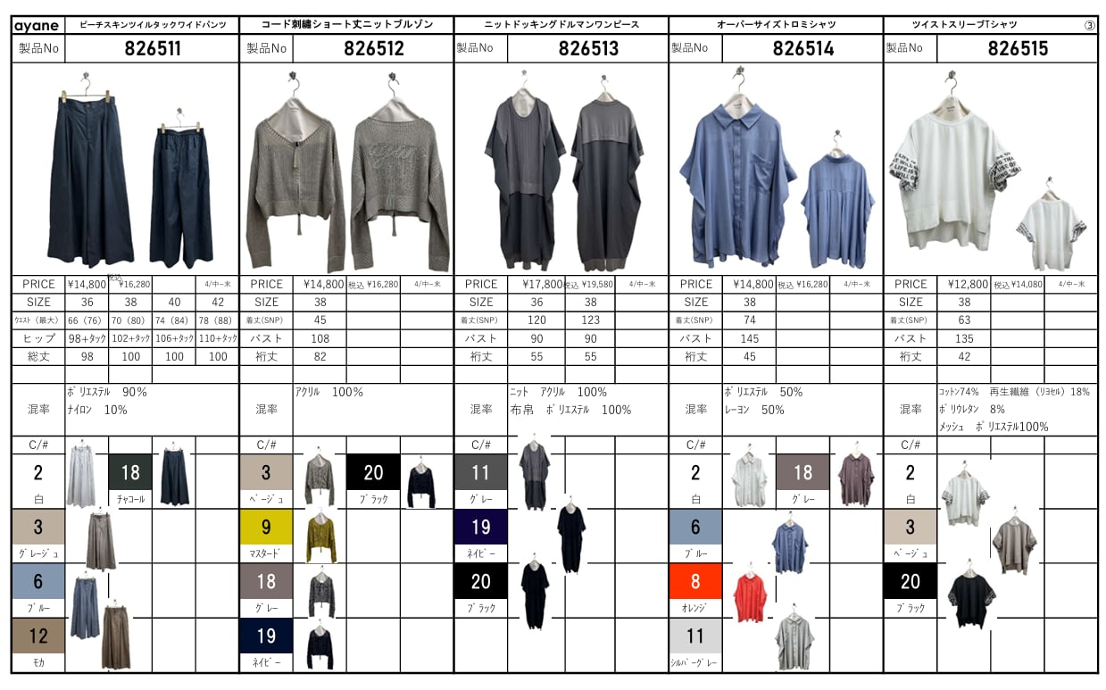 ⚫︎サイズ、混率、納期などはアイテム毎に違いますのでパターン表ご確認願います。