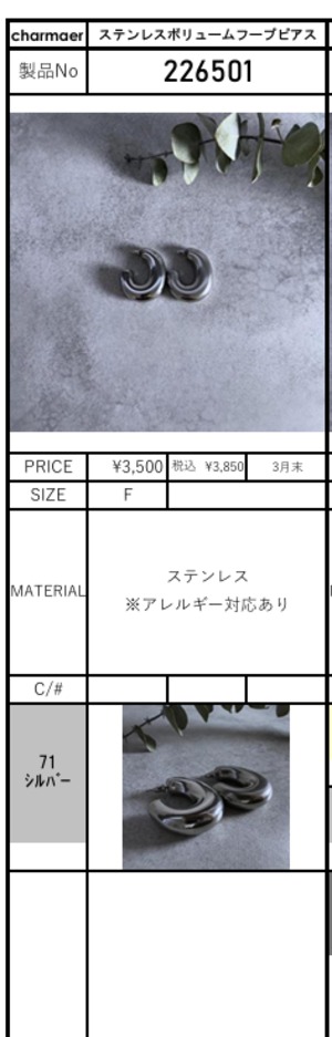![[予約販売] charmaer チャーマー ステンレスボリュームフープピアス 226501 (3/末入荷予定)](https://baseec-img-mng.akamaized.net/images/item/origin/3b667b093873d5410b4cd7d0903fb1e2.jpg?imformat=generic)