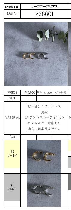 [予約販売] charmaer チャーマー カーブフープピアス 236601 (5/末入荷予定)