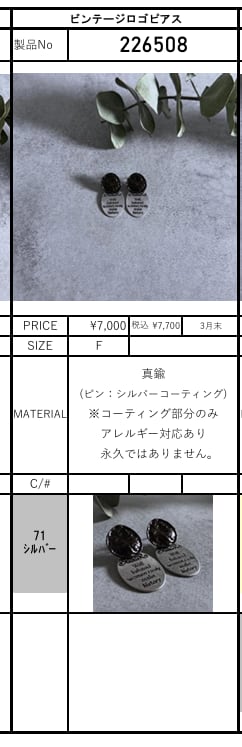 ![[予約販売] charmaer チャーマー ビンテージロゴピアス 226508 (3月末入荷予定)](https://baseec-img-mng.akamaized.net/images/item/origin/5590ecc6baf0260cddb98f7f81626a5b.jpg?imformat=generic)