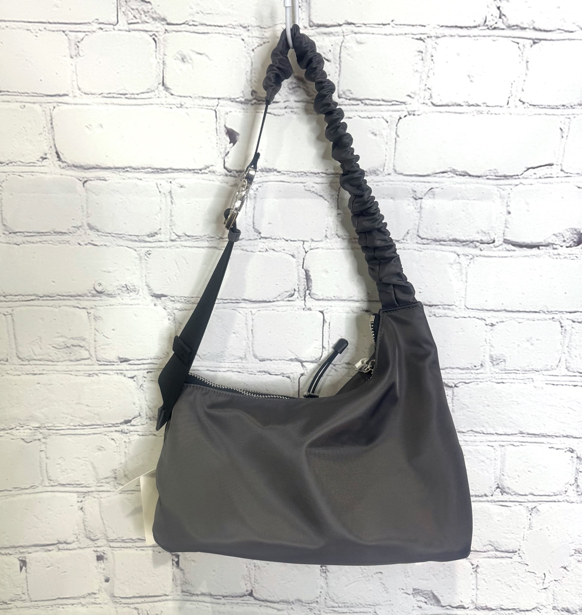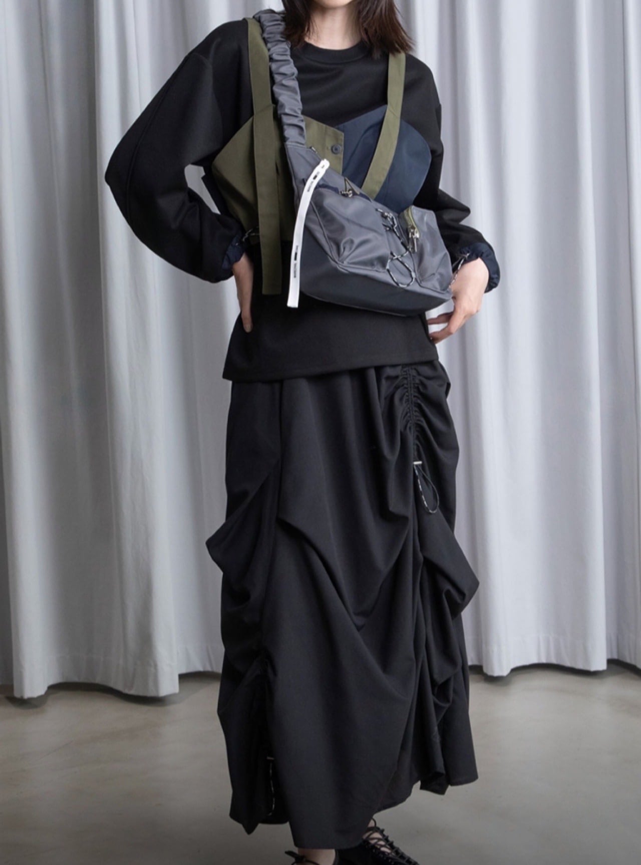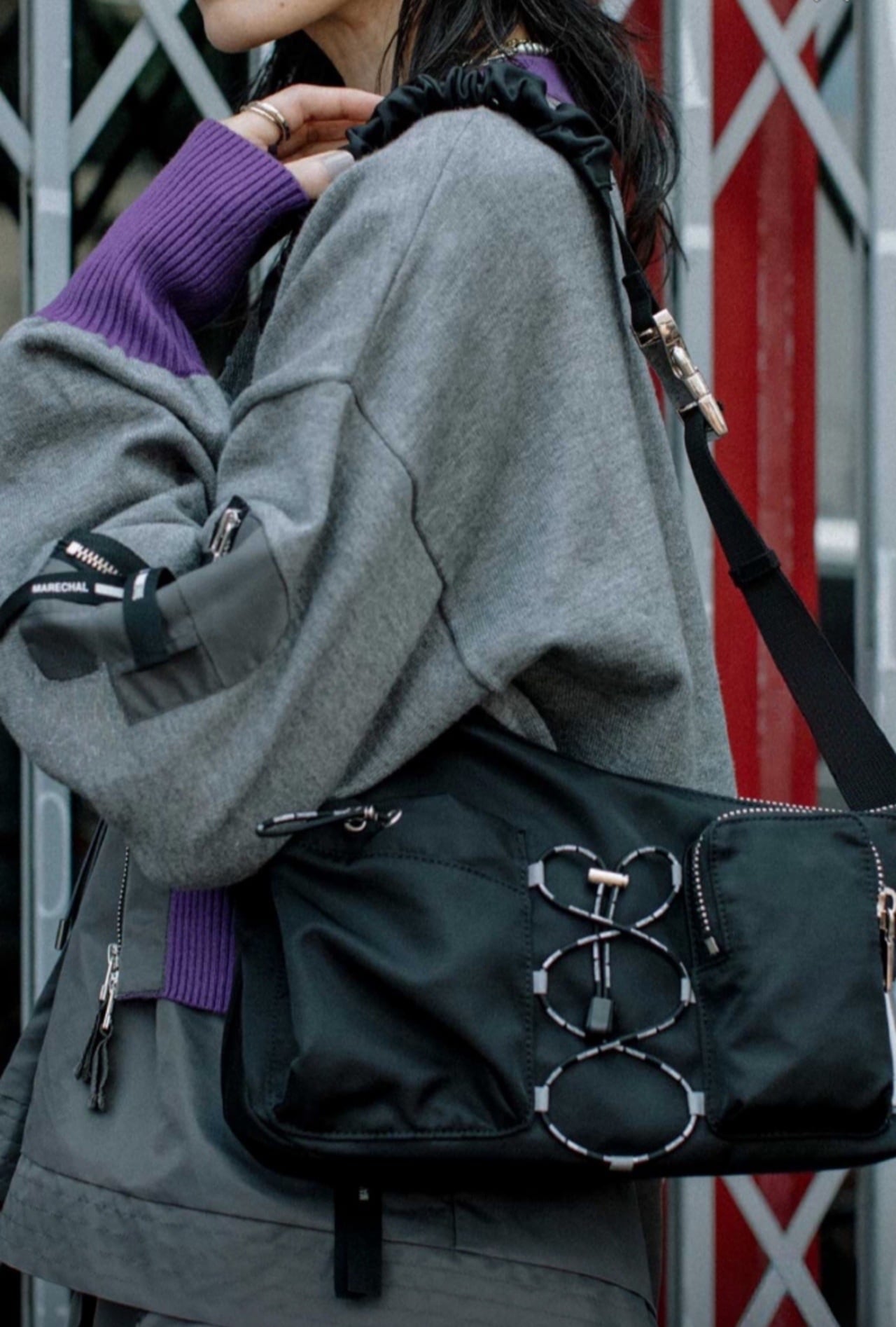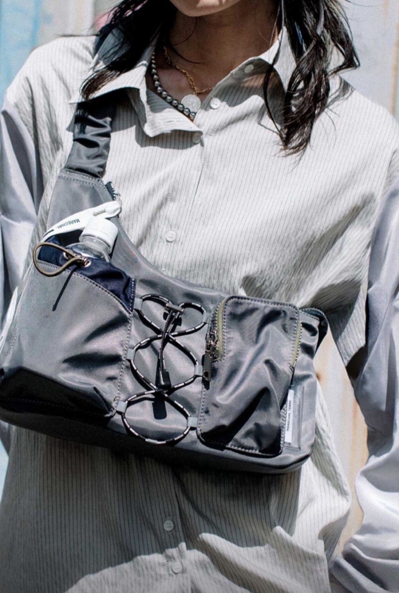 ドリンクポケット付きのスポーティなボディバッグです。ショルダーにはギャザーデザインを使用して女性らしさをプラス。配色ファスナーでメリハリのあるデザイン。ダーツ入りポケットで立体感をプラスし、実用性も備えた多機能ポケット付き。高級感を感じる金属バックルを使用。ブランドロゴ入りの丸ゴムやロゴテープを使用したオリジナル性のあるディテール。ボディに程よく馴染む丁度よいサイズ感です。