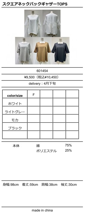 [予約販売] CYAN TOKYO シアントーキョー スクエアネックバックギャザーTOPS 601454 (4月下旬入荷予定)