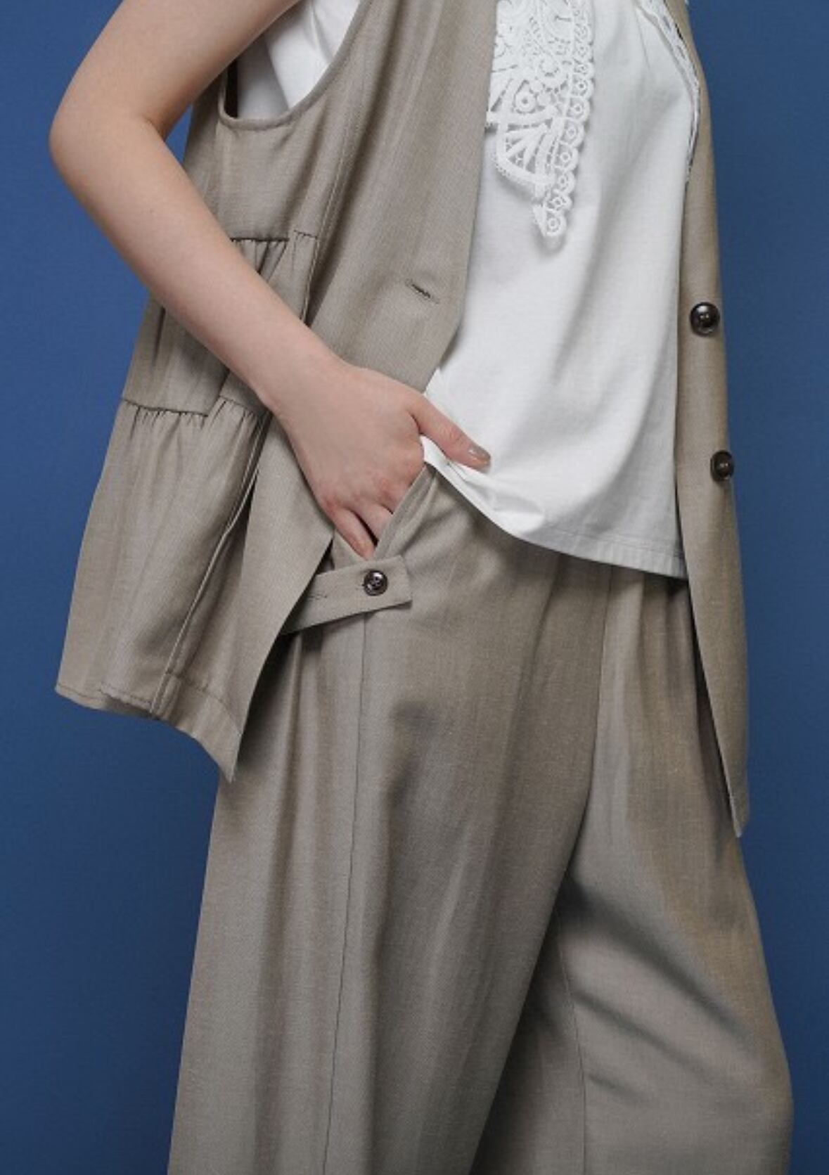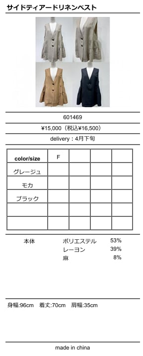 [予約販売] CYAN TOKYO シアントーキョー サイドティアードリネンベスト 601469 (4月下旬入荷予定)