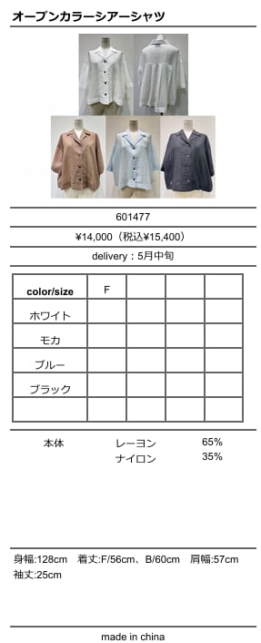 [予約販売] CYAN TOKYO シアントーキョー オープンカラーシアーシャツ 601477 (5/ちゅ