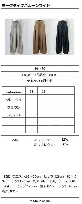 ![[予約販売] CYAN TOKYO シアントーキョー ヨークタックバルーンワイド 601479 (5/中旬入荷予定)](https://baseec-img-mng.akamaized.net/images/item/origin/7704cd57aa693826df2103b6ac0f80f5.jpg?imformat=generic)