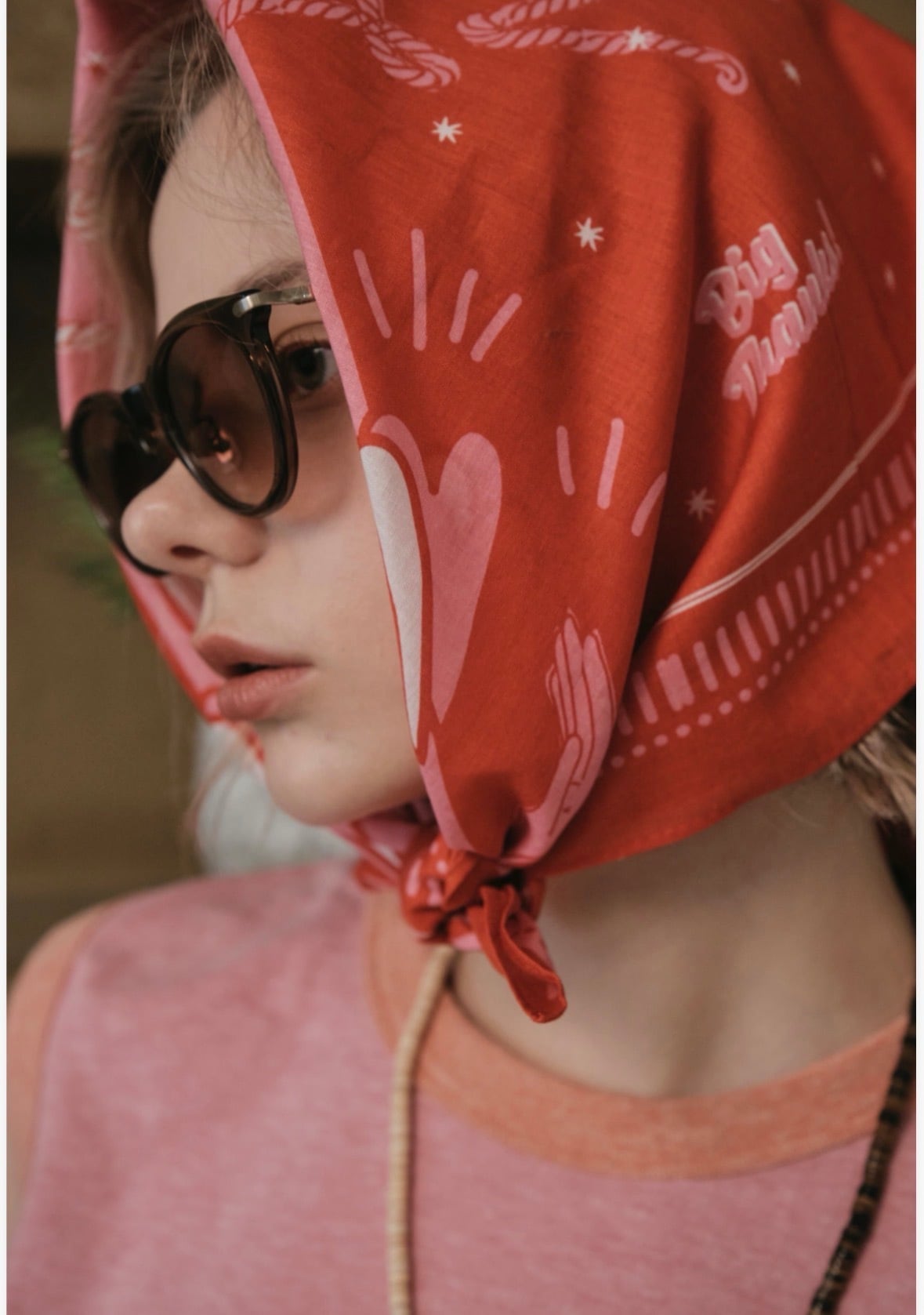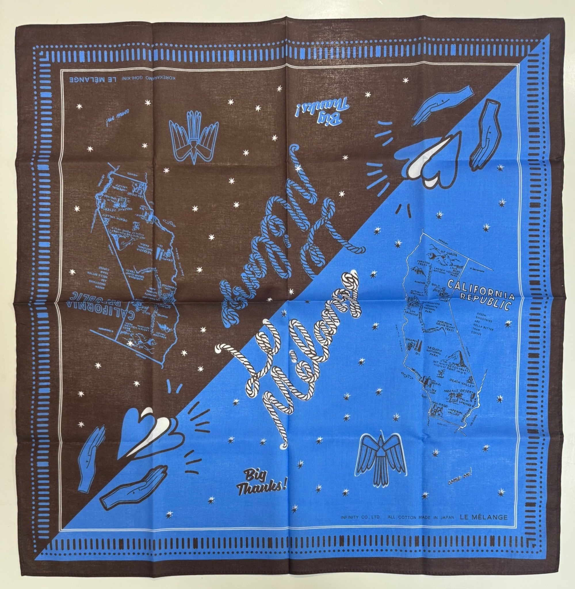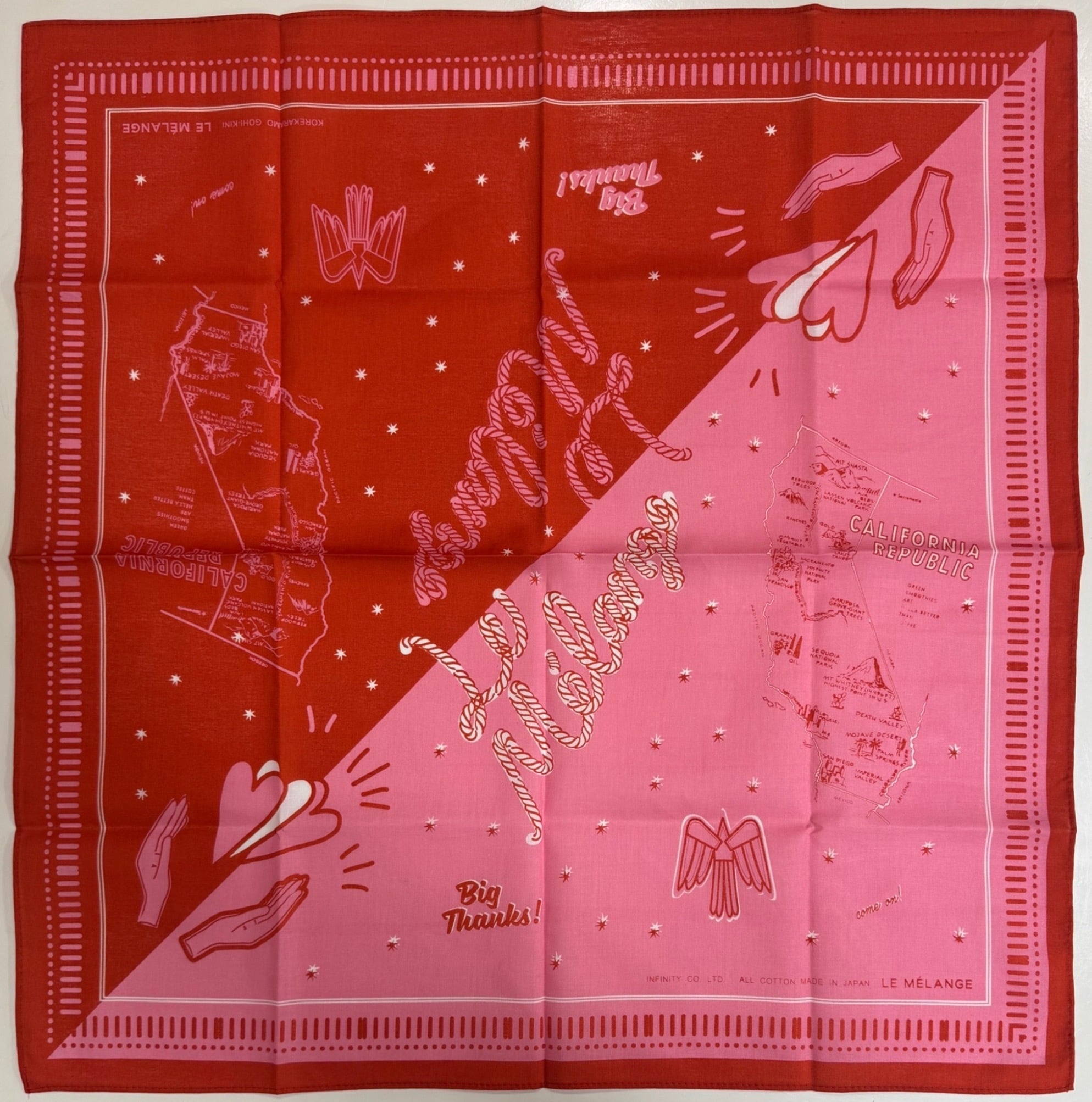 人気アイテムのアーカイブモチーフをレイアウト、対角線でカラーブロッキングしたデザインです。折り方で見えるカラーが変えられるので、同じ巻き方でもアレンジの巾が広がります。64㎝×64㎝サイズで対角線は90㎝以上あるので、ネックに、ビスチェ風に、ラップスカート、日除け、バックにつけたりと使い方は無限のおすすめアイテムです! 日本製。