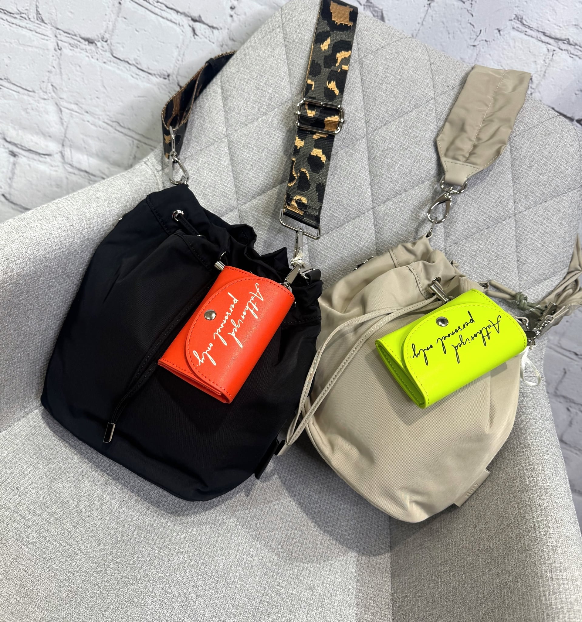 フェミニンなシャーリングストラップが目を惹くドローストリングバッグです。トレンドのシャーリングはコーディネートのアクセントになりながらも長さを変更できる機能的なデザインです。見返しにはスナップボタン付きで、巾着は絞らずにバゲットバッグとしても使えます。アクセサリー感覚のカラーミニポーチにもカードポケットナスカンがつき、細かなディテールも作りこまれています。付属のショルダーストラップはパラコードと同色合わせのレオパードパターン。長さを調節できてな斜め掛けもできます。アレンジ自在なマルチユースデザインでシンプルなバッグからアクセ感覚のワンポイントバッグまで幅広く活躍してくれます。