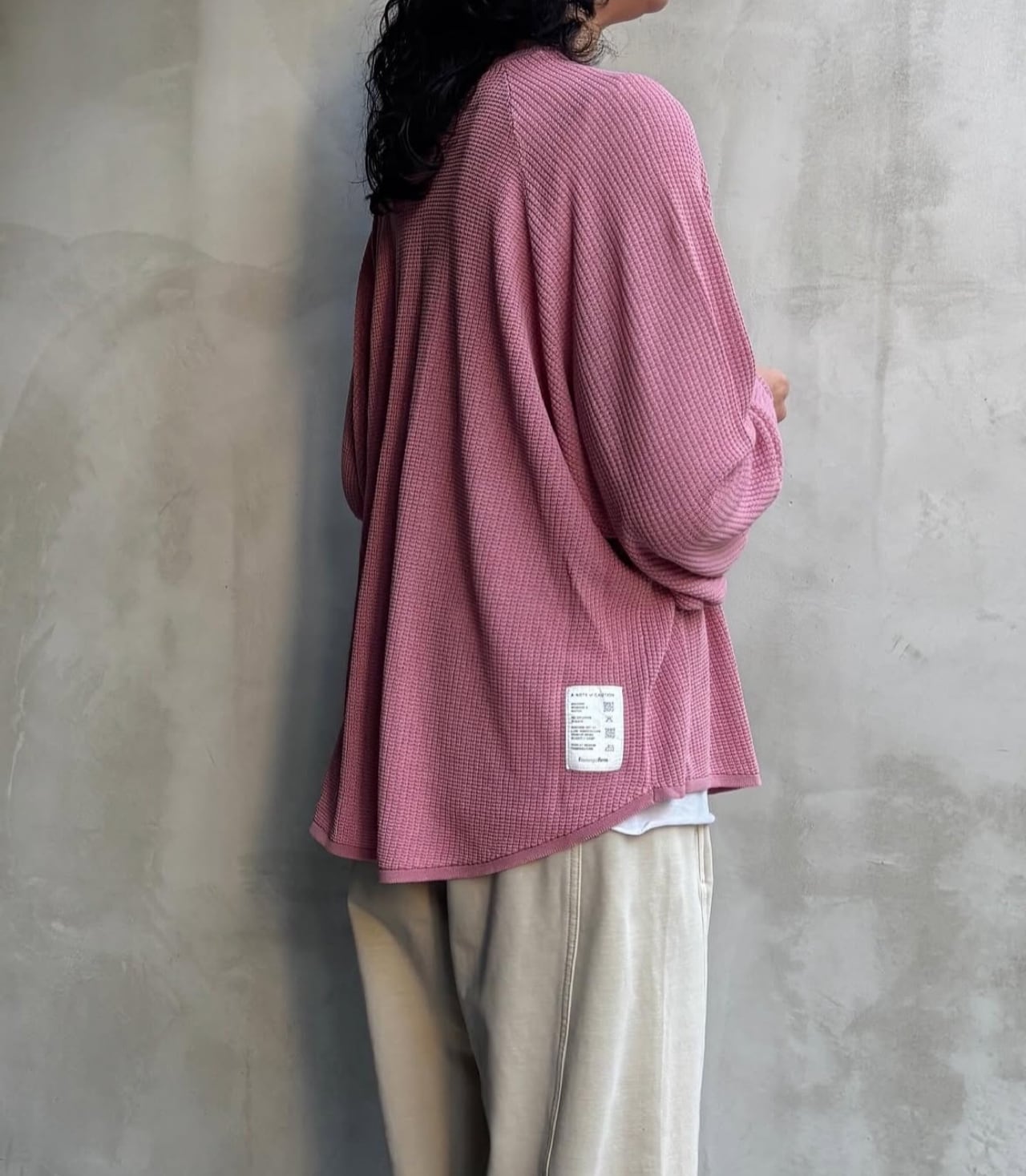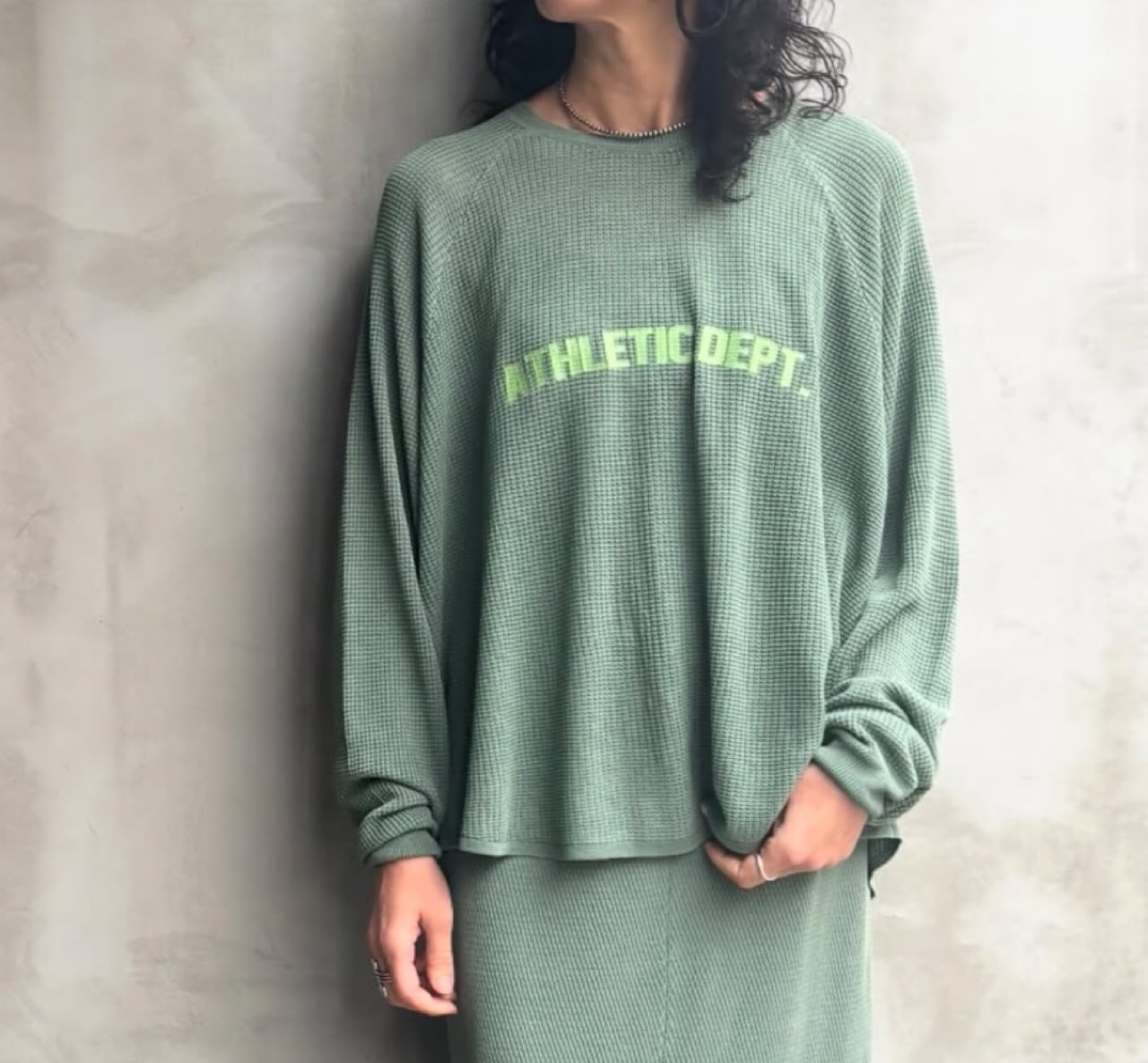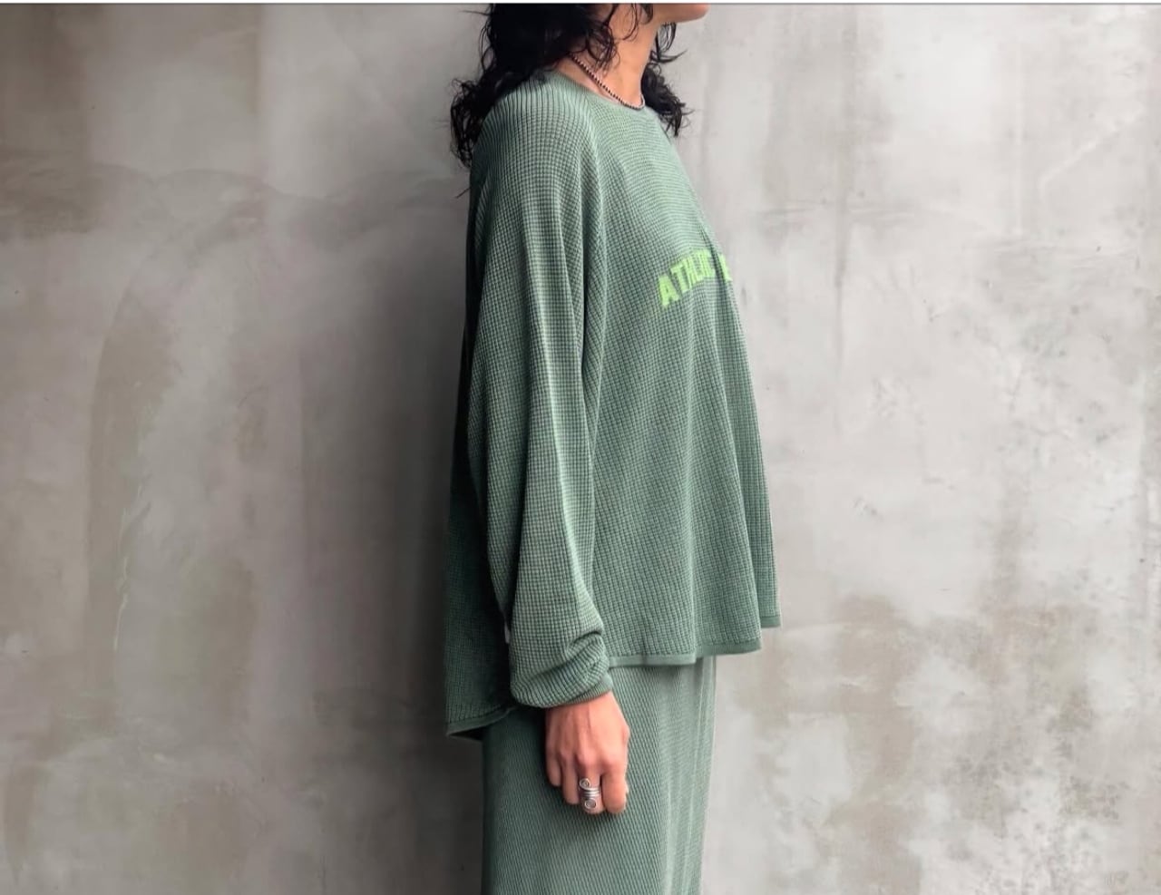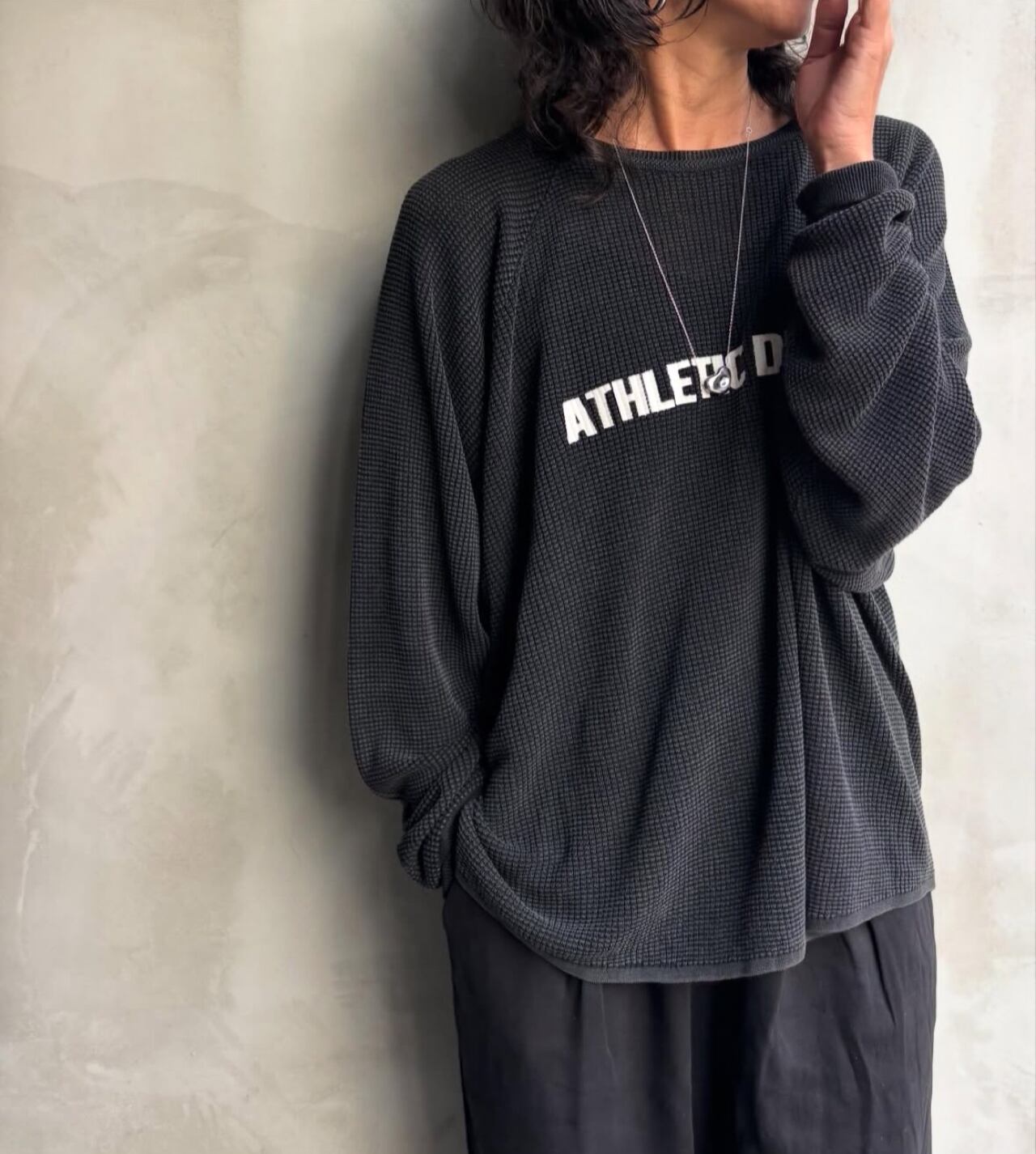 テンセル糸をワッフル編みで仕上げたロンTです。しなやかな素材で落ち感が出て女性らしい印象を与えてくれます。お家で洗えます。