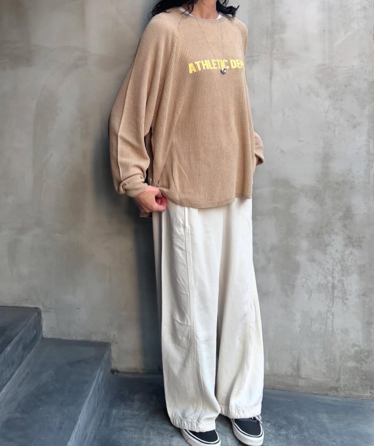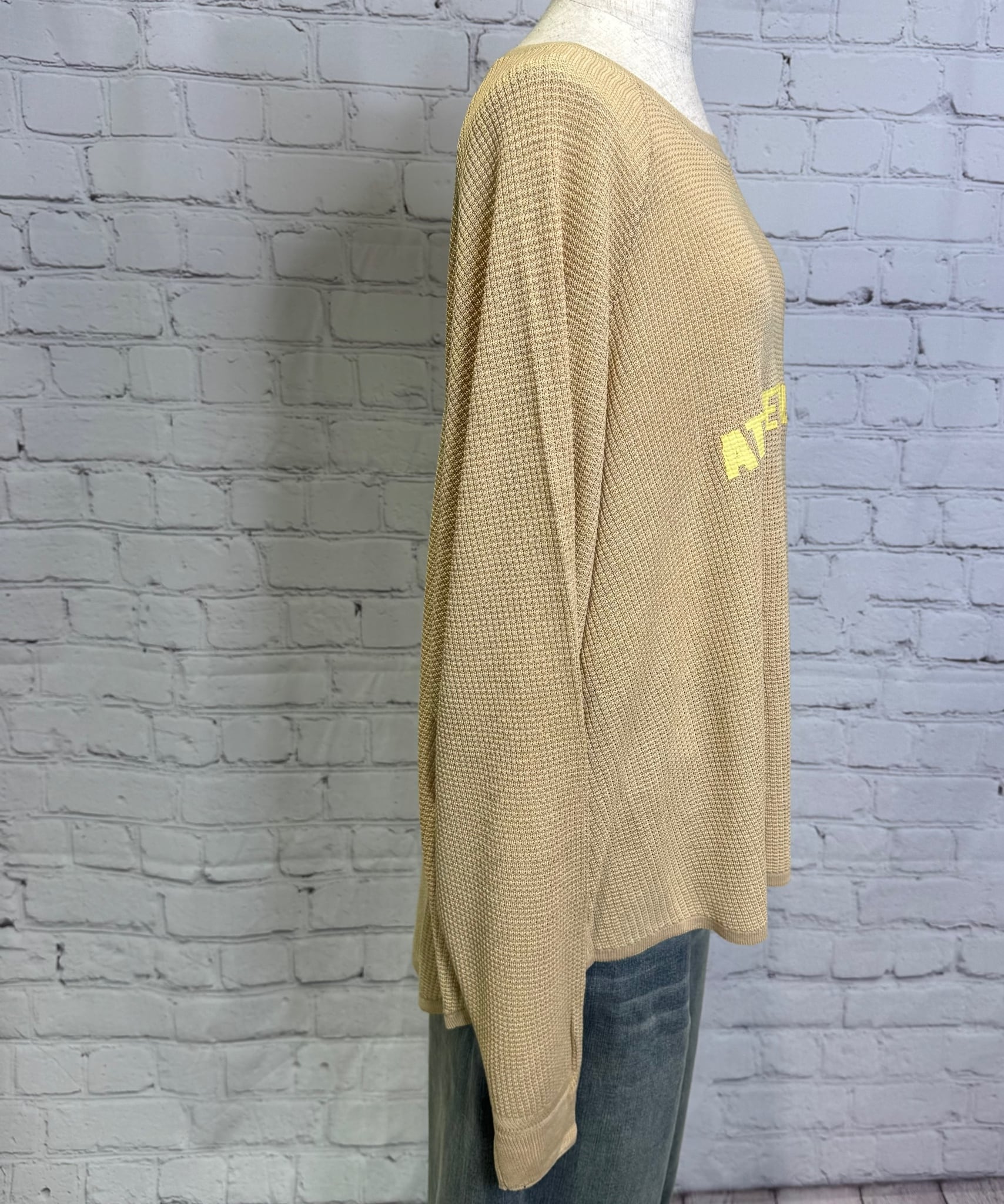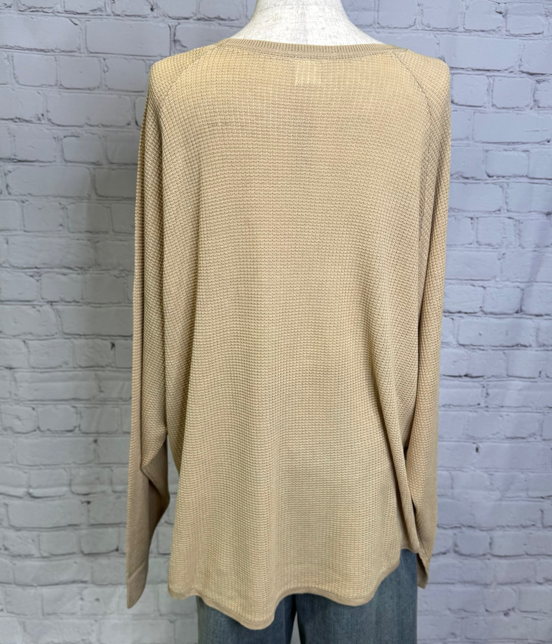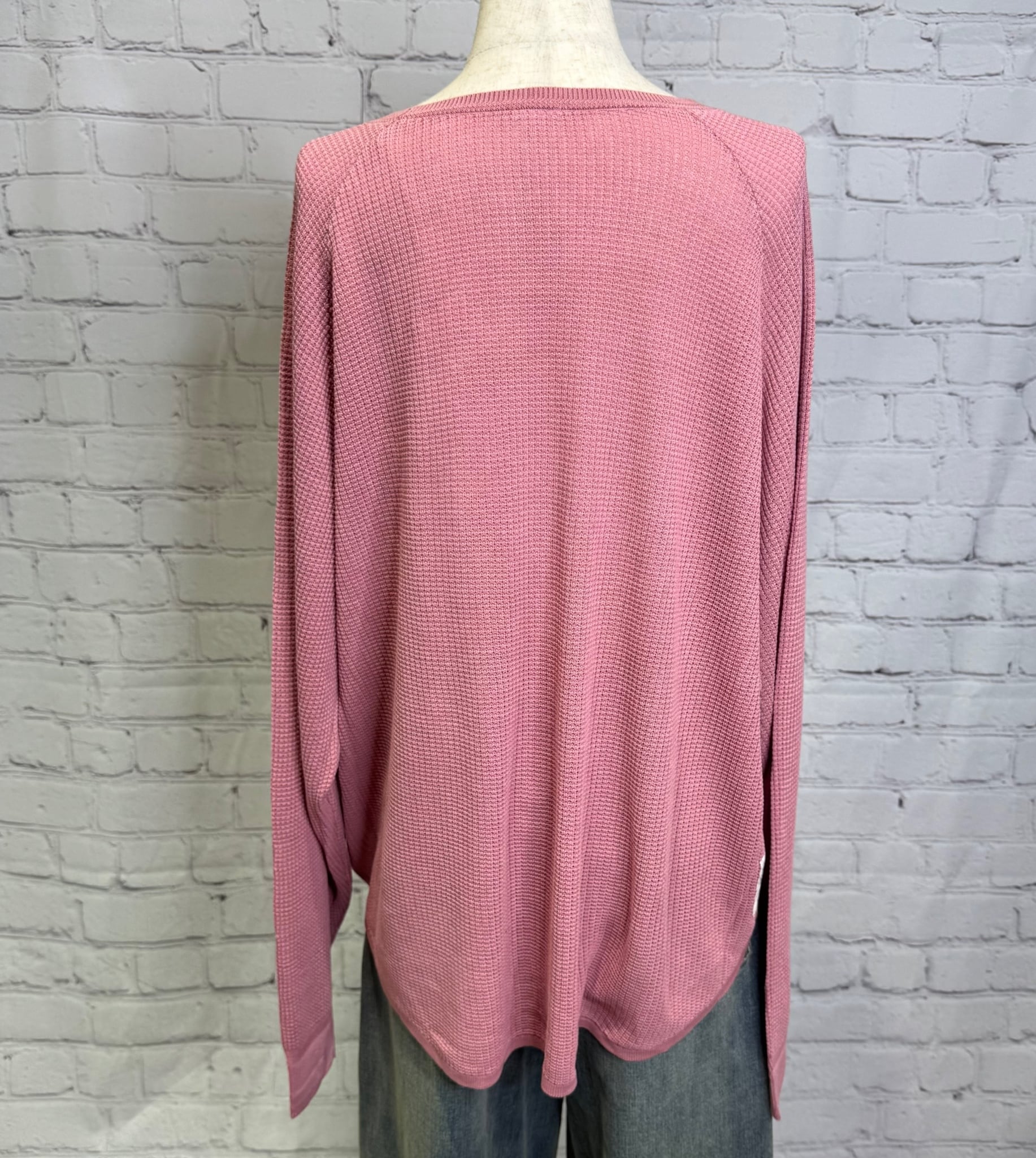 テンセル糸をワッフル編みで仕上げたロンTです。しなやかな素材で落ち感が出て女性らしい印象を与えてくれます。お家で洗えます。