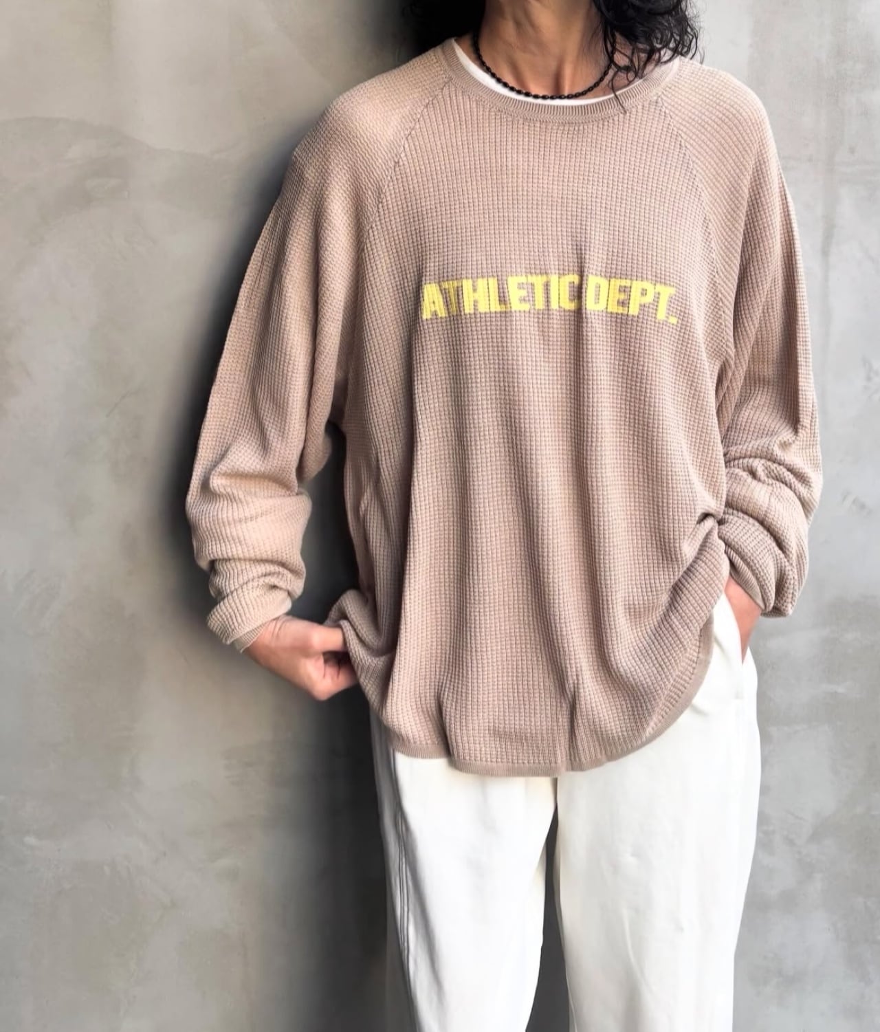 flamingo firm フラミンゴファーム テンセルワッフル編みロゴロンT 520096