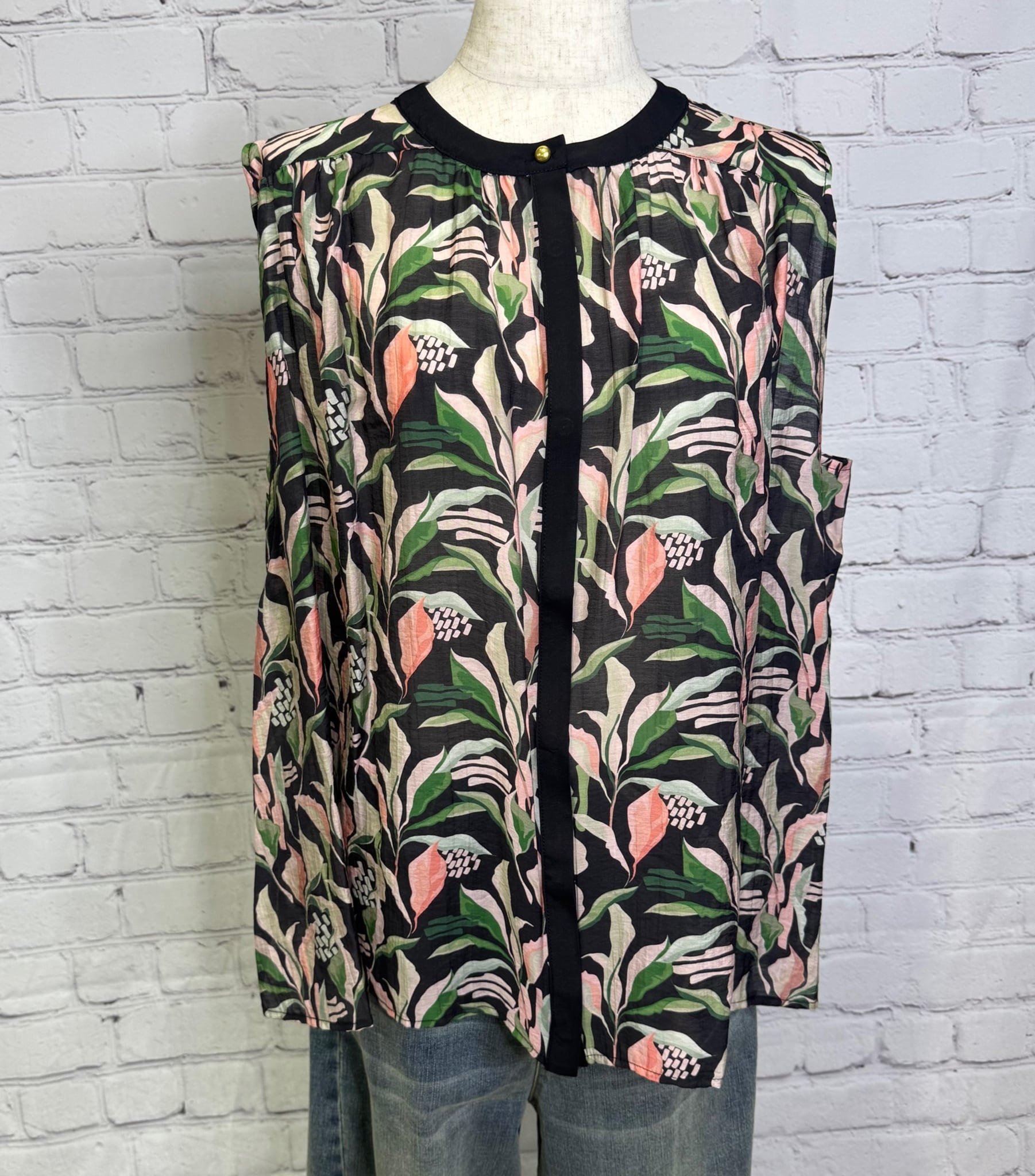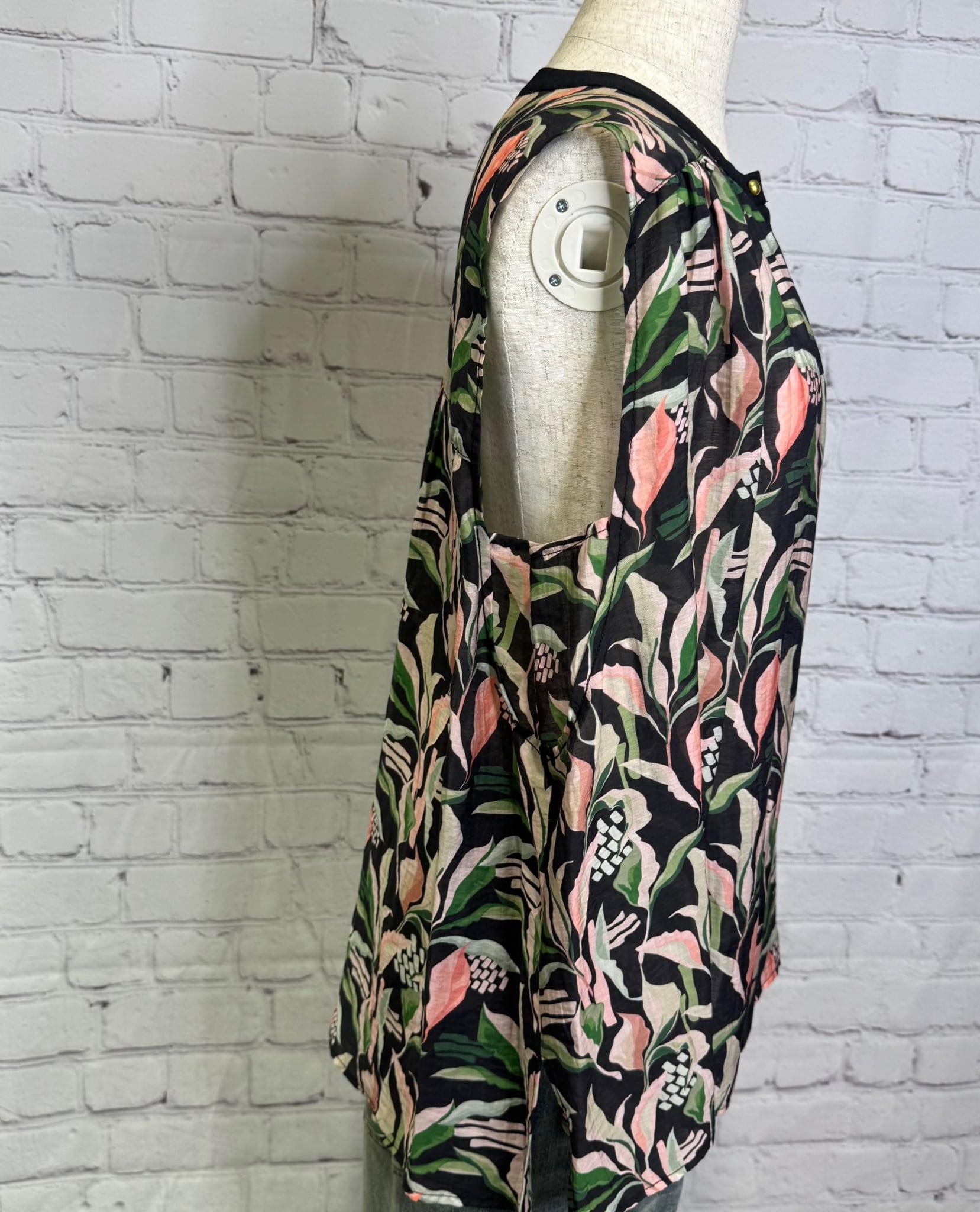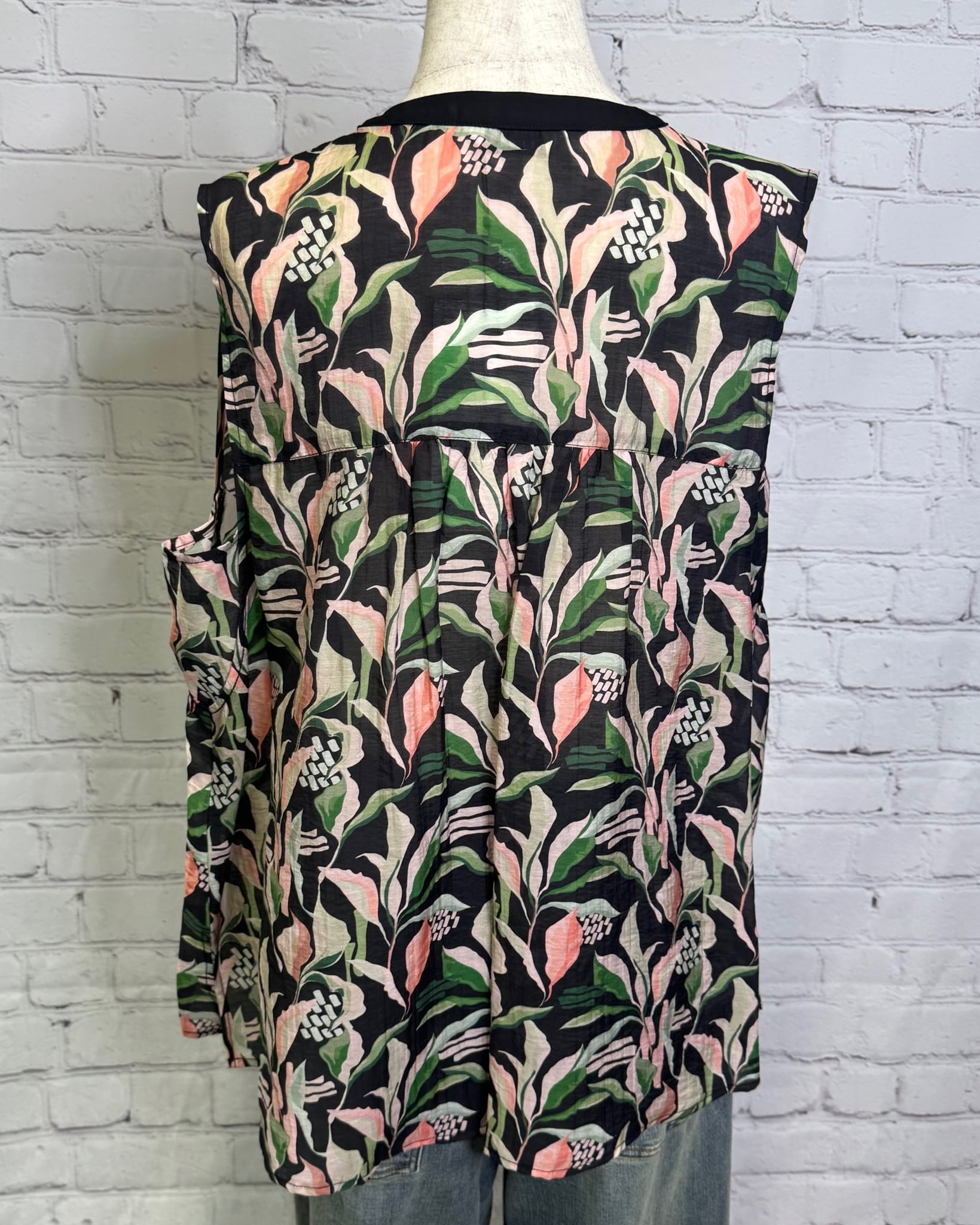 軽やかなフラワープリントが目を引く、ノースリーブのギャザーブラウスです。全体にたっぷりとギャザーを入れることで、ふんわりとした立体感のあるシルエットに仕上げています。比翼仕立てのフロントデザインがすっきりと上品な印象を与え、大人っぽく着こなせるのが魅力。ヒップにかかる丈感で体のラインを自然にカバーしつつ、パンツスタイルとの相性も抜群です。一枚で着映えするため、シンプルなボトムと合わせるだけでスタイリングが完成します。お家で洗えます。