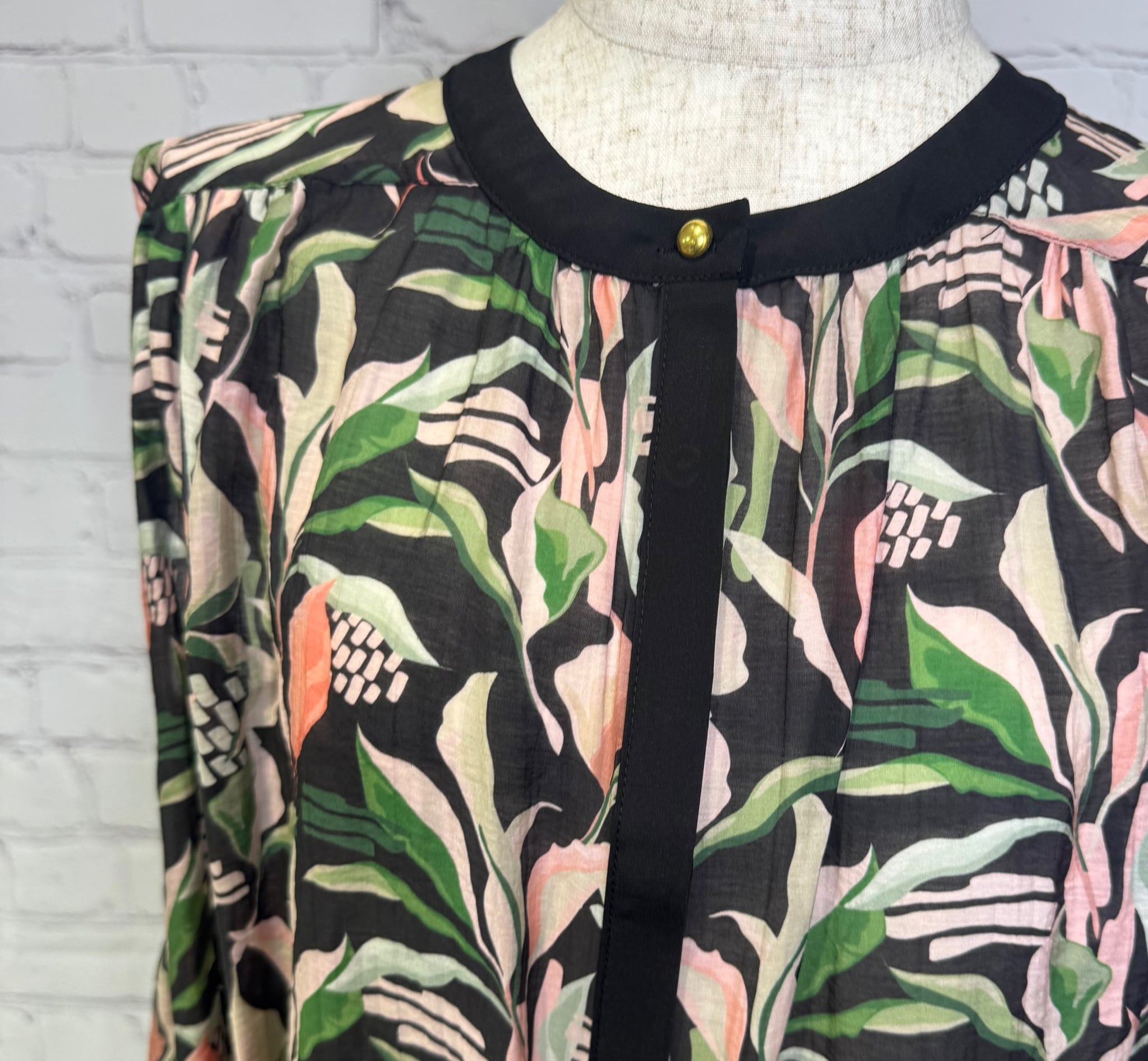 trois トロワ シフォン&フラワープリントギャザーブラウス T261-81010
