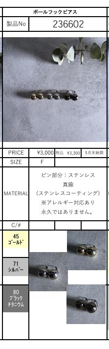 [予約販売] charmaer チャーマー ボールフックピアス 236602(5/末入荷予定)