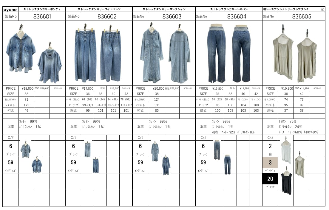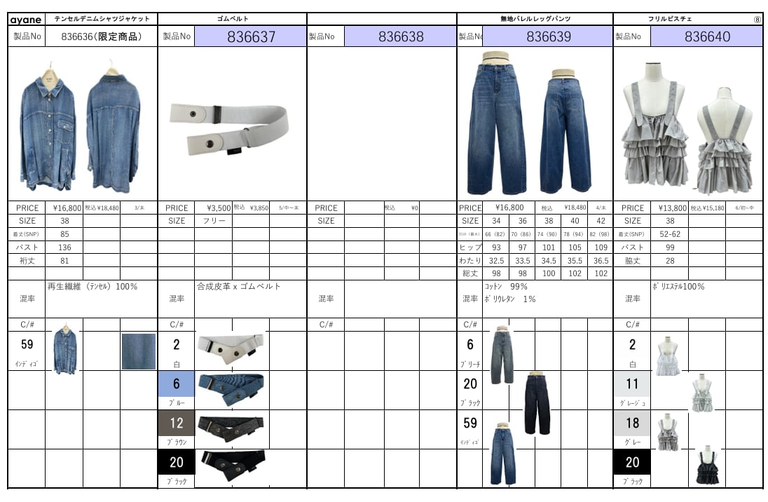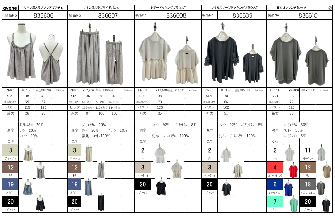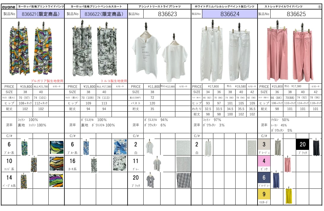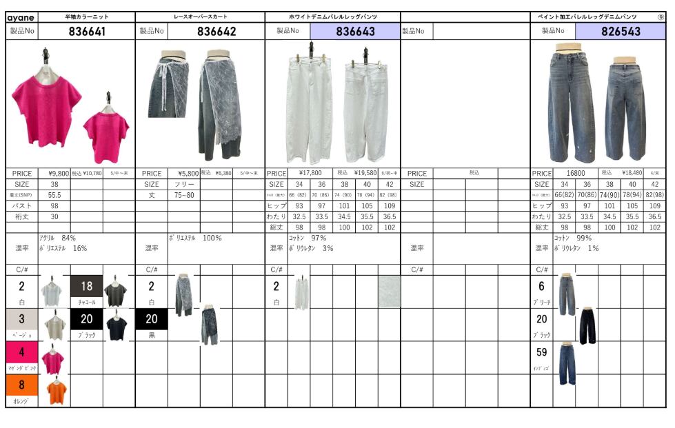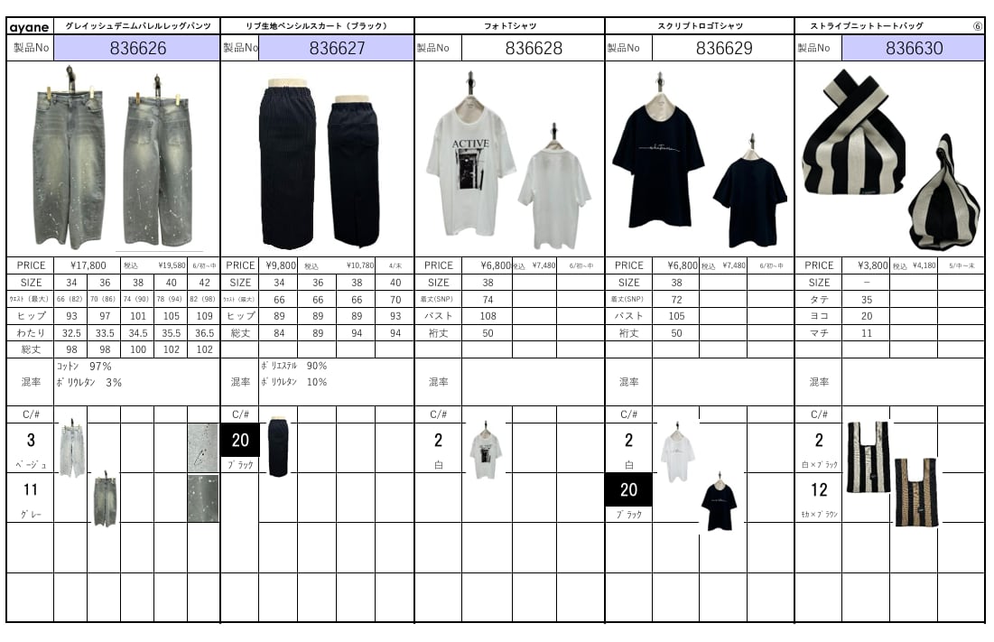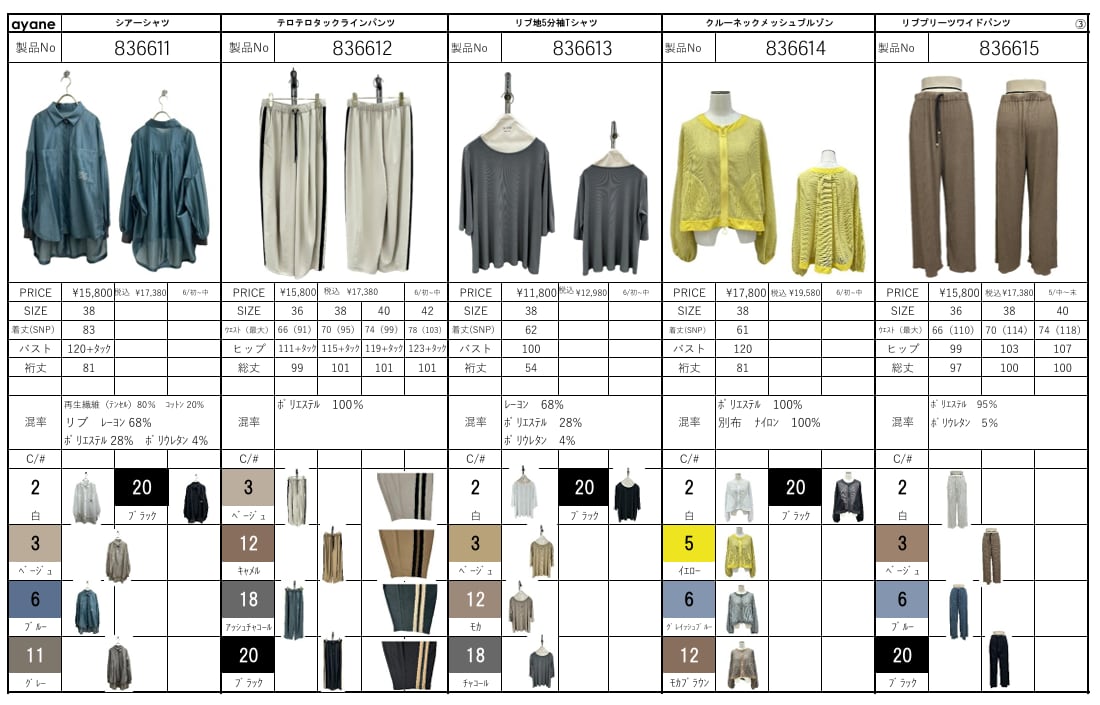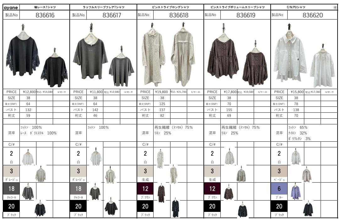 ⚫︎サイズ、混率、納期などはアイテム毎に違いますのでパターン表ご確認願います。