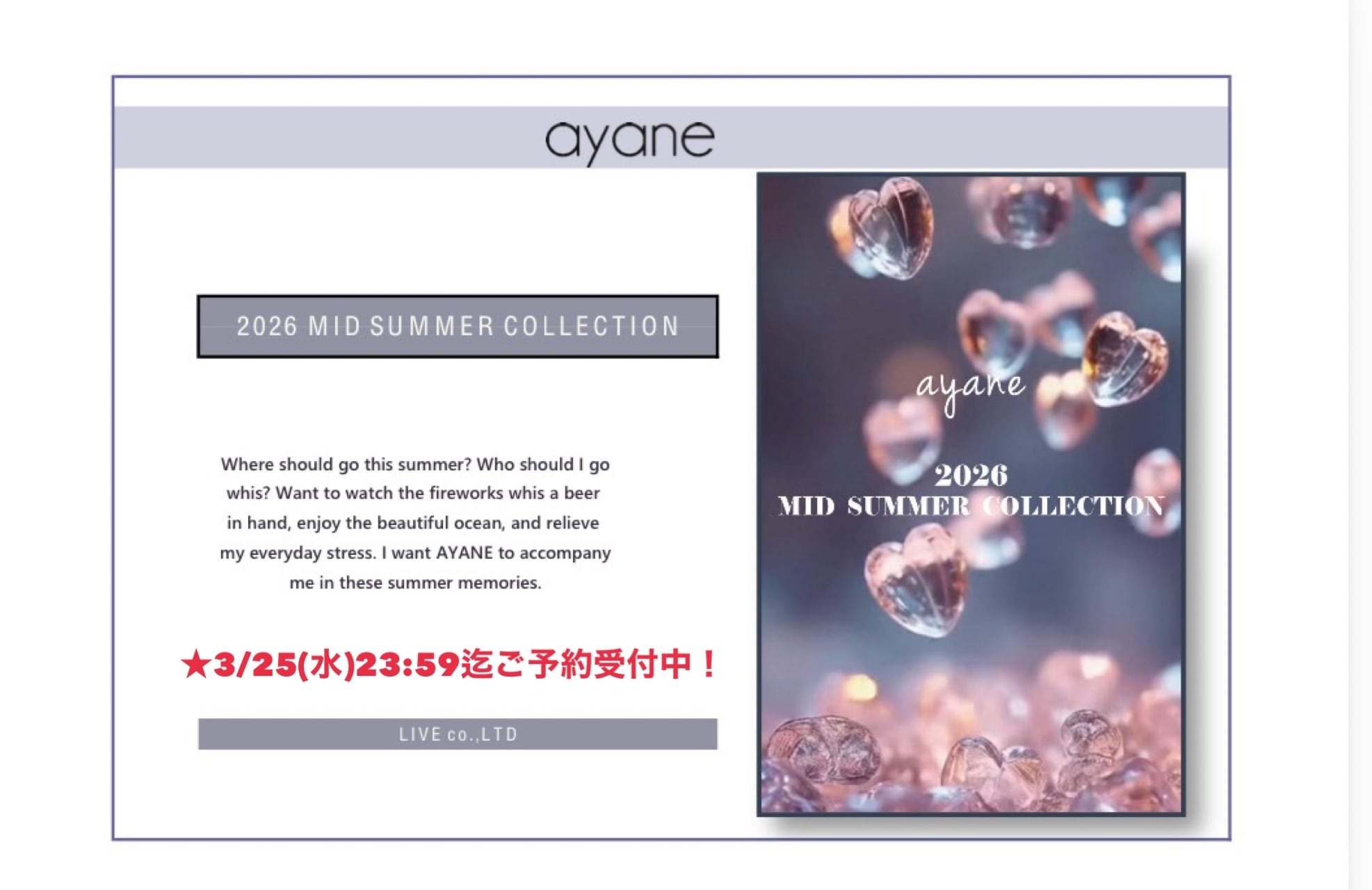 2026 ayane MID SUMMER COLLECTION ご予約方法について