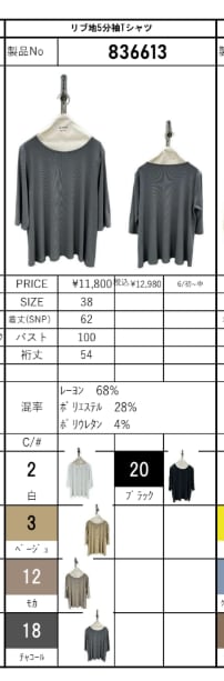 ⚫︎サイズ、混率、納期などはアイテム毎に違いますのでパターン表ご確認願います。