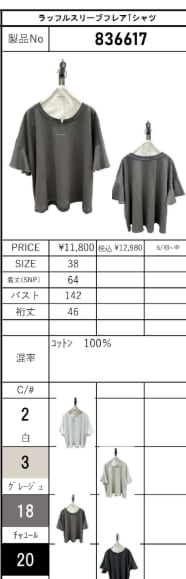 ![[予約販売] ayane アヤン ラッフルスリーブフレアTシャツ 836617 (6/初〜中入荷予定)](https://baseec-img-mng.akamaized.net/images/item/origin/d92e2df0b8ecd7af858dede1bed8fb9f.jpg?imformat=generic)