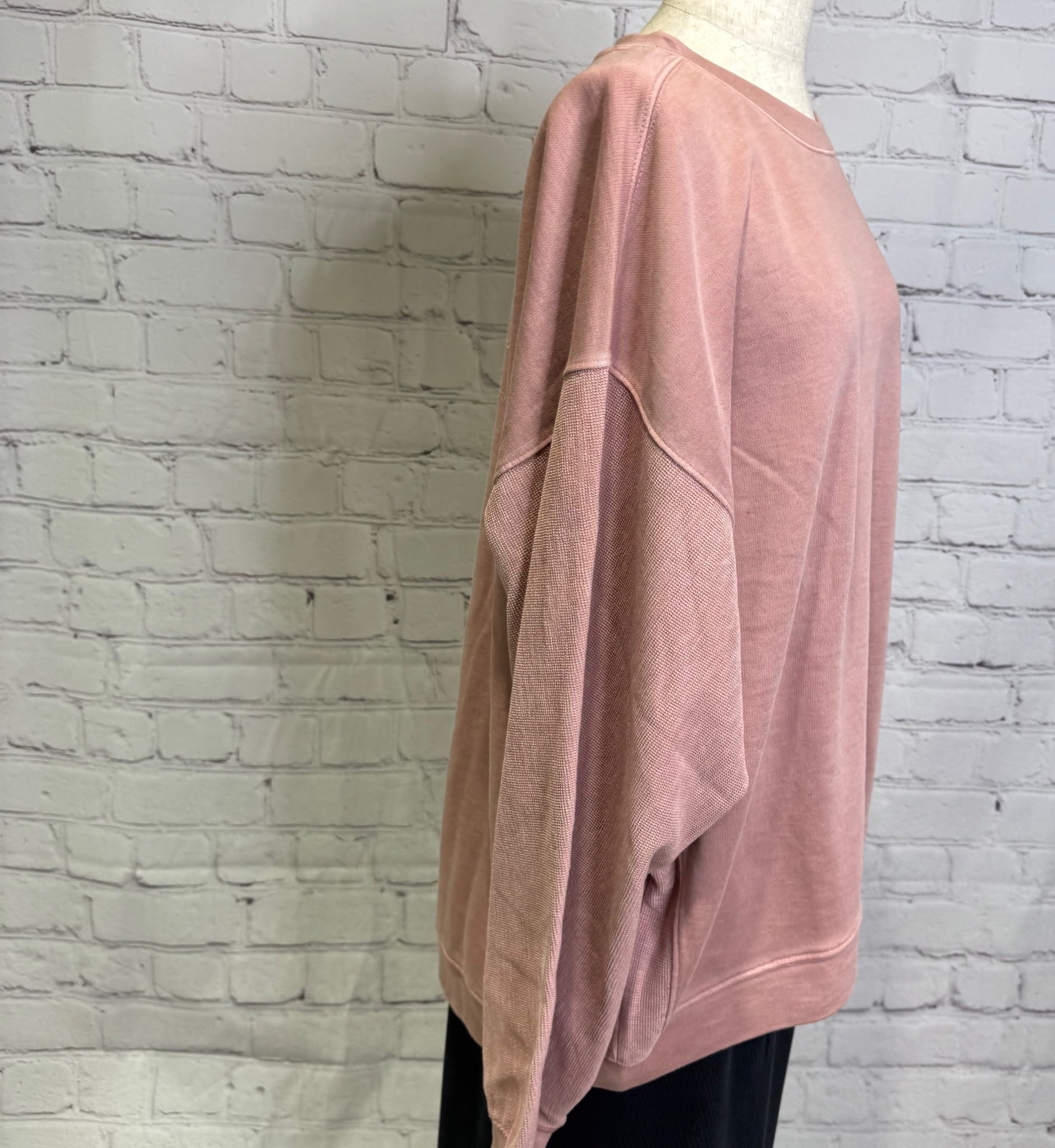 ラグラン袖でゆったり着心地のよいプルオーバーです。バックスタイルのロゴとお袖の切替がポイント!くすみカラーが大人可愛い♡ お家で洗えます。