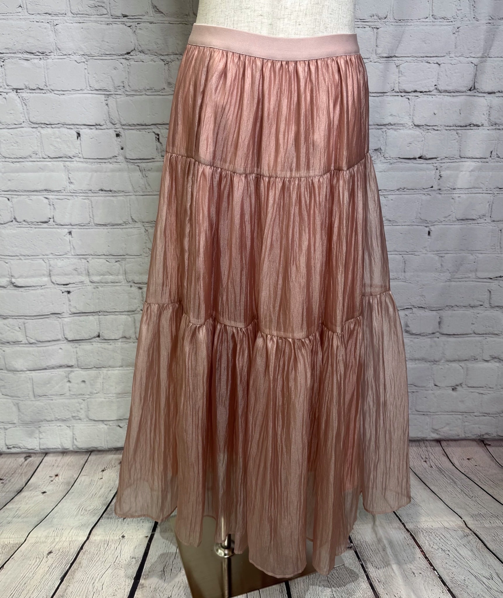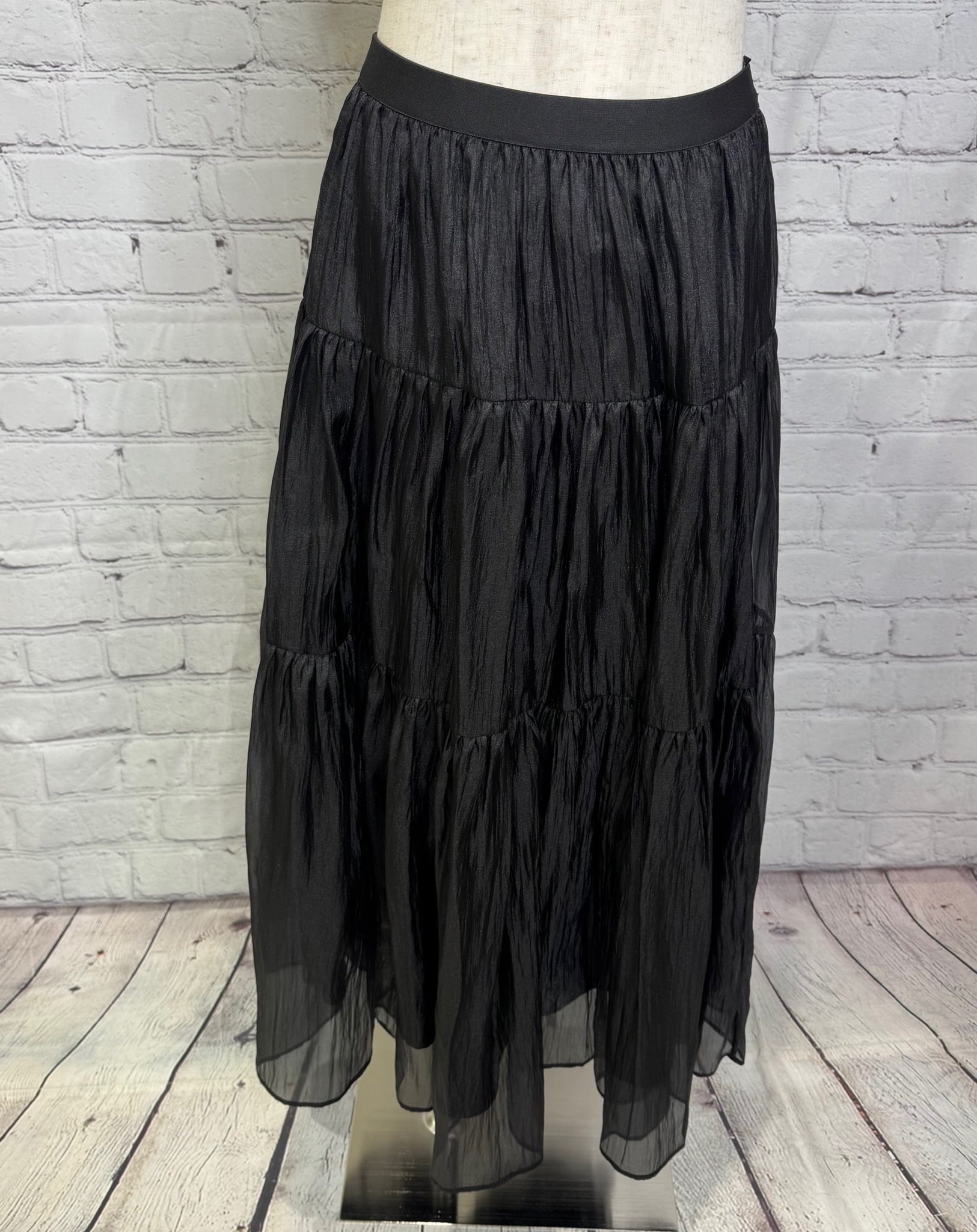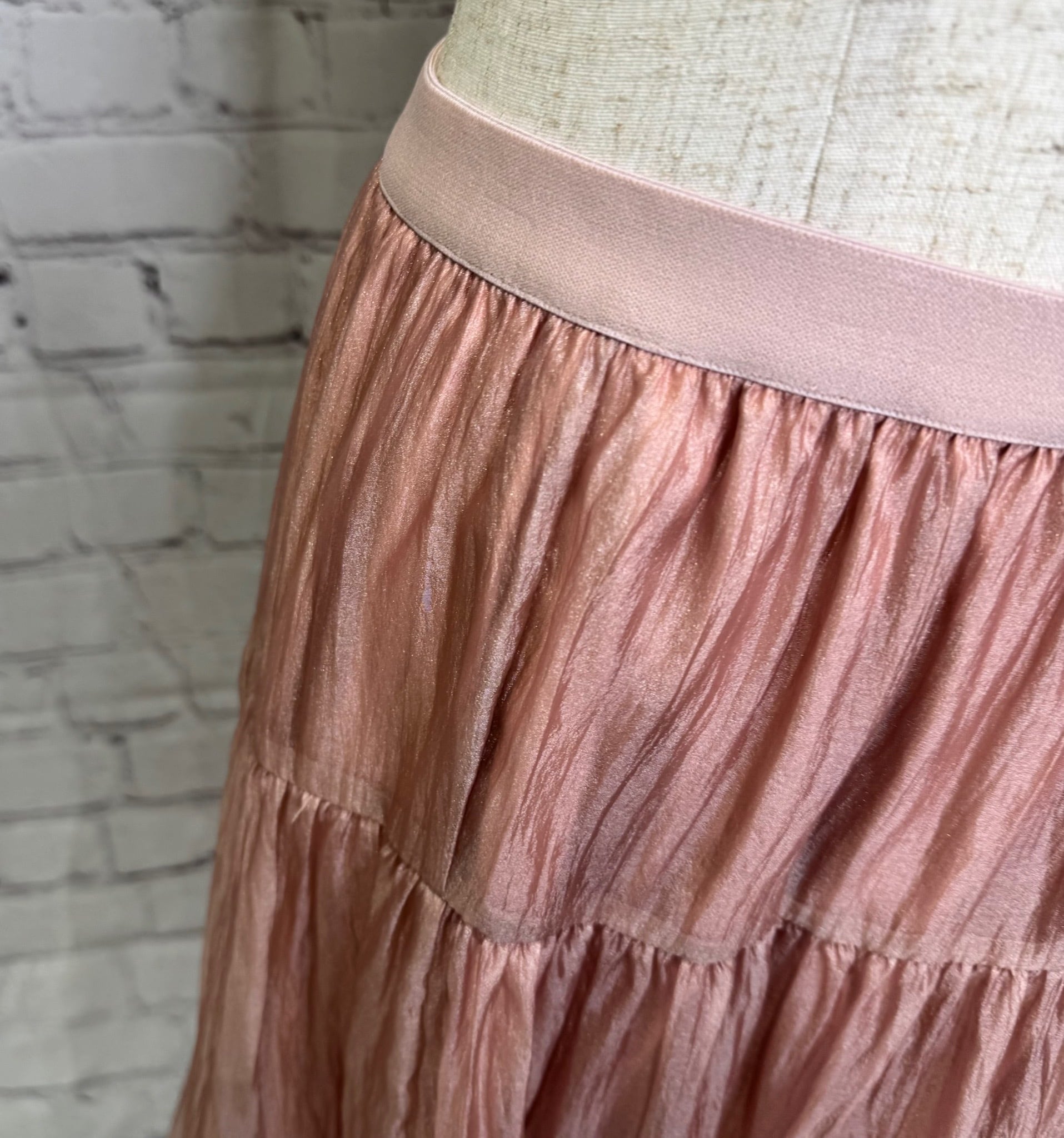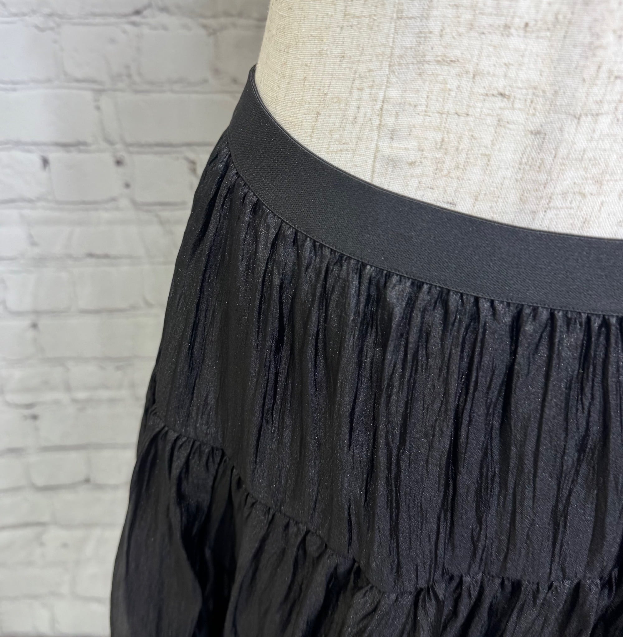 光沢のあるシアー素材が涼しげで、軽くて夏にぴったりのスカートです。カジュアルなTシャツに合わせると女性らしさがプラスされるおすすめアイテムです。ウエストゴムで楽ちん!裏地付き。お家で洗えます。