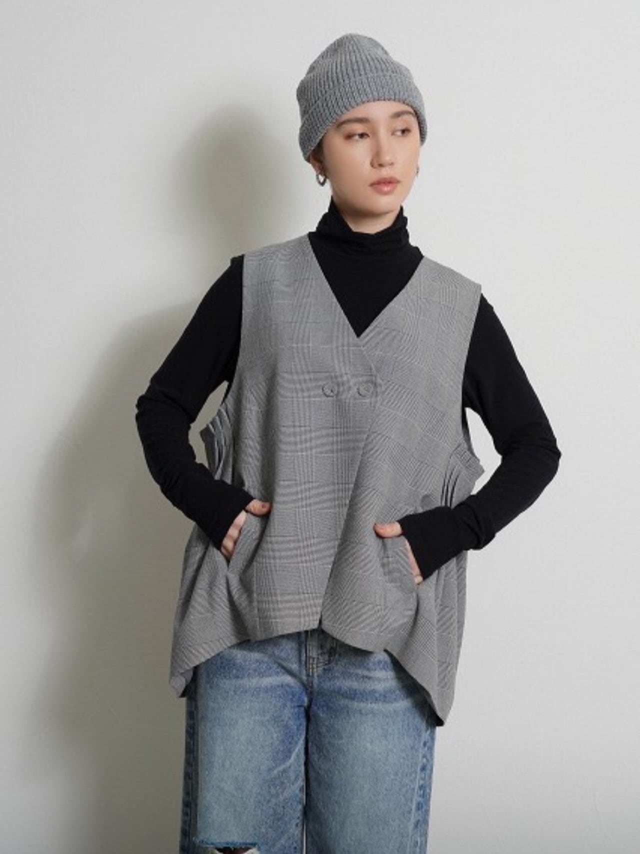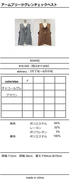 [予約販売] CYAN TOKYO シアントーキョー アームプリーツグレンチェックベスト 604492 (7月下旬〜8月中旬)