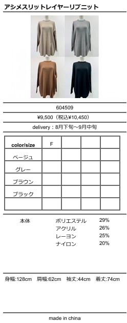 [予約販売] CYAN TOKYO シアントーキョー アシメスリットレイヤーリブニット 604509 (8月下旬〜9月中旬)