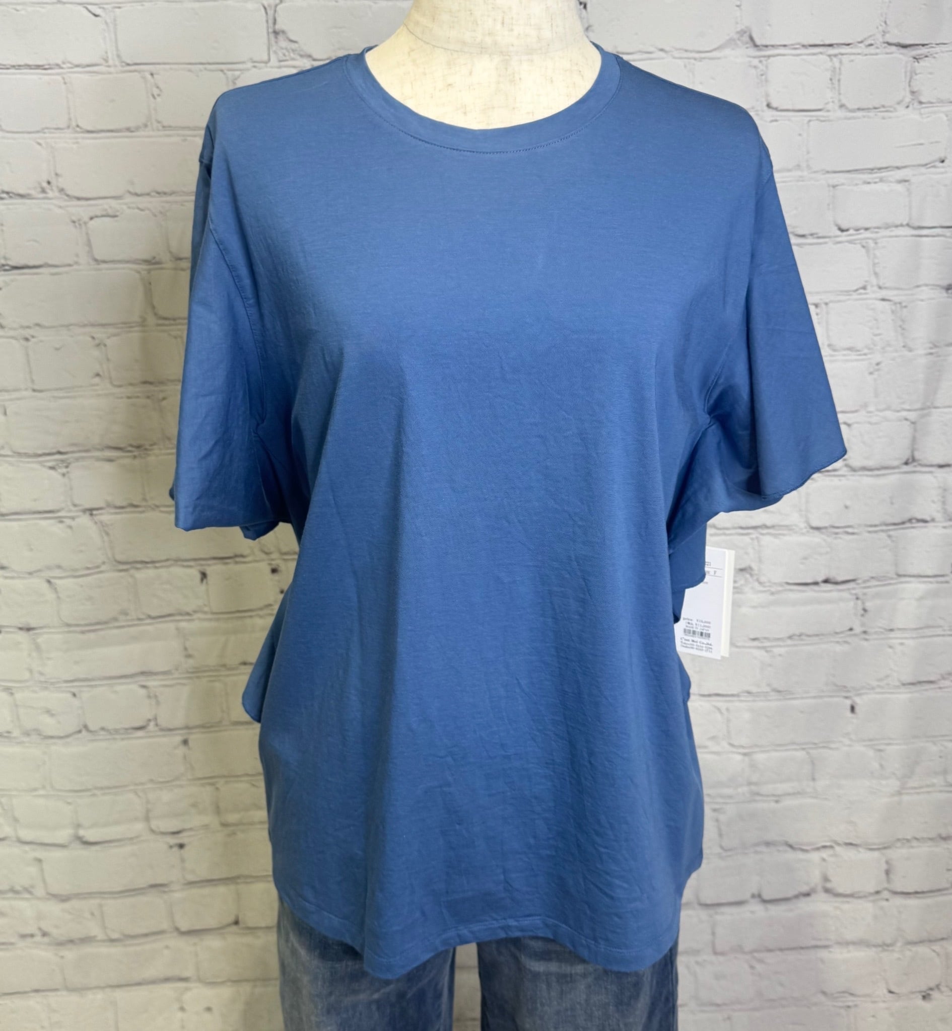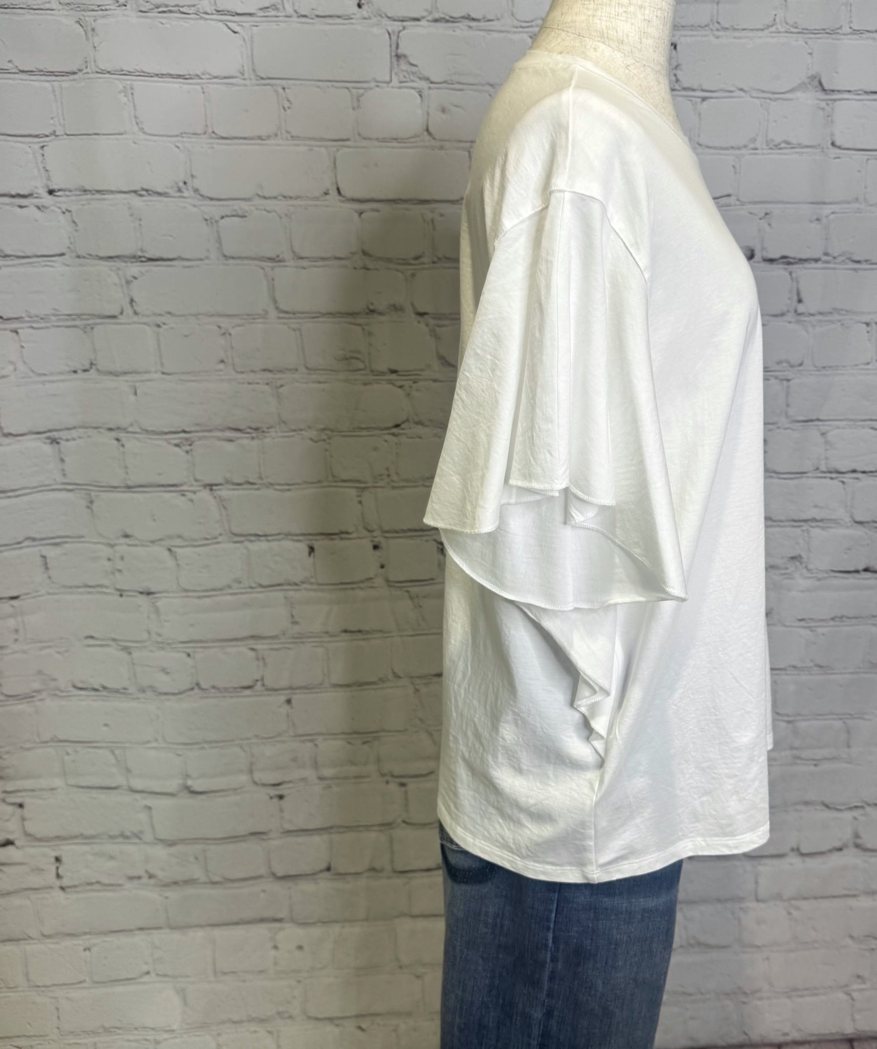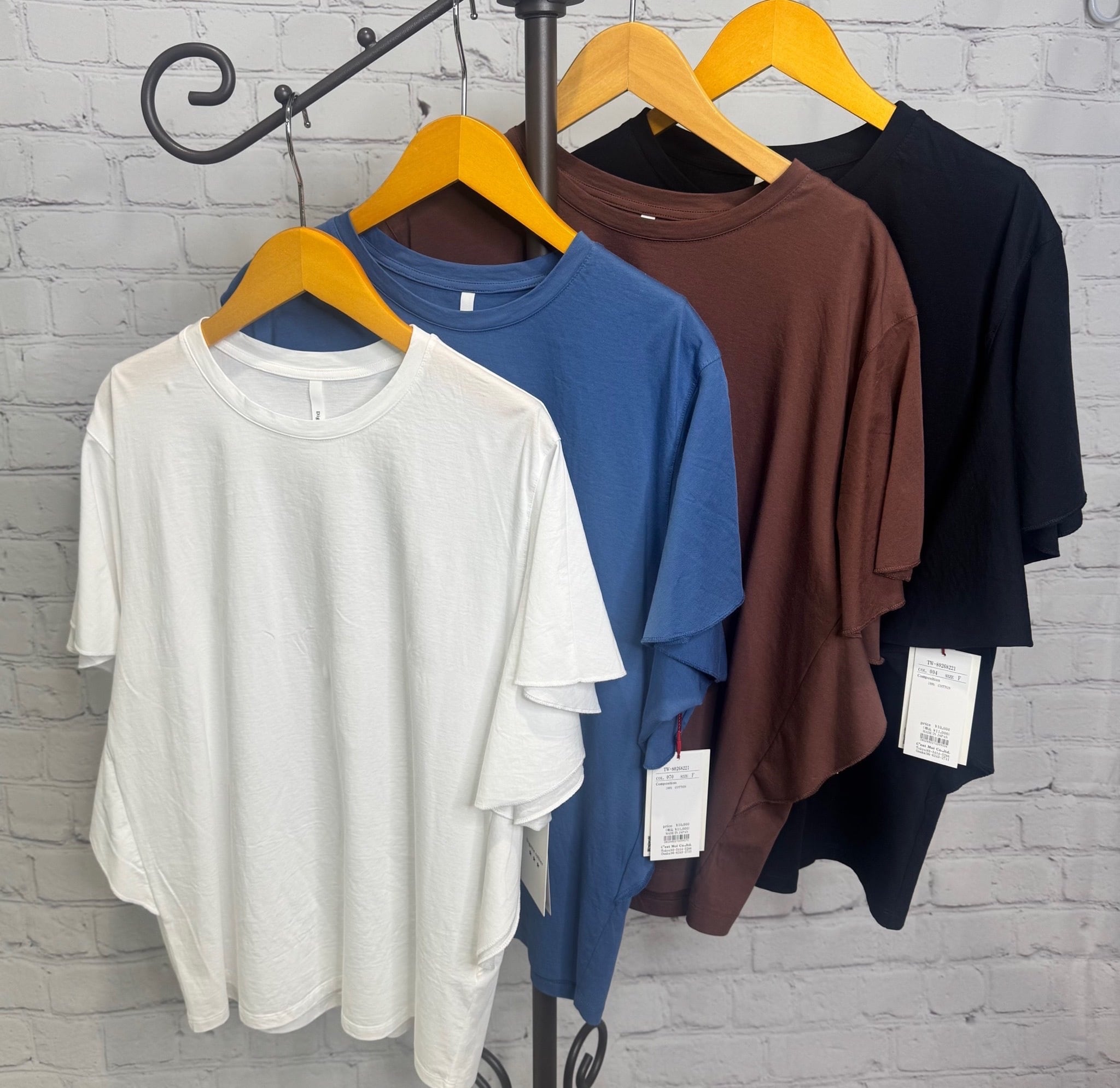 コットン100%で肌触りが良く、お袖のフリルが女性らしいTシャツです。