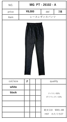 [予約販売] MARGAUX VINTAGE マルゴーヴィンテージ レースレギンスパンツ PT-26102 (7/中〜7/末入荷予定)