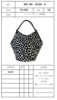 ![[予約販売] MARGAUX VINTAGE マルゴーヴィンテージ ハートパディングバッグ MG-26108 (7/中〜7/末入荷予定)](https://baseec-img-mng.akamaized.net/images/item/origin/a385dd1403d3d83e1976ada08a9ef30a.jpg?imformat=generic)