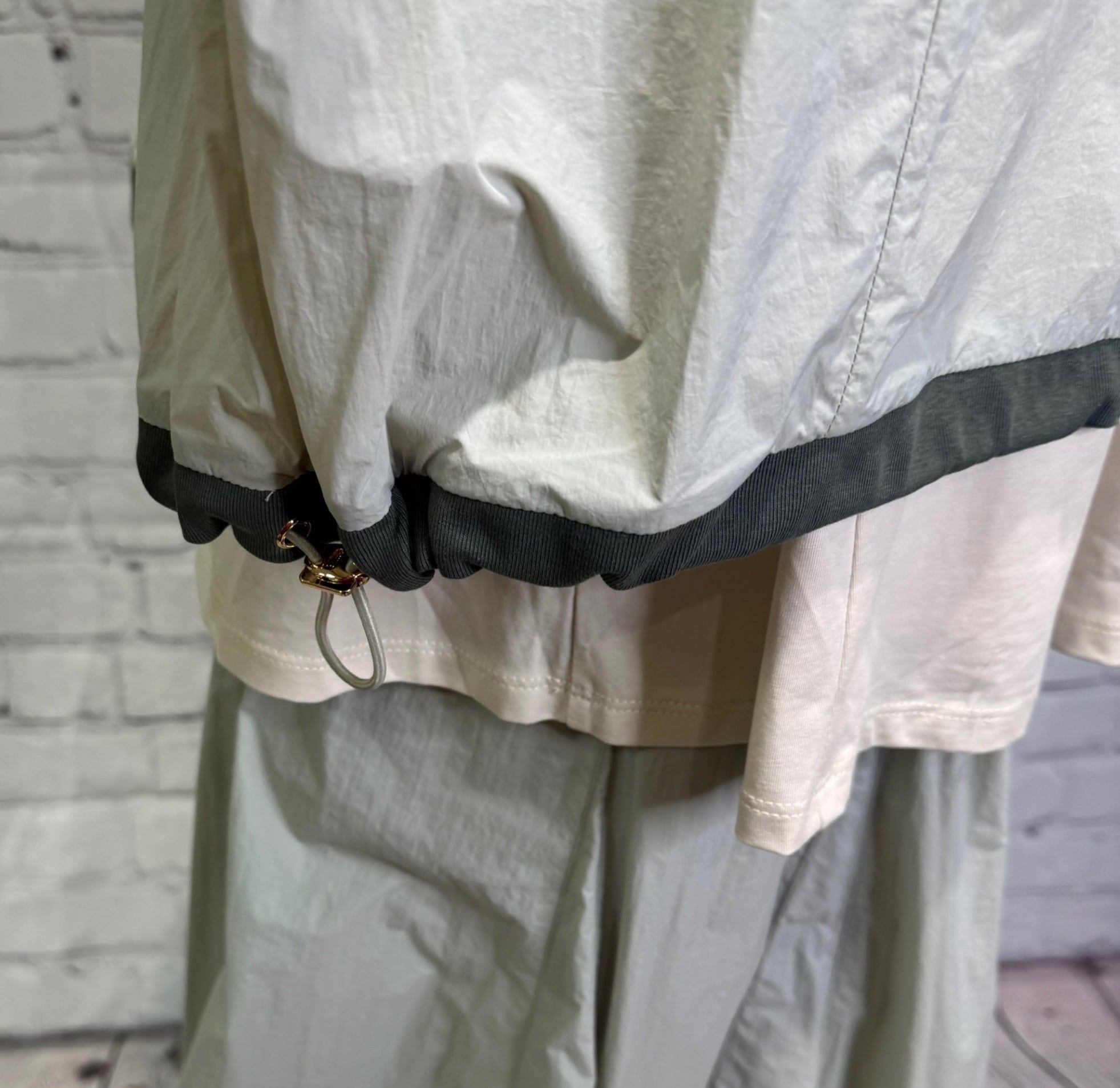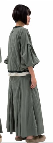 紫外線防止の機能素材です。ナイロン100%なのでヒヤッとした感触があり、且つUVカットの機能も付いた夏におすすめの素材です。長袖なので紫外線対策にも使っていただけます。シンプルなデザインですのでコーデしやすくておすすめです。もちろん裏地は安心の綿100%です!お家で洗えます。同色同素材のUVプロテクション素材16枚ハギスカート(826530)とのセットアップコーデもおすすめです。