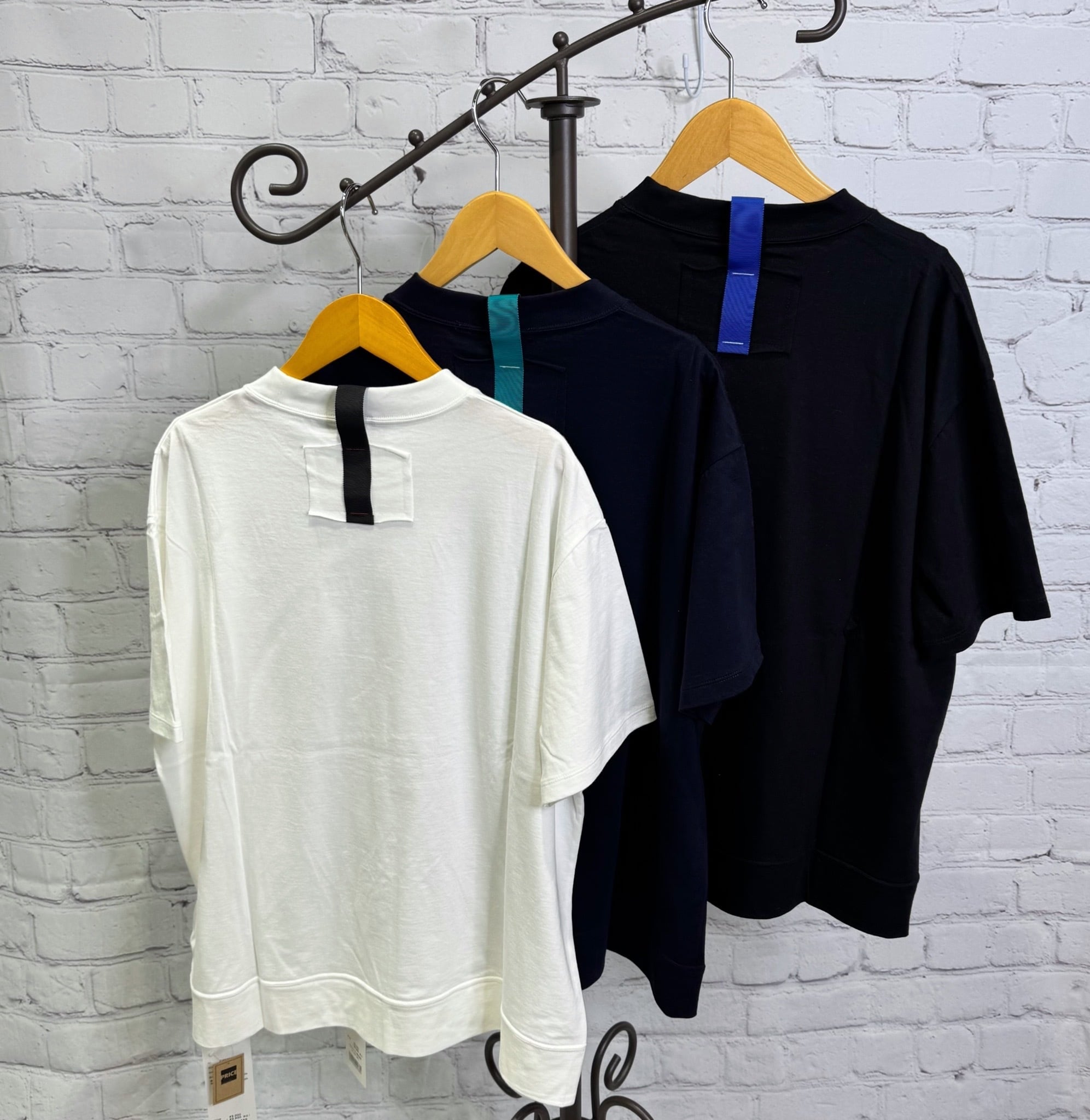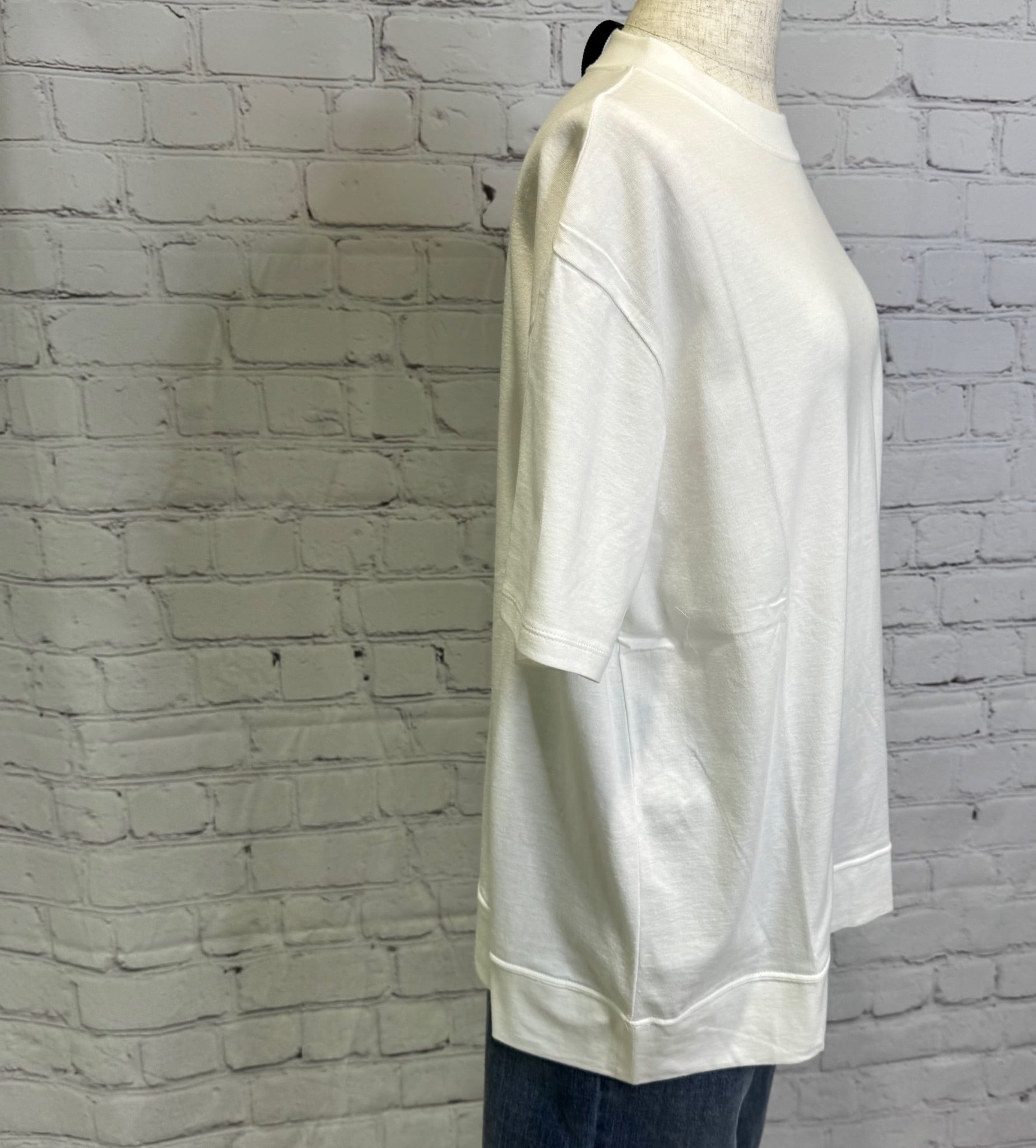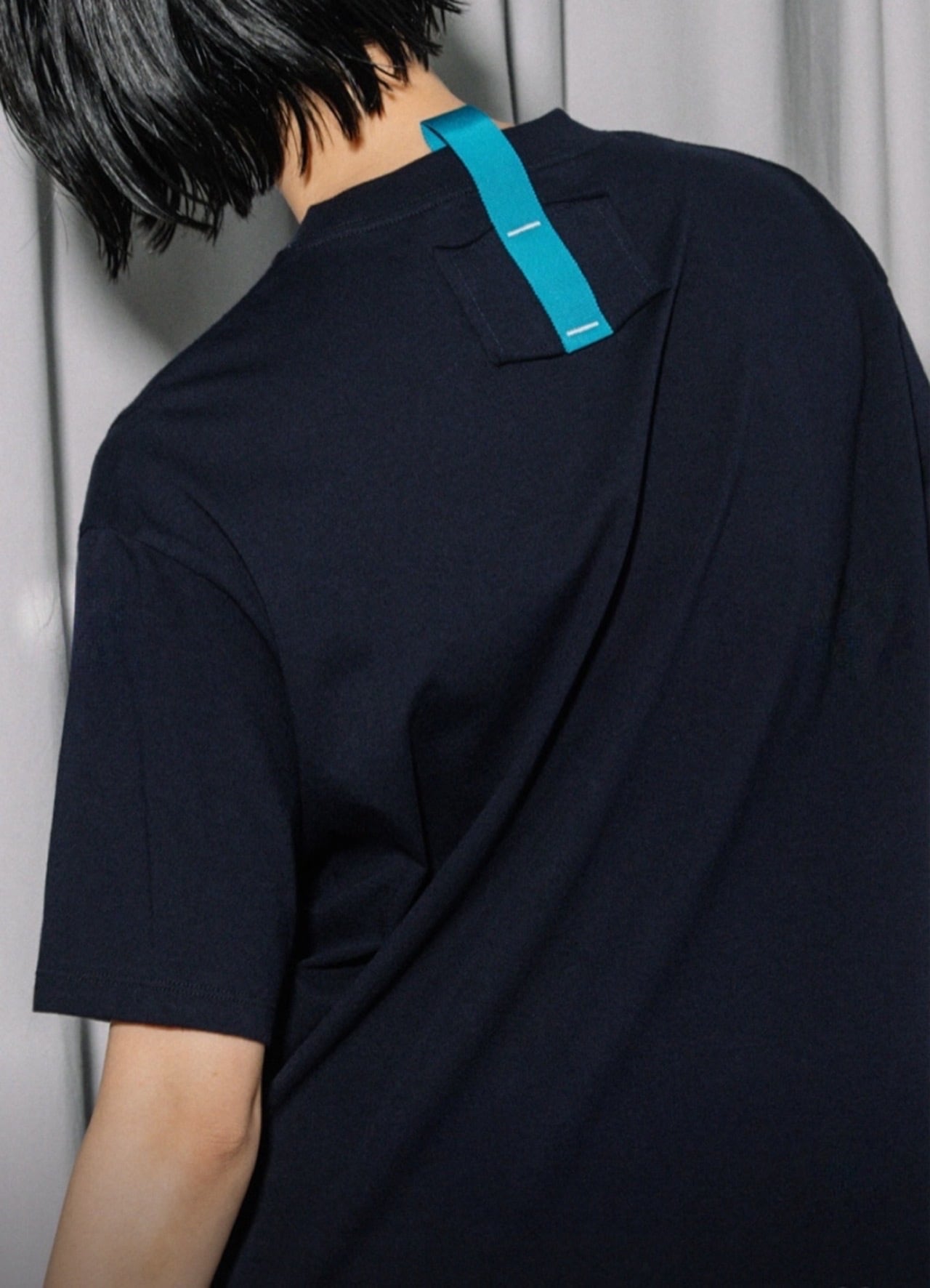 コットン100%で肌触りが良く、フロントはシンプルに、バックネックの配色カラーテープデザインでさり気なくアクセントを添えたTシャツです。左裾のスリットが縦ラインを強調し、ボックスシルエットも重たく見えないバランスに。動きやすくレイヤードにも使いやすい仕様です。シンプルだからこそ、アクセサリーやバッグで雰囲気を変えやすいのも魅力でどんなボトムとも相性が良く着回し力抜群なアイテムです。日本製。