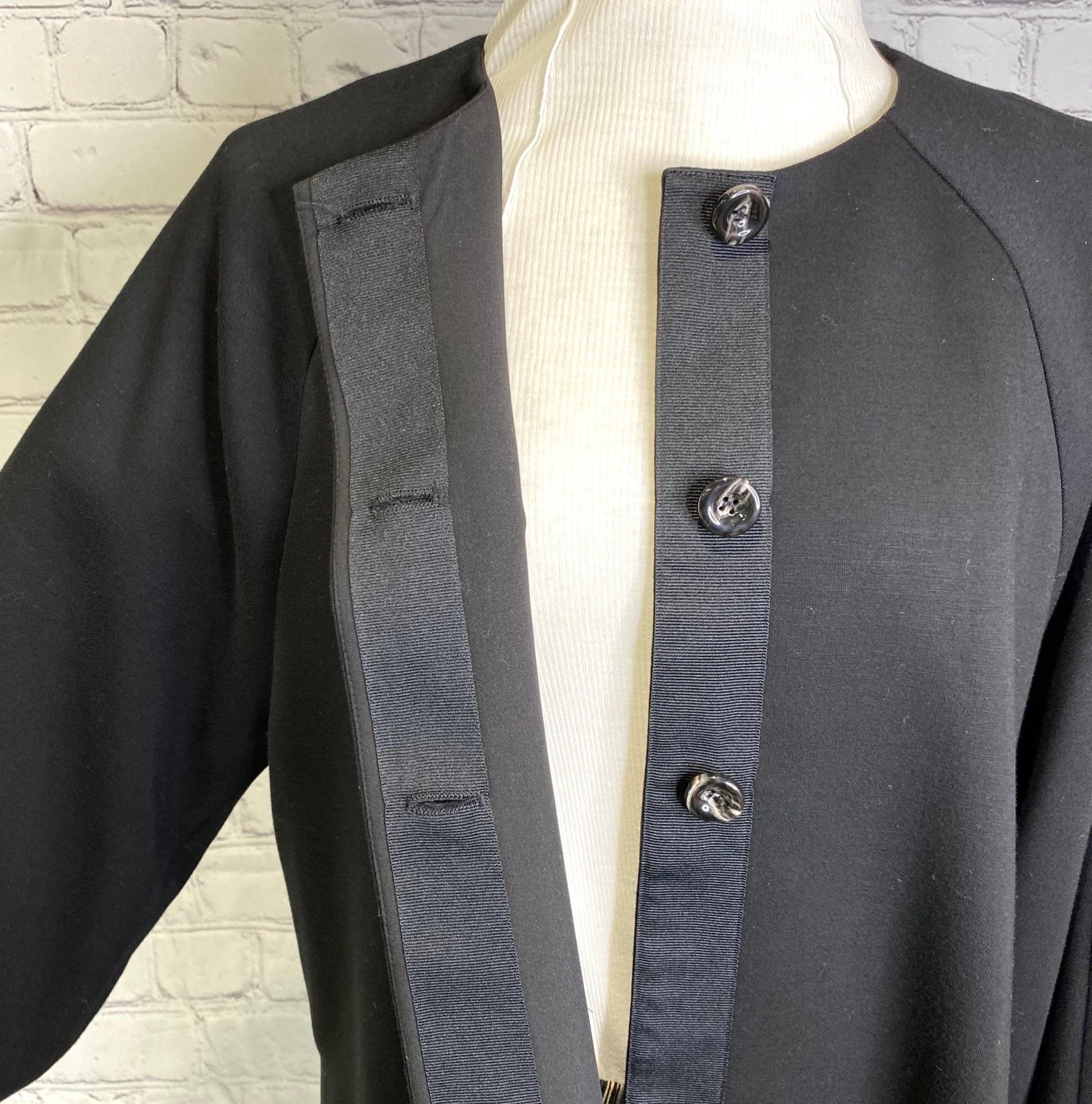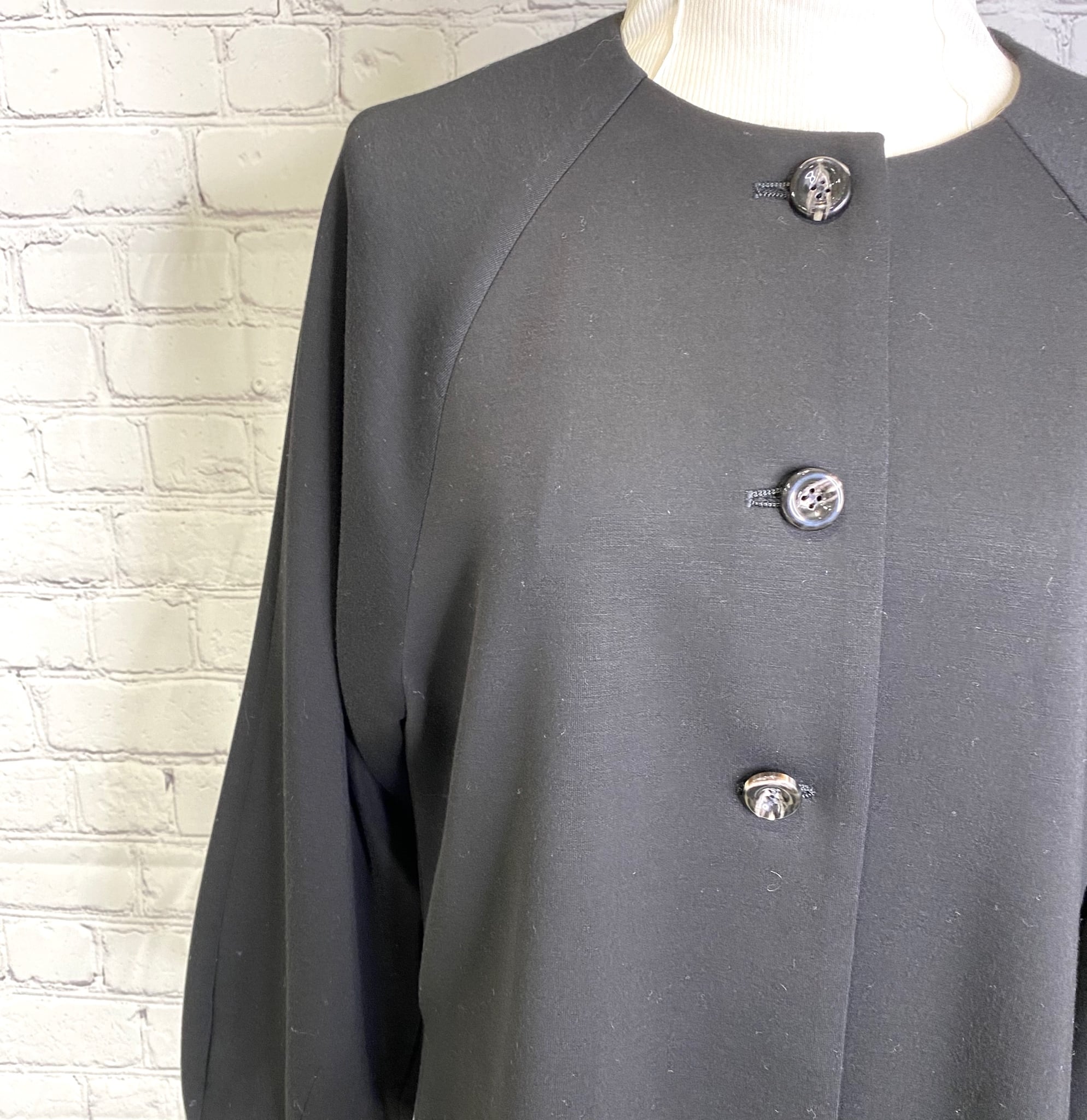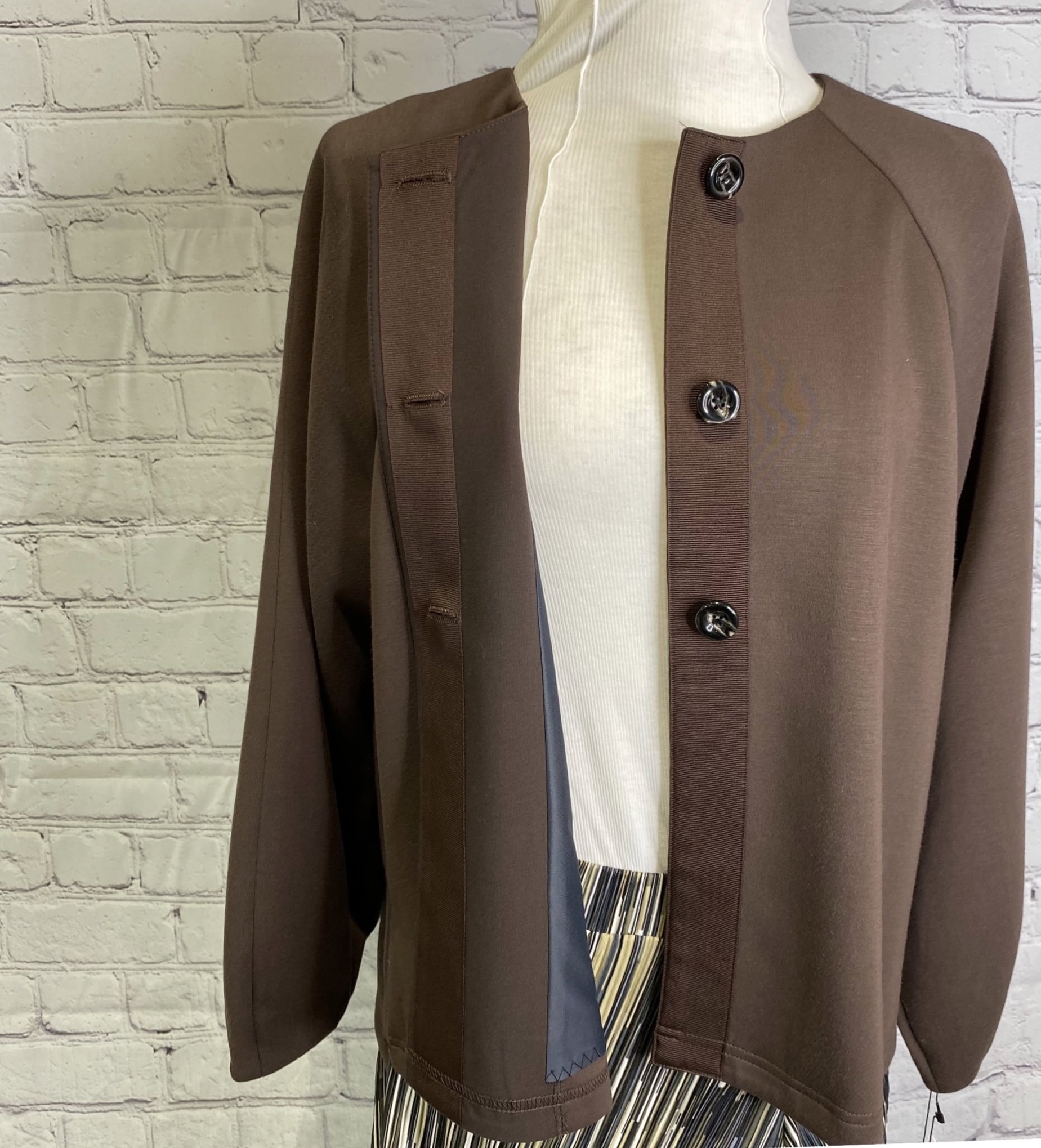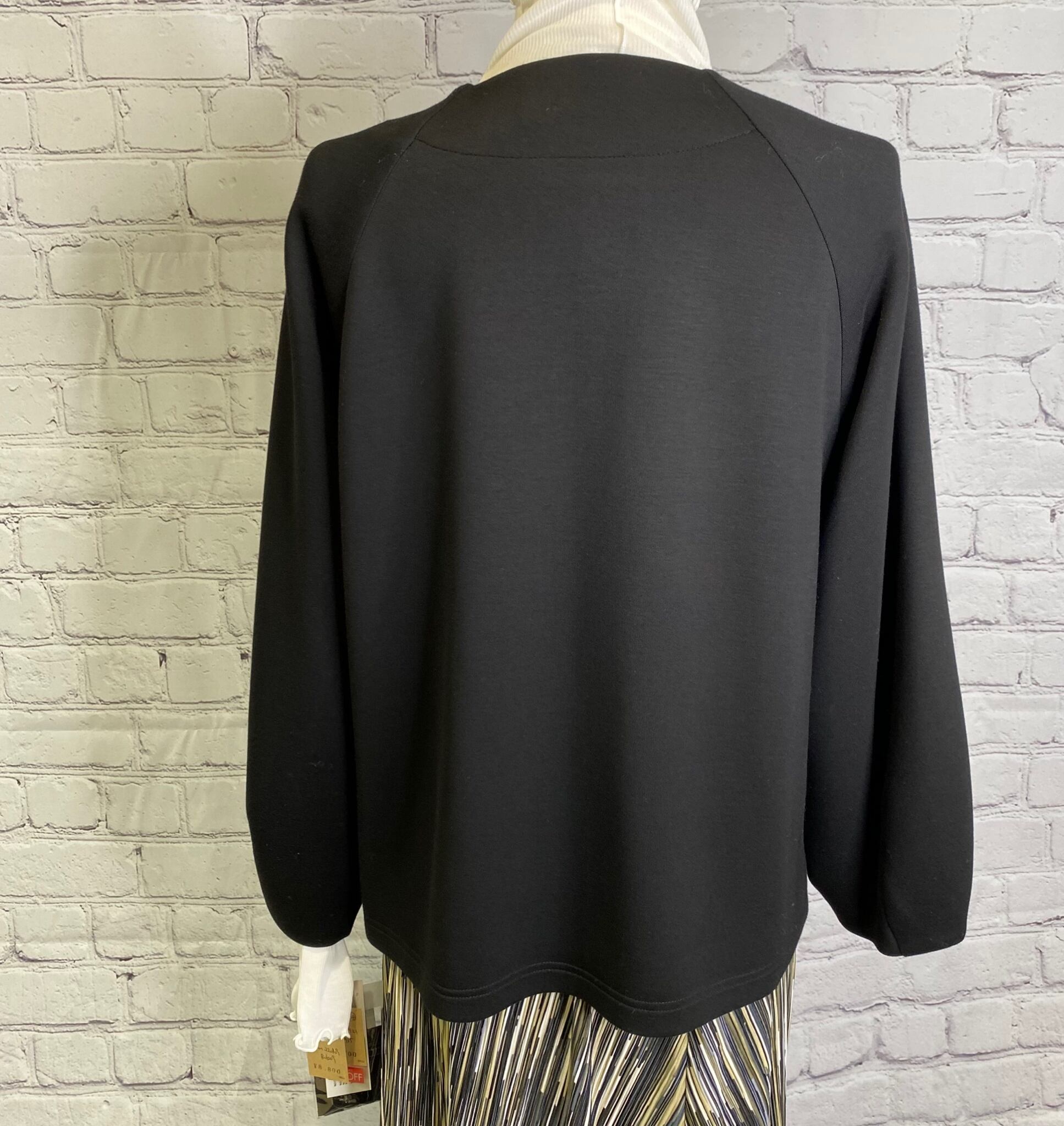 フロントの上から3ボタンがポイントのシンプルジャケットです。 ノーカラーなので人気のボトルネックのトップスを合わせたり首元のおしゃれも楽しめます。お袖がゆるめでシルエットが大人かわいい一枚です。
