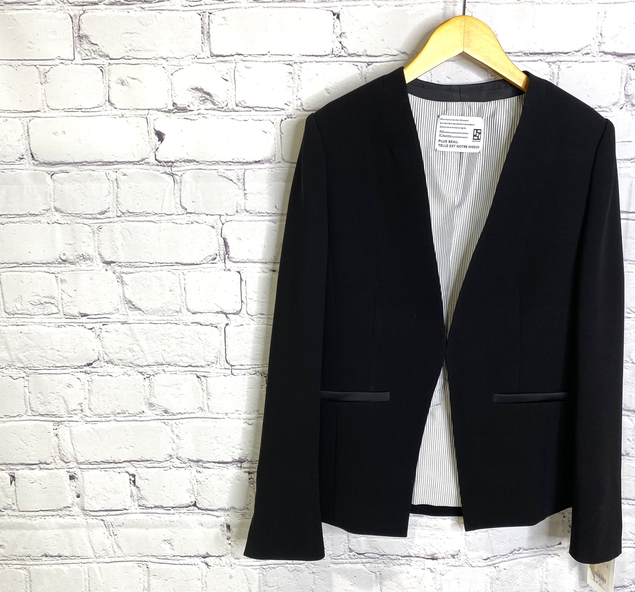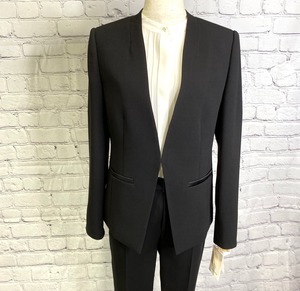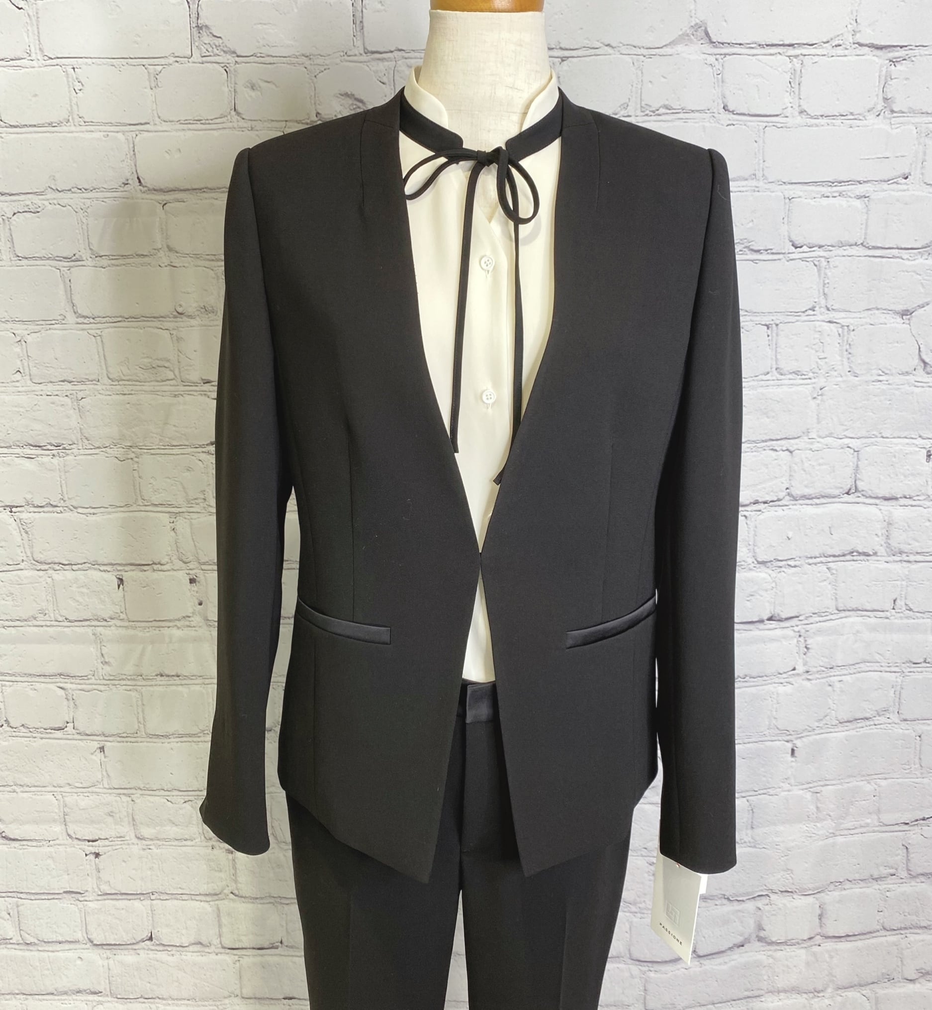 テーパードパンツ(316608) スカート(316615)とセットアップできます。 スッキリとした襟元がスタイリッシュなジャケットです。 シワになりにくくお仕事にも活躍してくれるアイテムです。