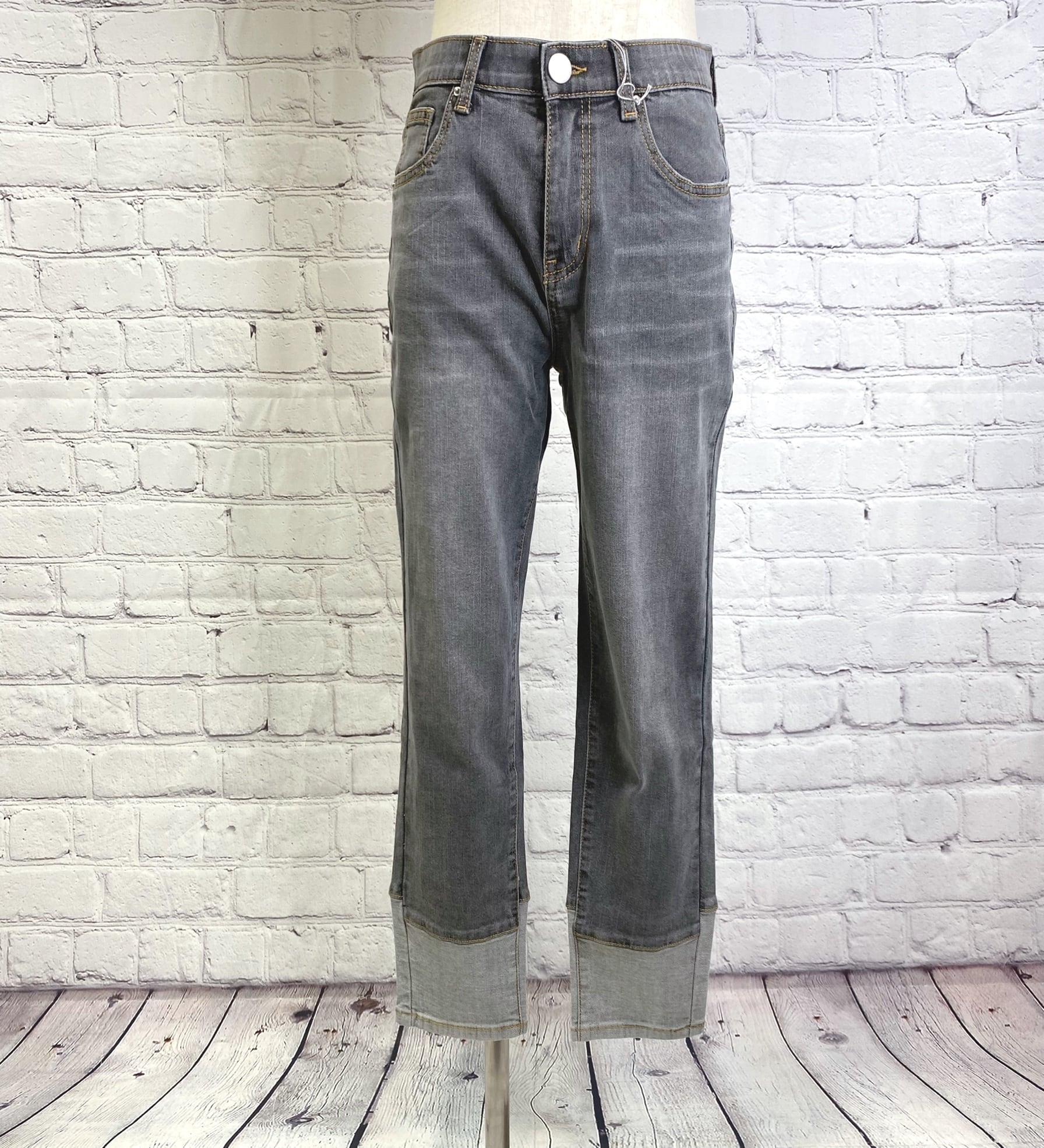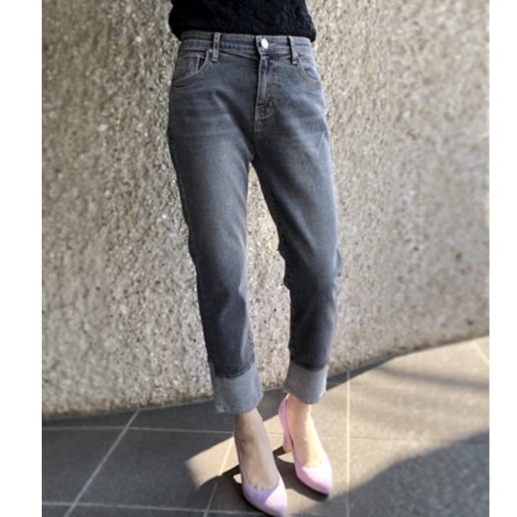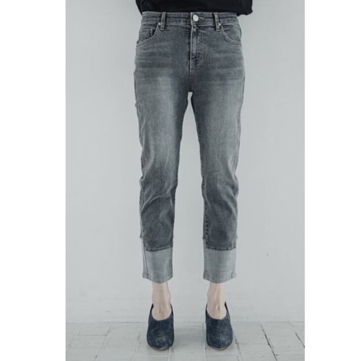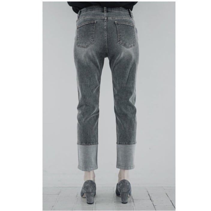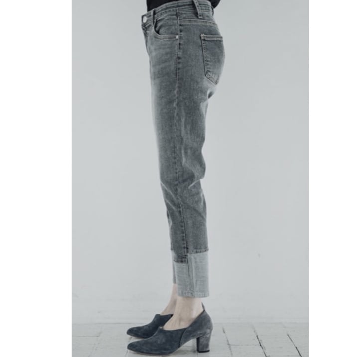 INDIMARK インディマーク 折り返し風デザインボーイフレンドデニム グレー WJ045