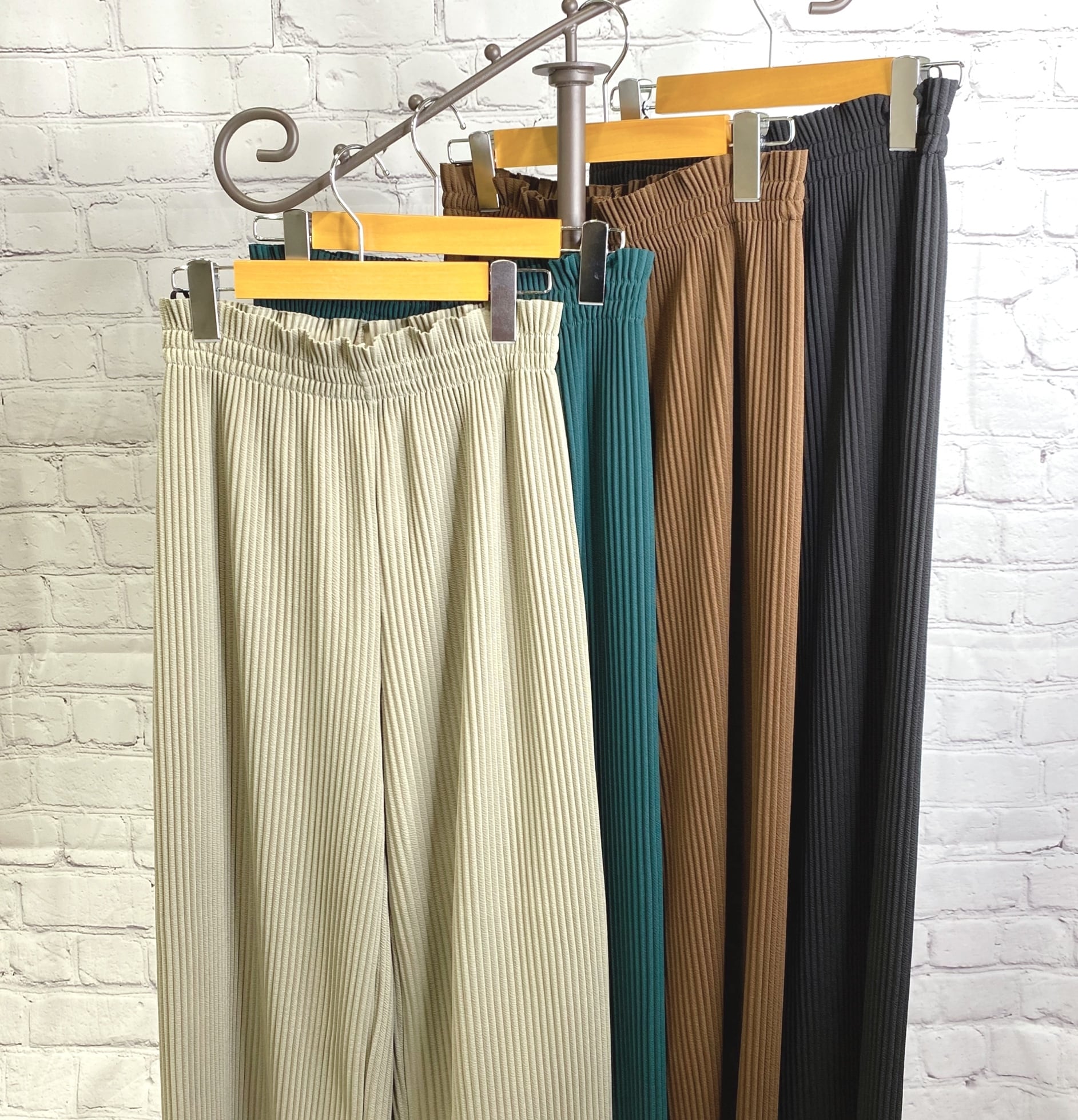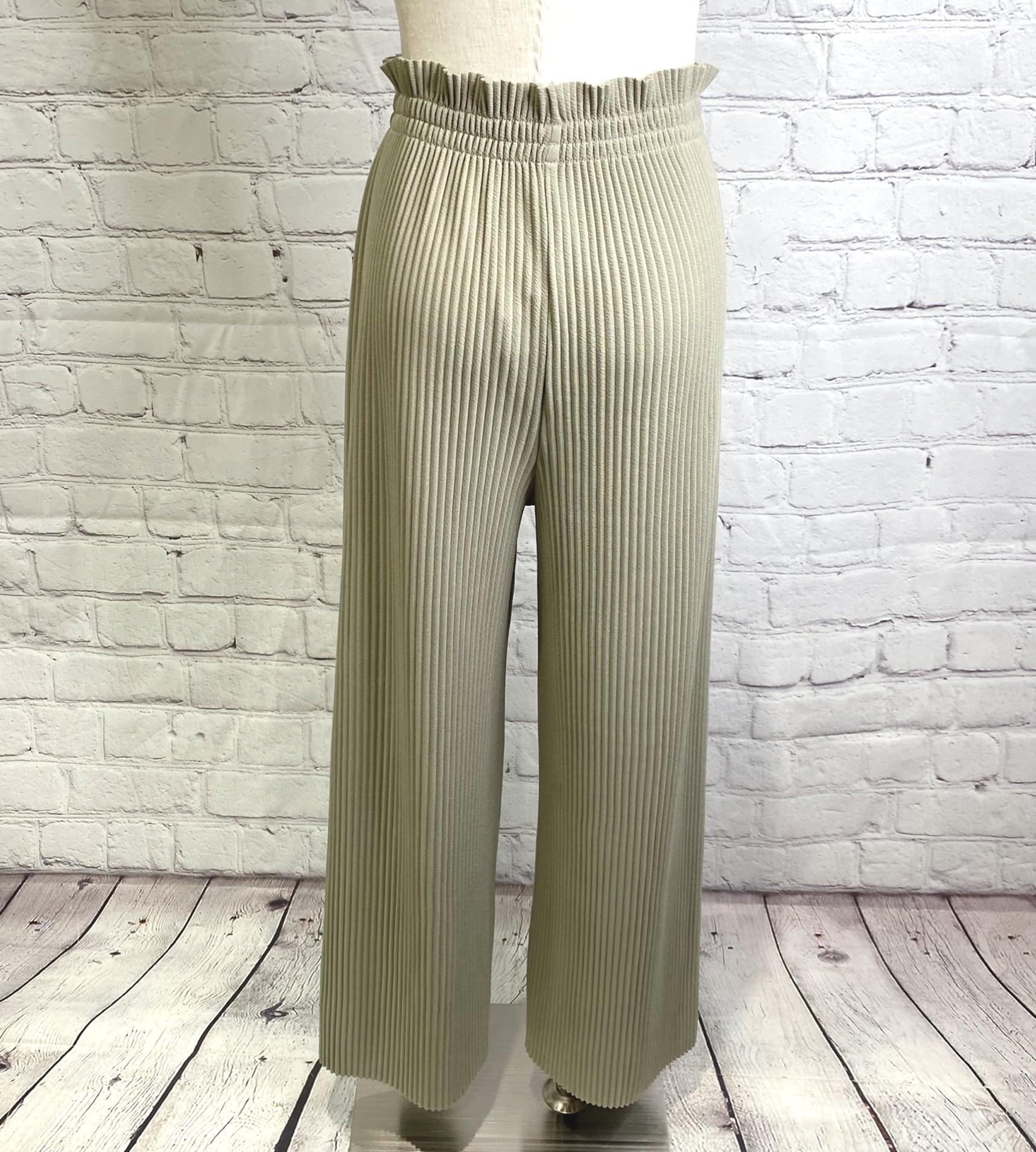 大人気のプリーツパンツ! 楽ちんでインナーパンツとしても活躍しそう。サイズも幅広い対応が可能な優秀過ぎるパンツです。裾が切りっぱなしなのでお直しも簡単です♪ お家で洗えます。