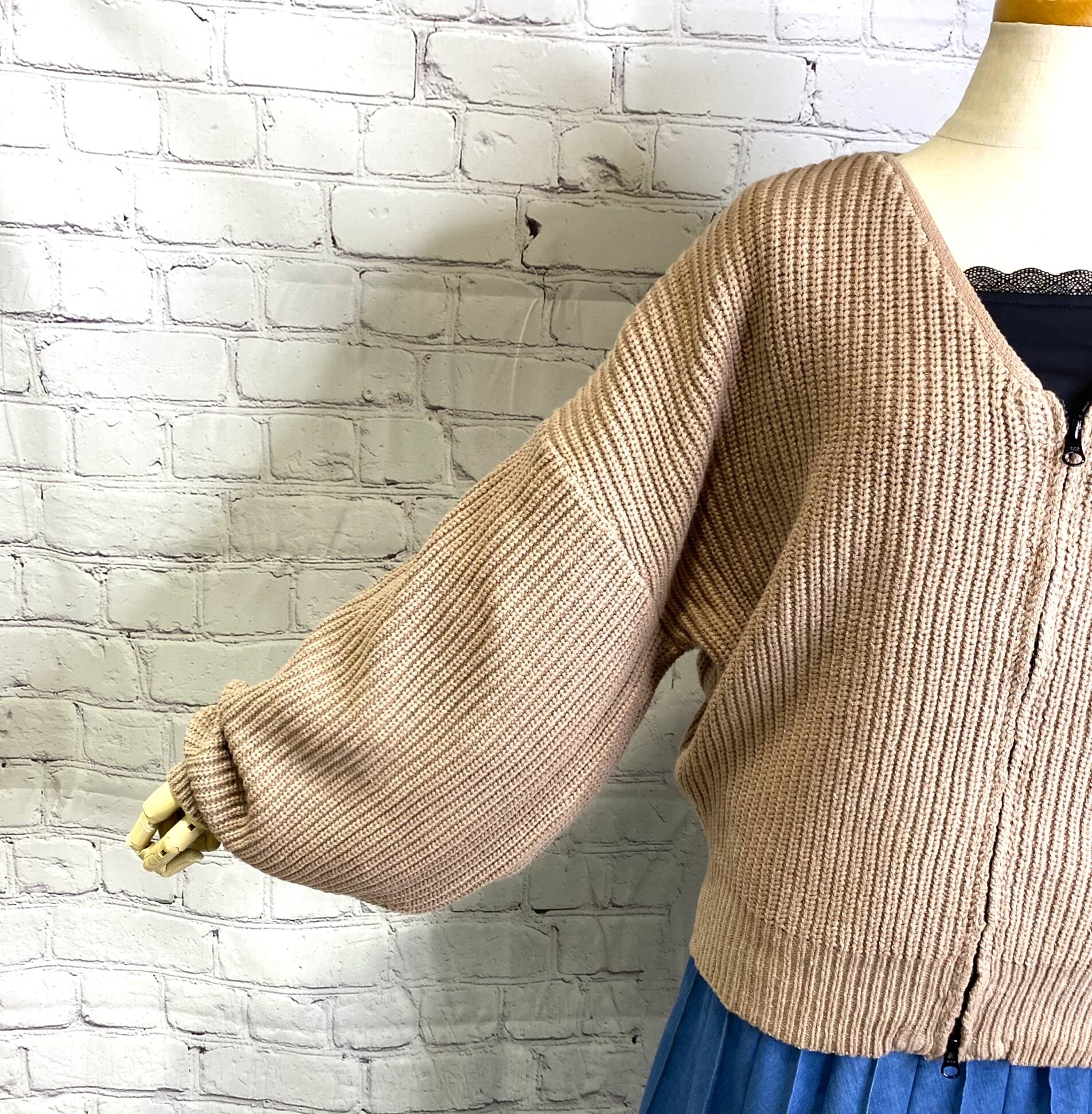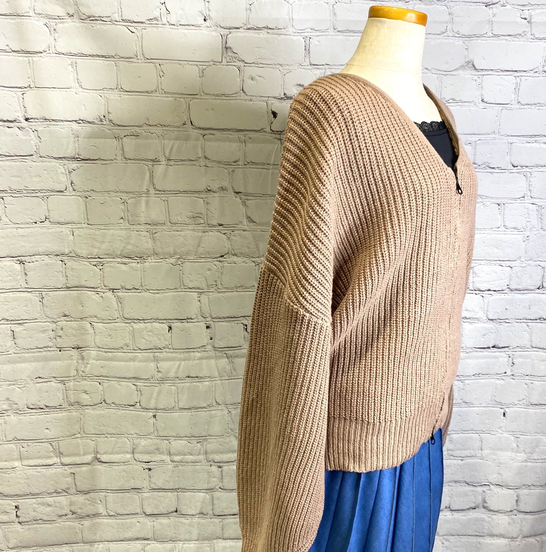お袖のボリュームがとても可愛いニットカーディガンです。サクッとどんなものにも羽織れて便利なアイテムです。フワっと柔らかい素材なので肌触りも良く、年齢層も幅広く対応できます。Wジッパー仕様も嬉しい!