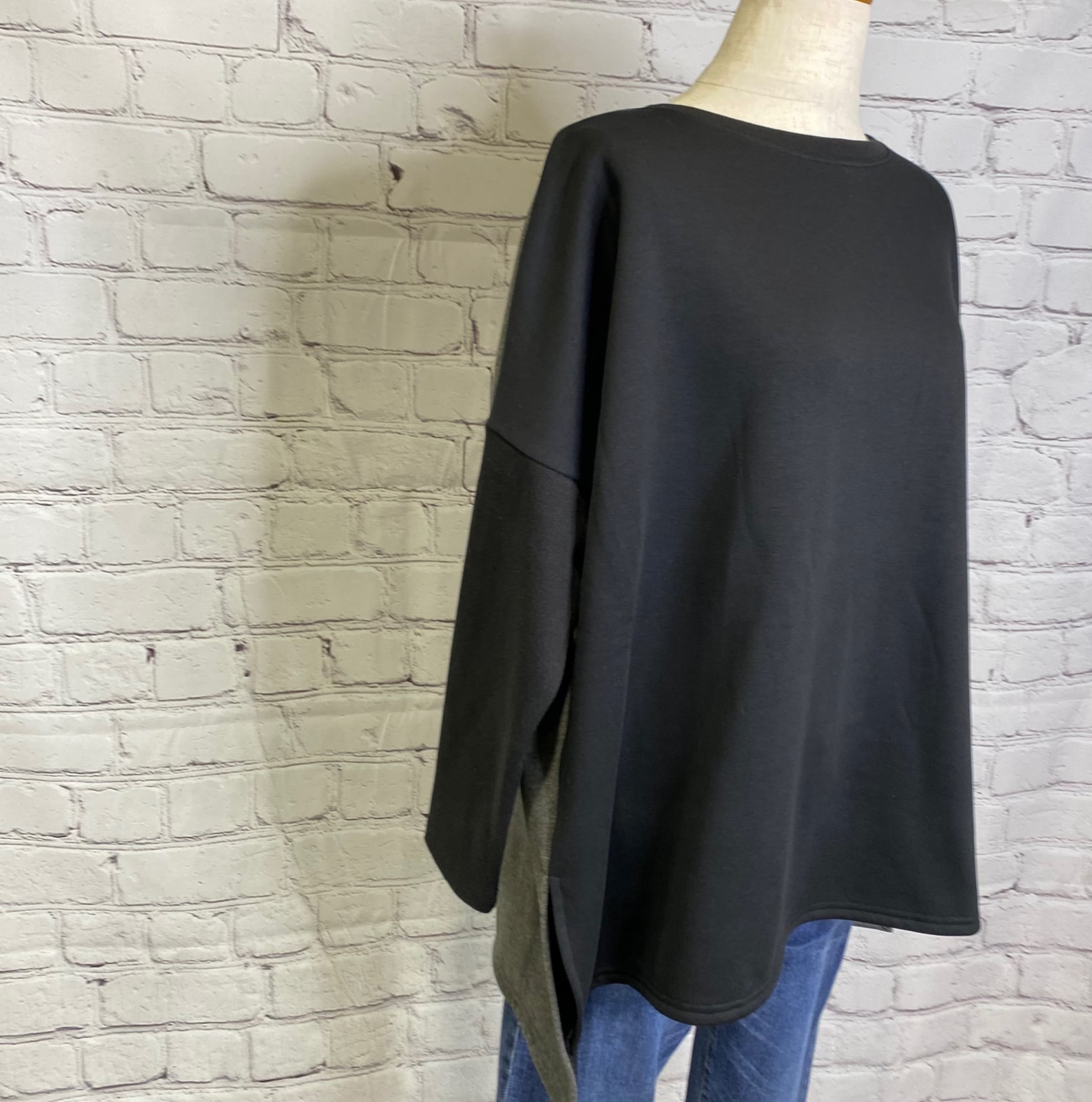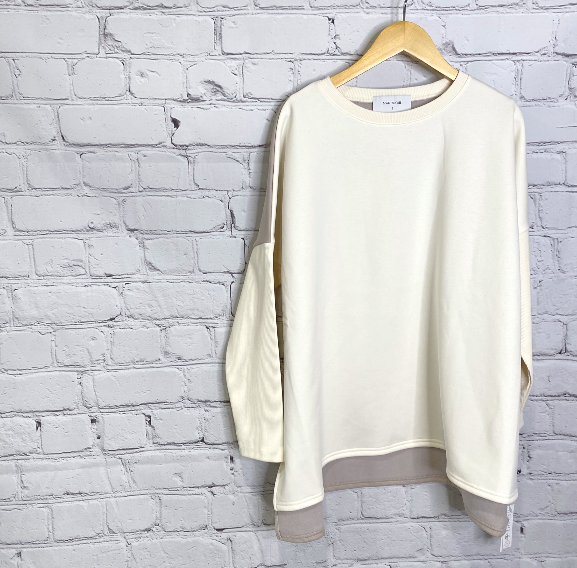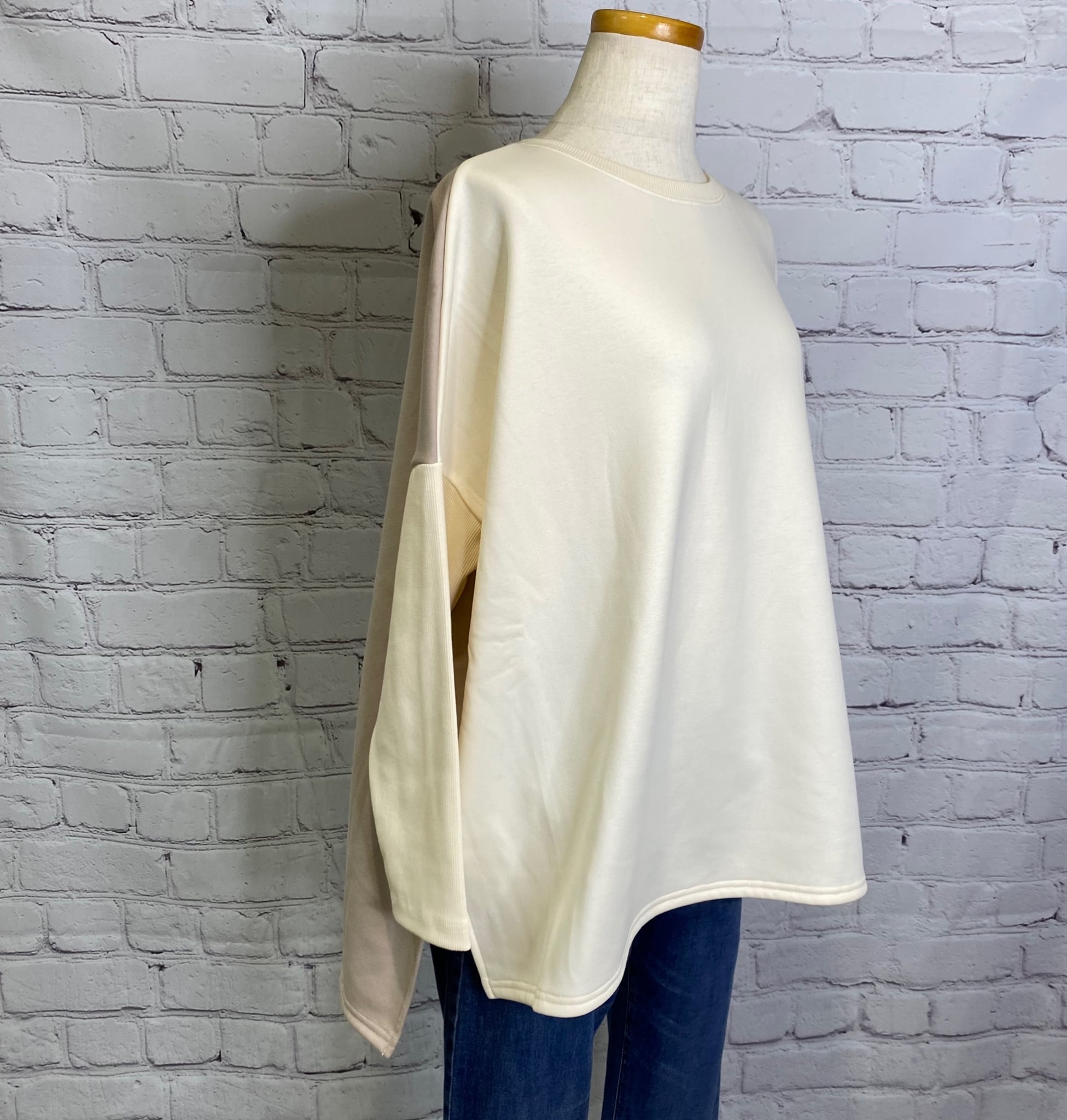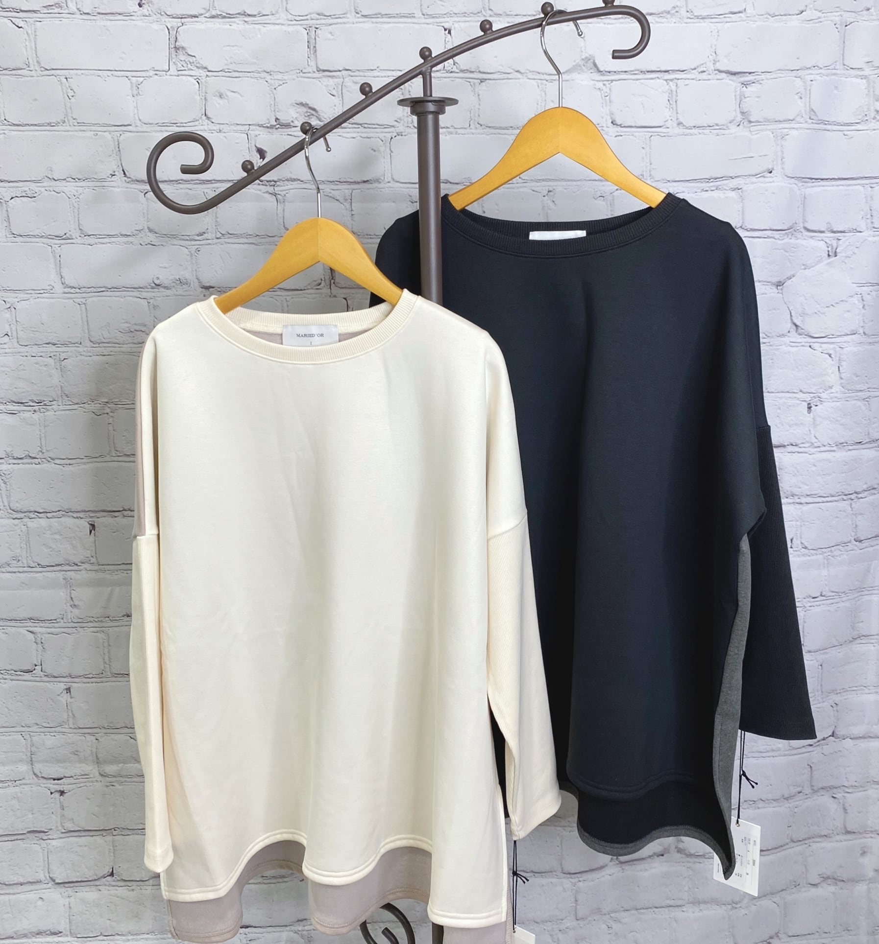 お袖の長めリブと見頃の前後配色がポイントのプルオーバーです。 裏起毛で暖かいです。サイドスリット入り。お家で洗えます。