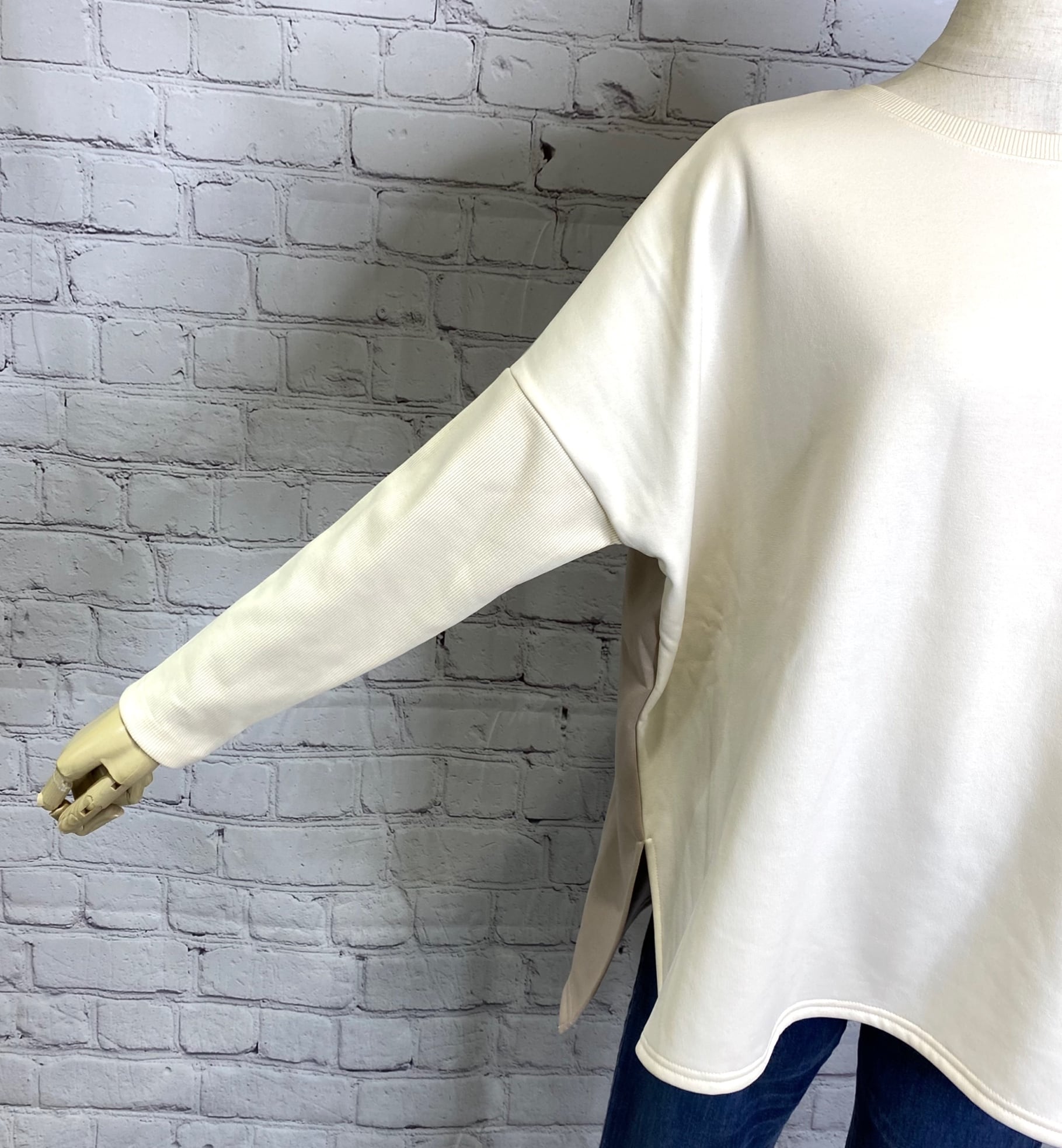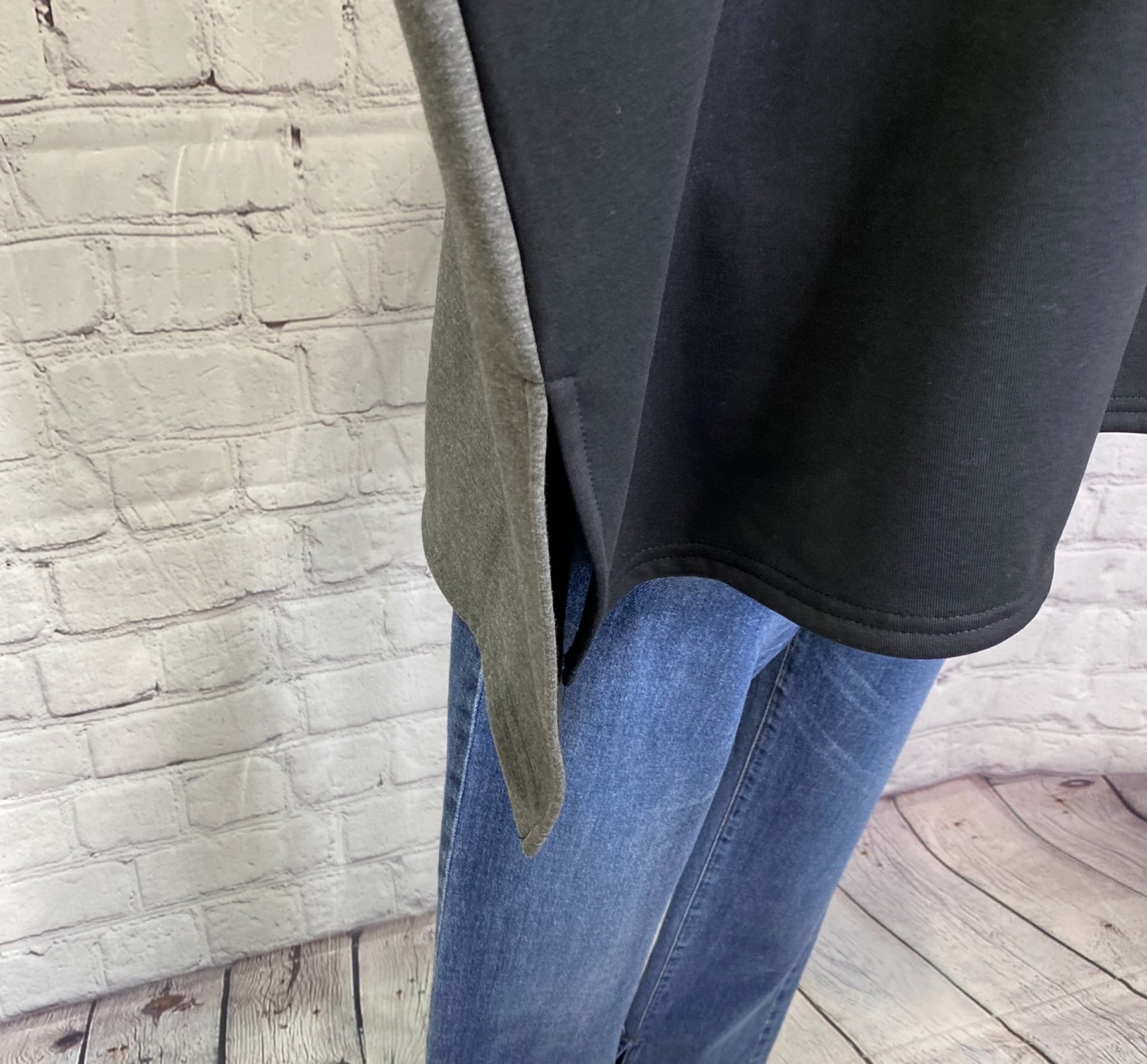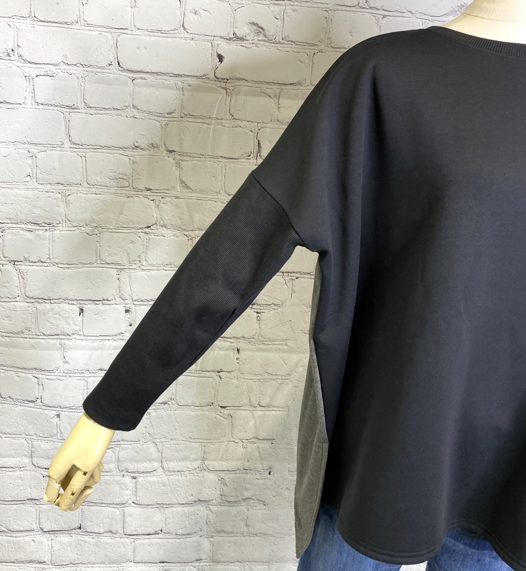 お袖の長めリブと見頃の前後配色がポイントのプルオーバーです。 裏起毛で暖かいです。サイドスリット入り。お家で洗えます。