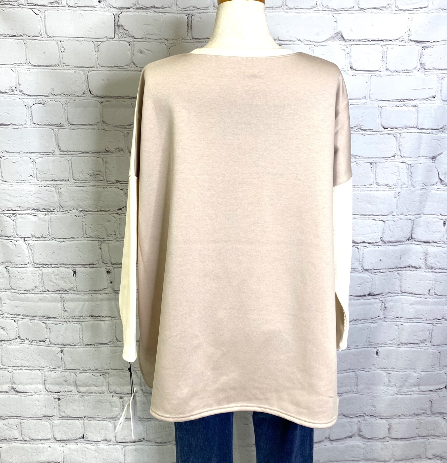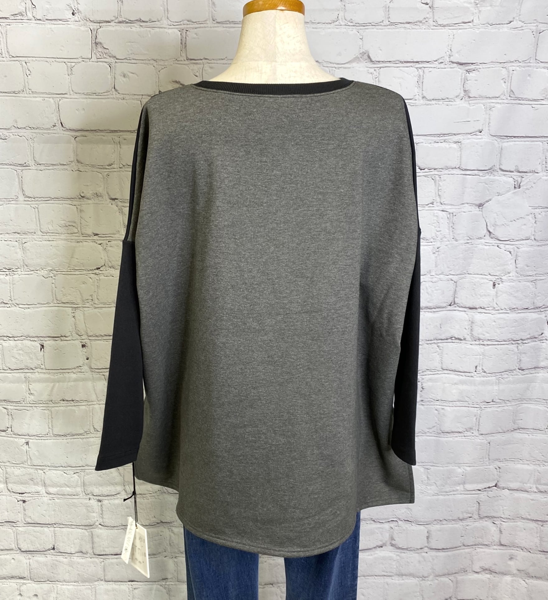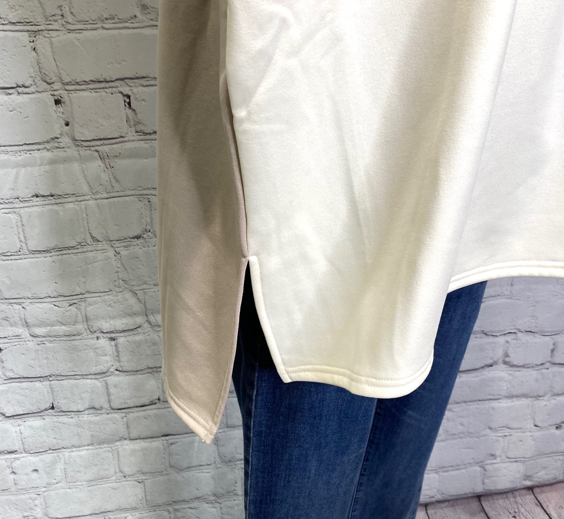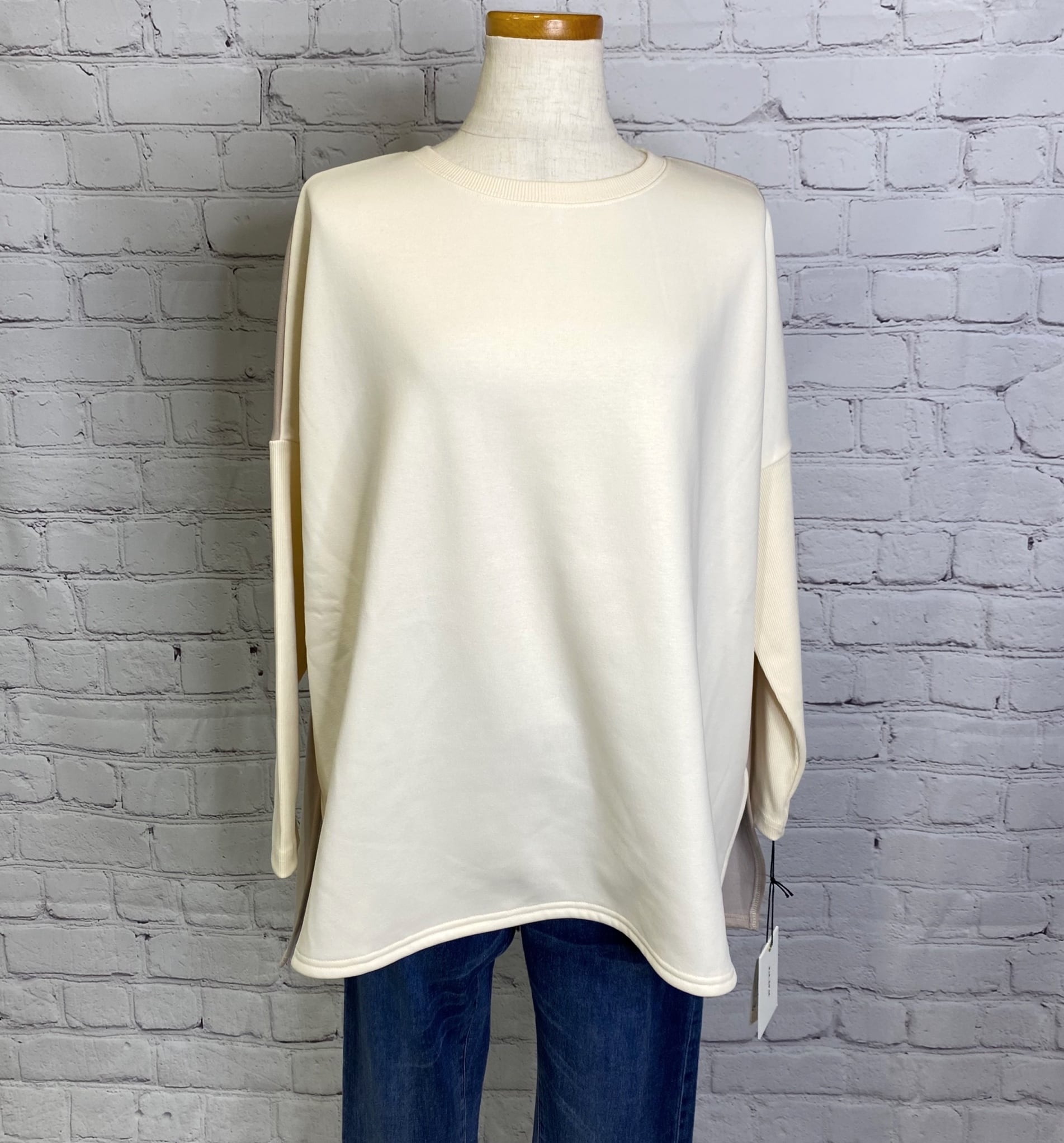 お袖の長めリブと見頃の前後配色がポイントのプルオーバーです。 裏起毛で暖かいです。サイドスリット入り。お家で洗えます。