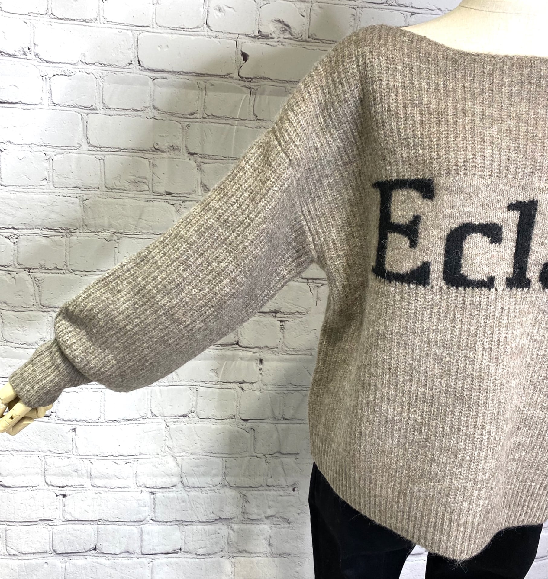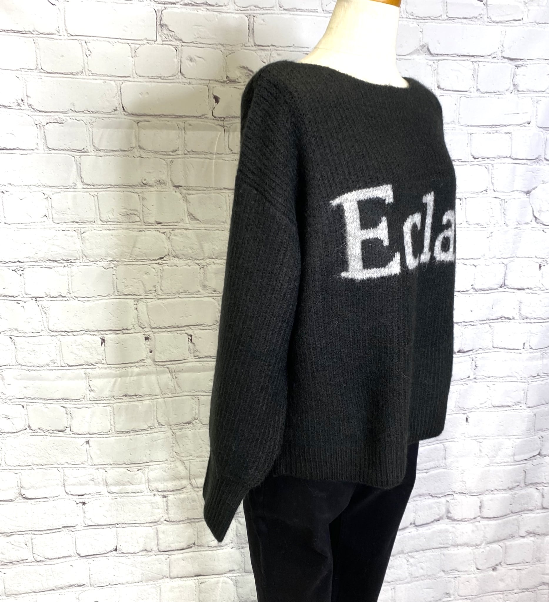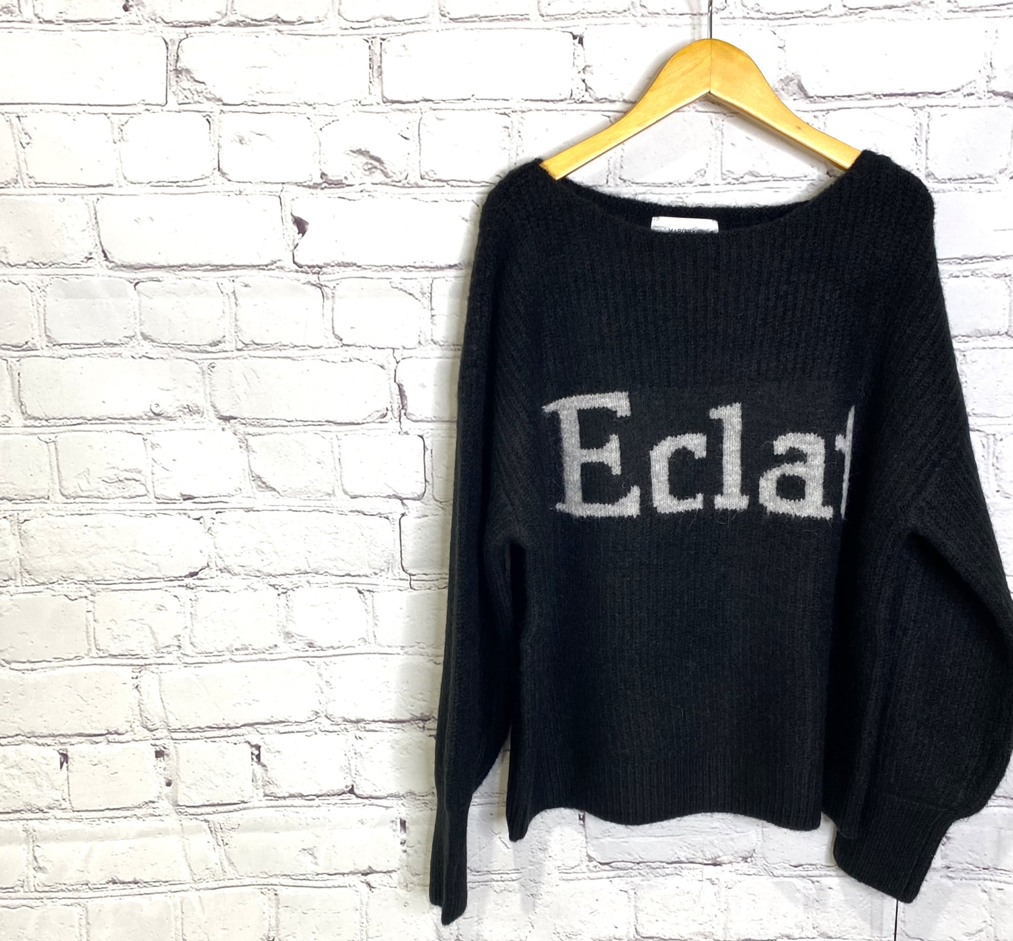 アルパカ混のロゴニットプルオーバーです。衿の開きが広めなのですっきり華奢見えしてくれます。 程よい丈感なのでパンツでもスカートでもボトムス選ばずコーデしやすくておすすめです。