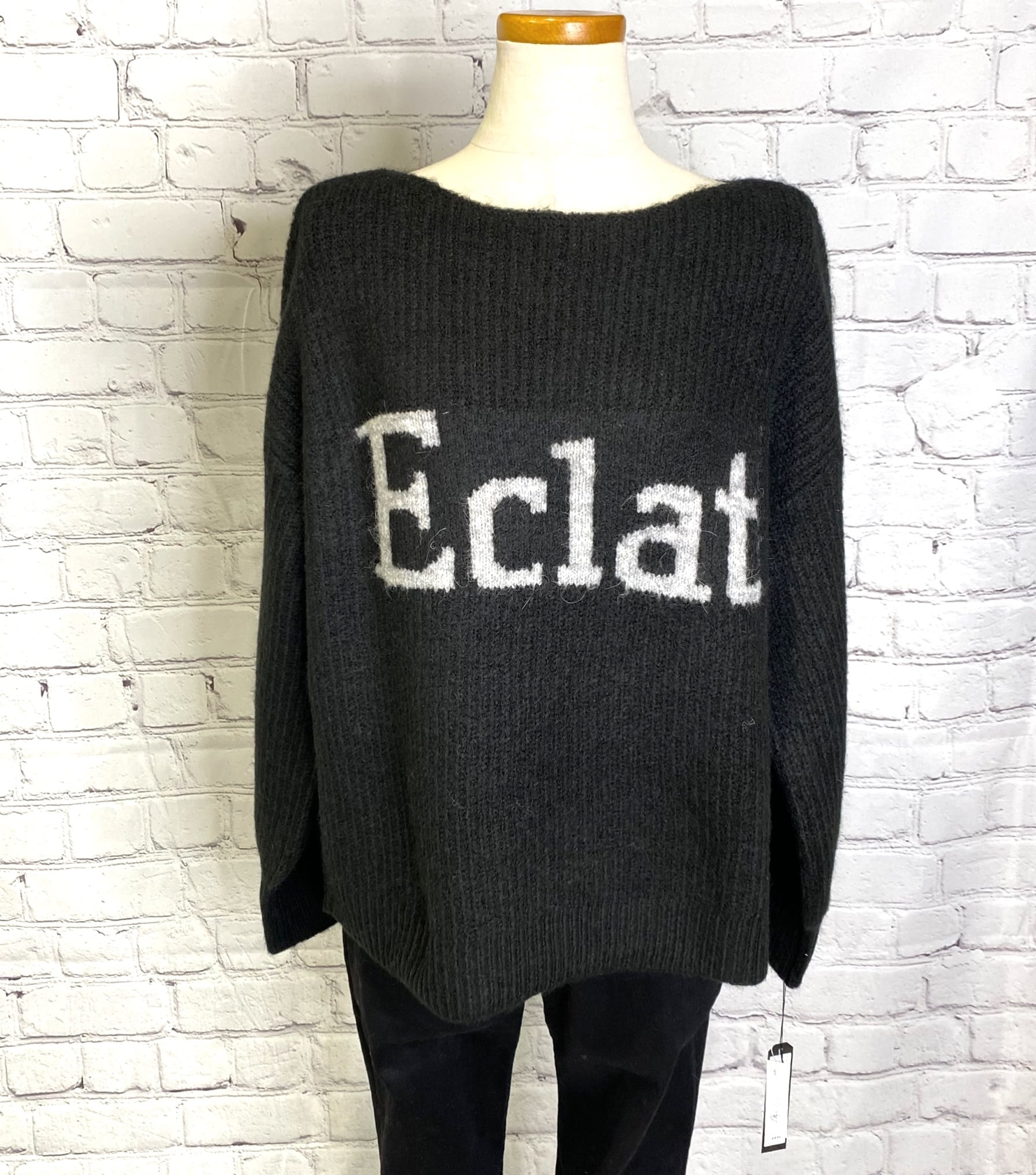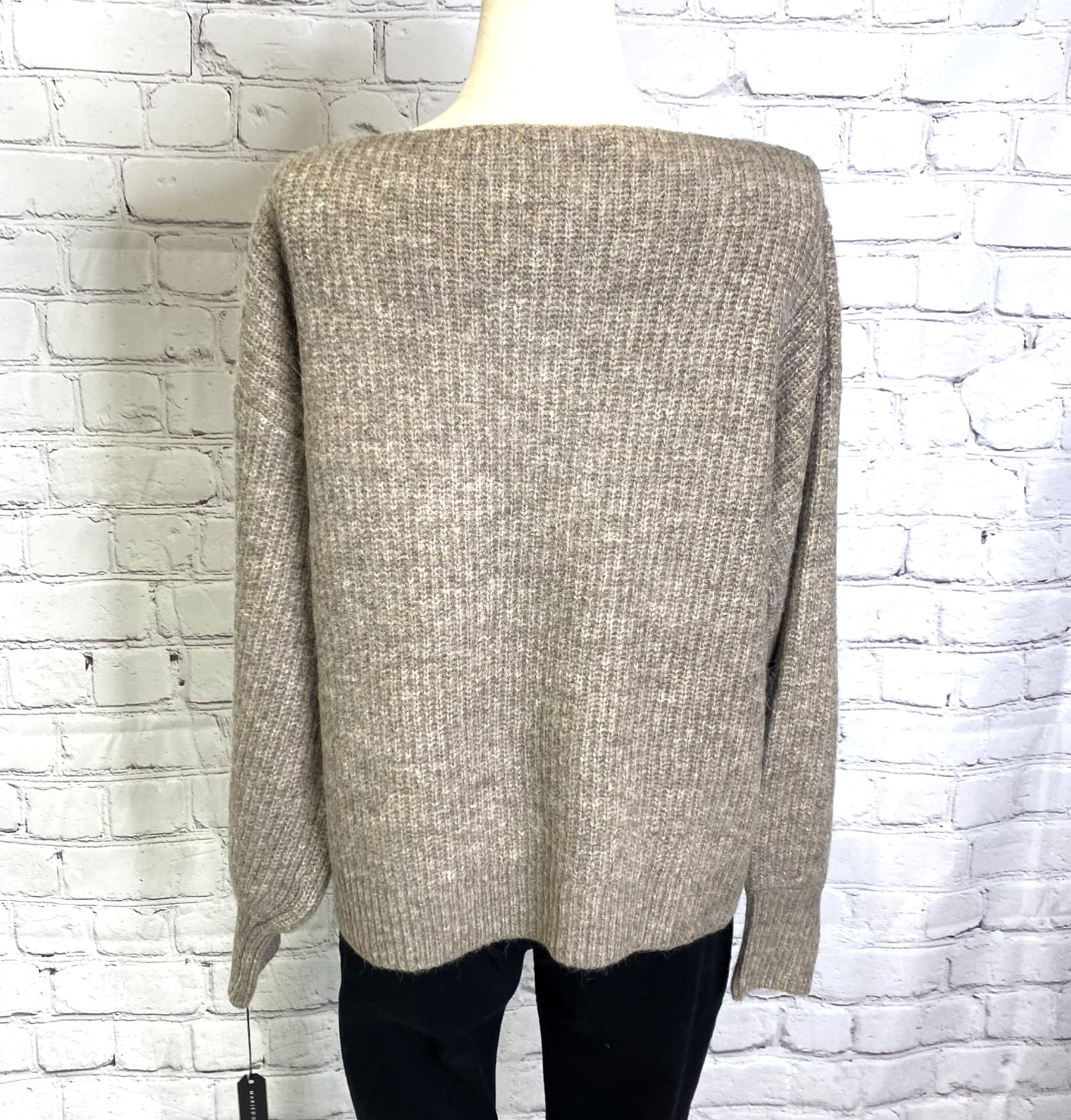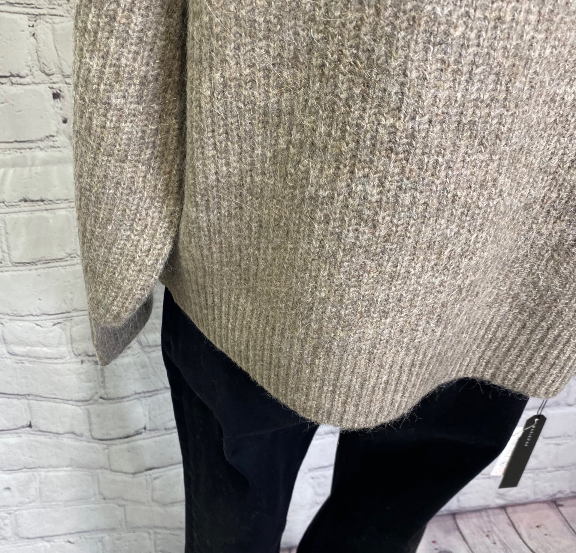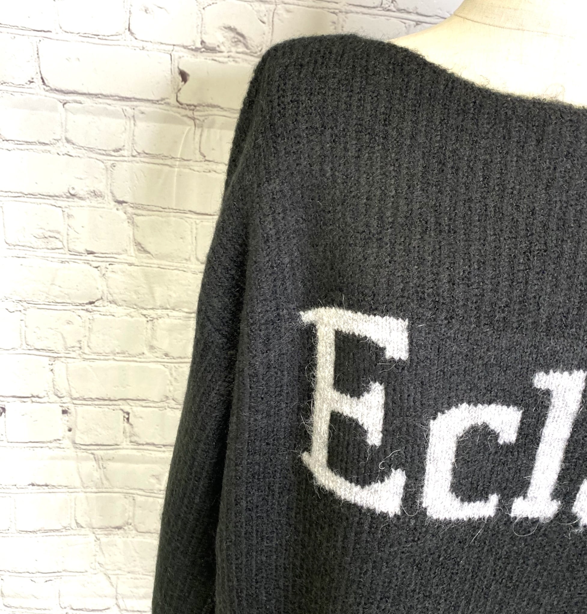アルパカ混のロゴニットプルオーバーです。衿の開きが広めなのですっきり華奢見えしてくれます。 程よい丈感なのでパンツでもスカートでもボトムス選ばずコーデしやすくておすすめです。