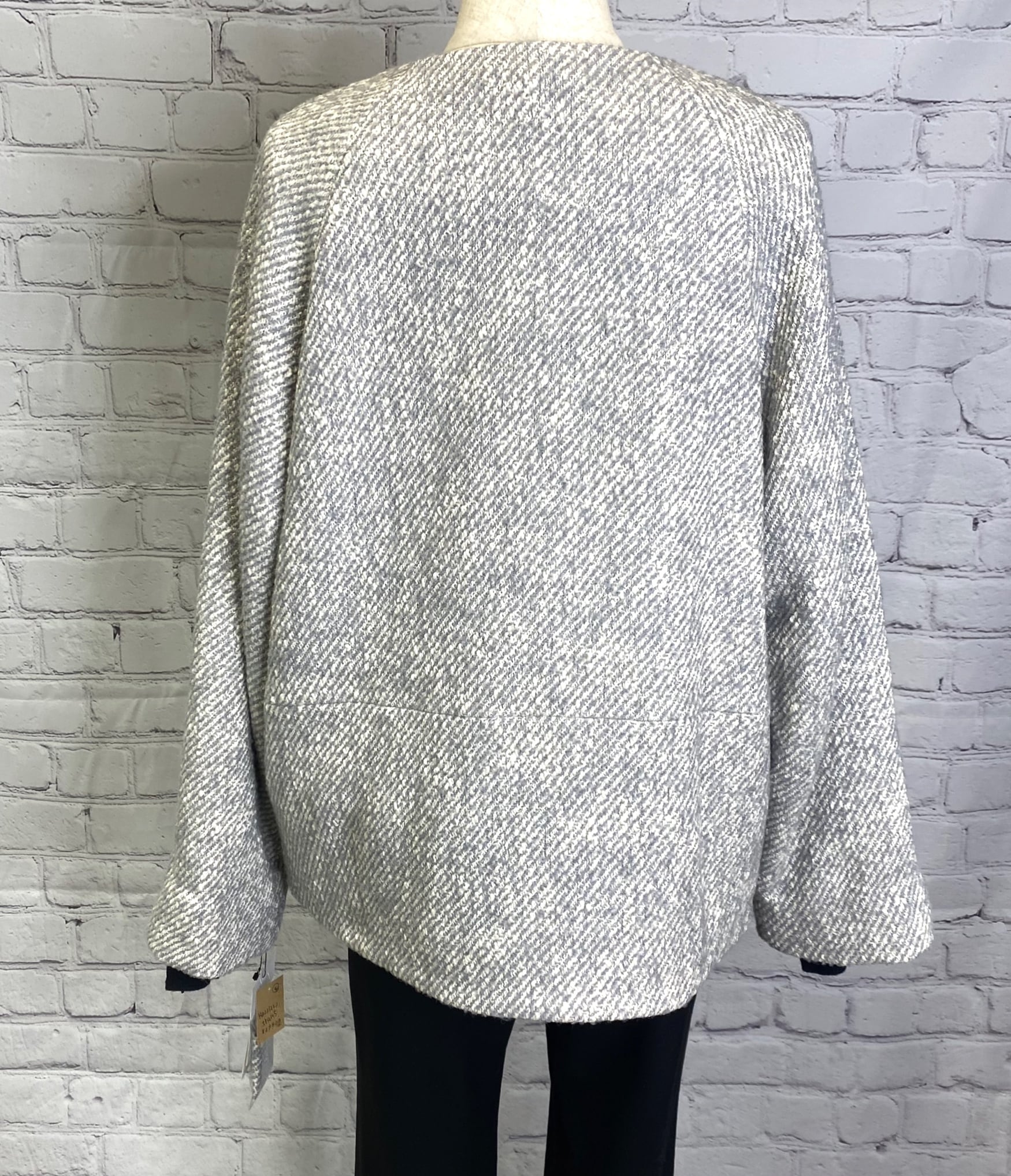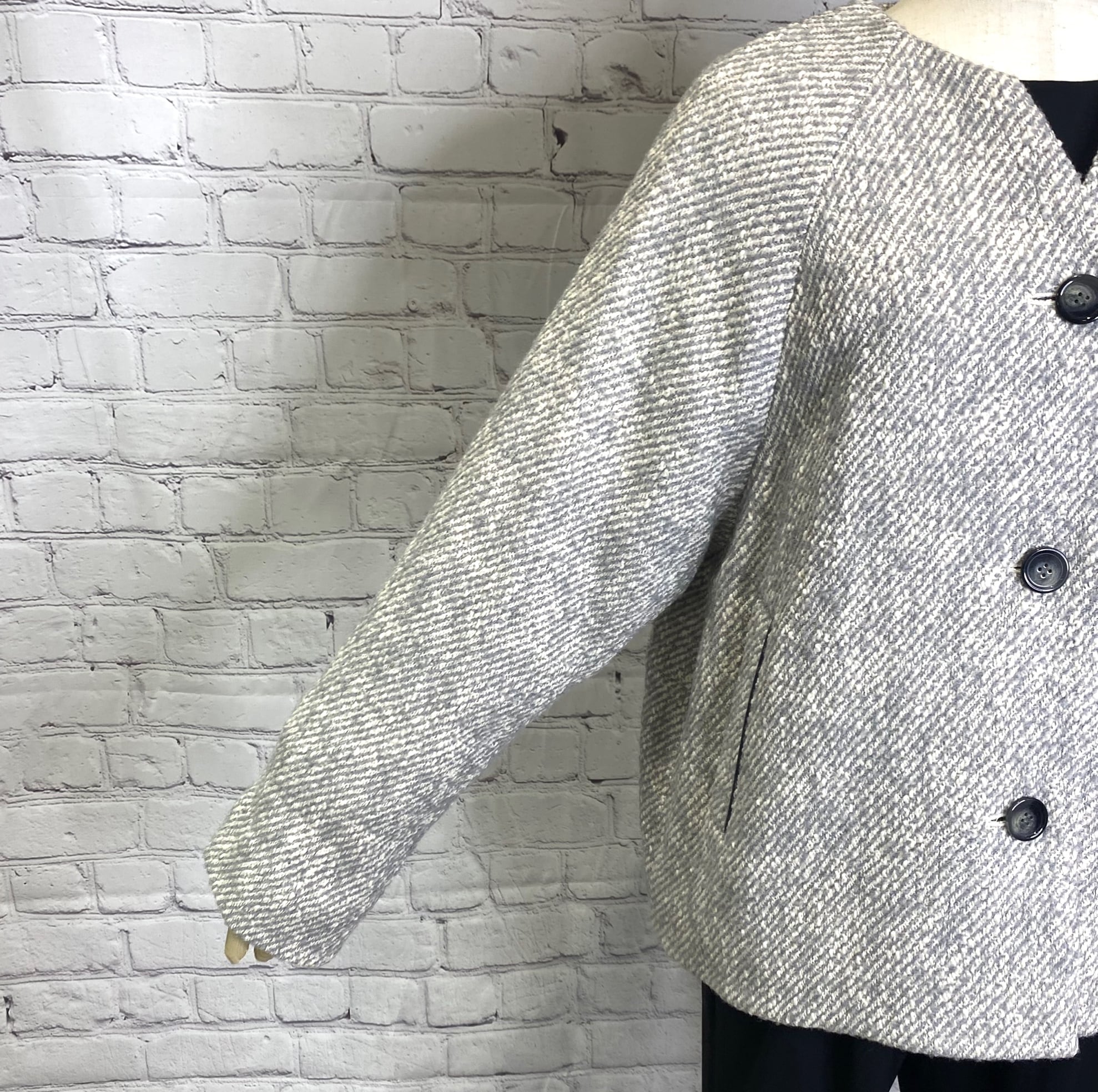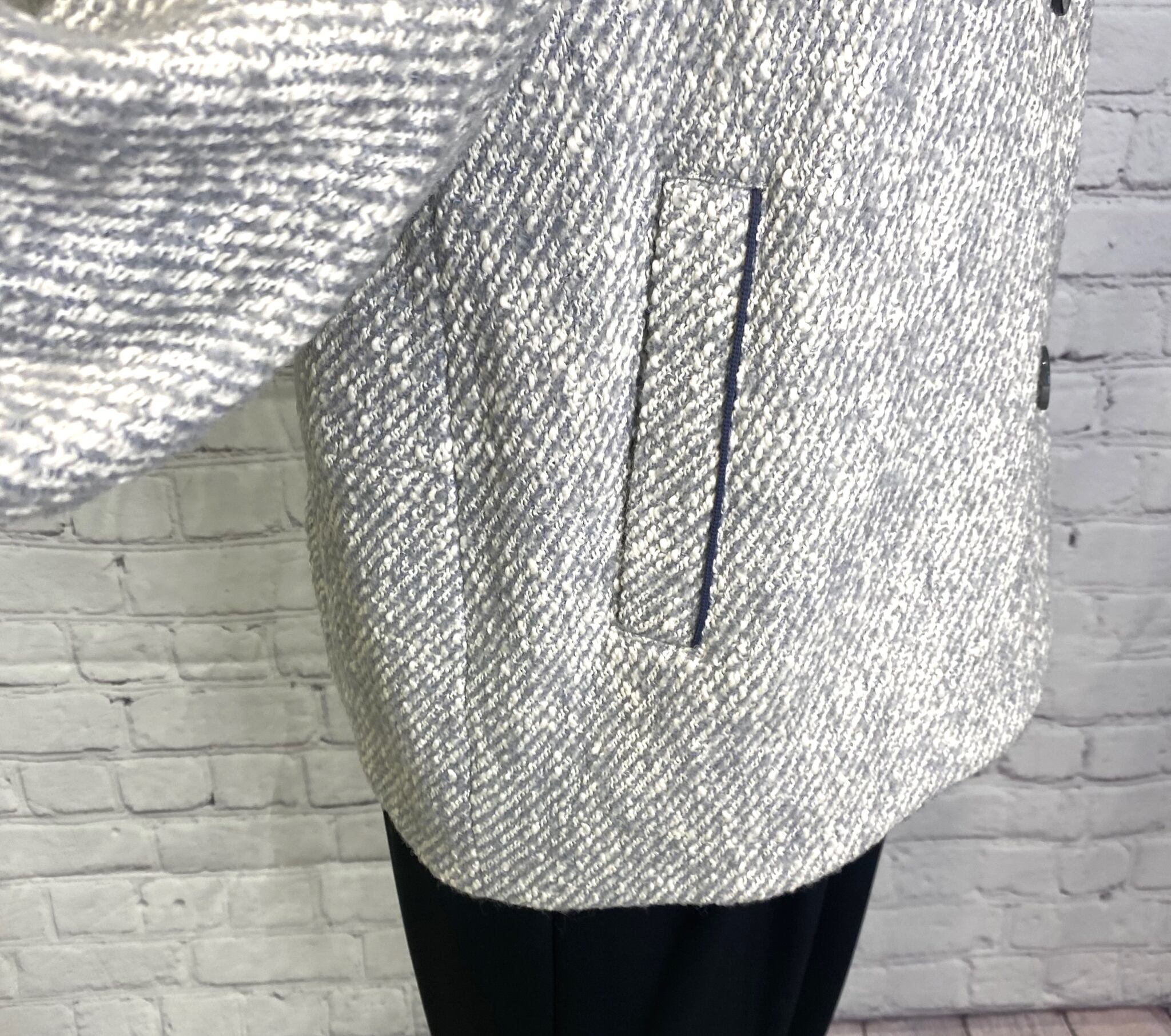 ネップが入った柔らかいツィード素材を使用したコートです。グレーは綾目、ネイビーはチェック柄になります。 すっきりしたキーネックで軽くてさっと羽織るのに便利なアウターです。ポケットあり。
