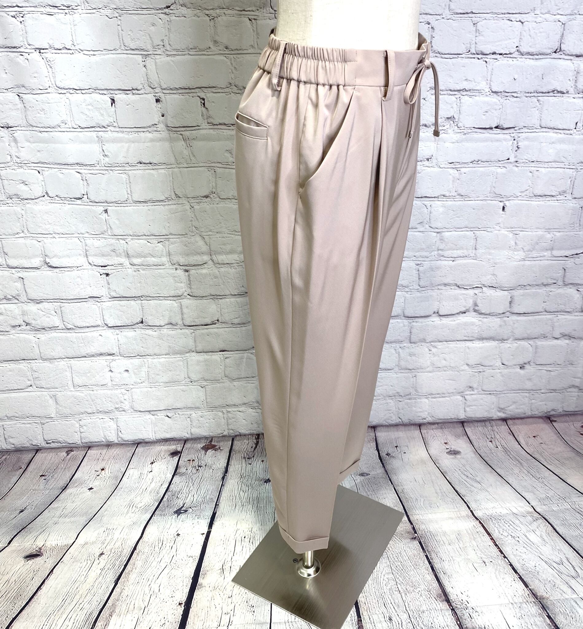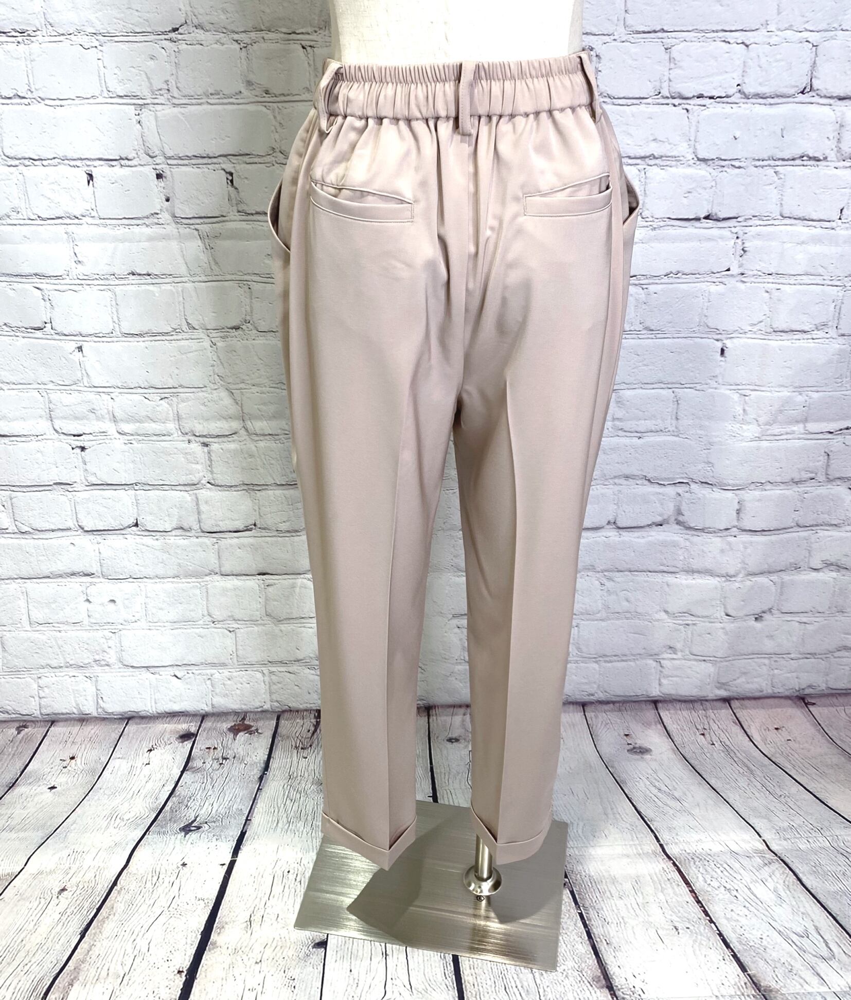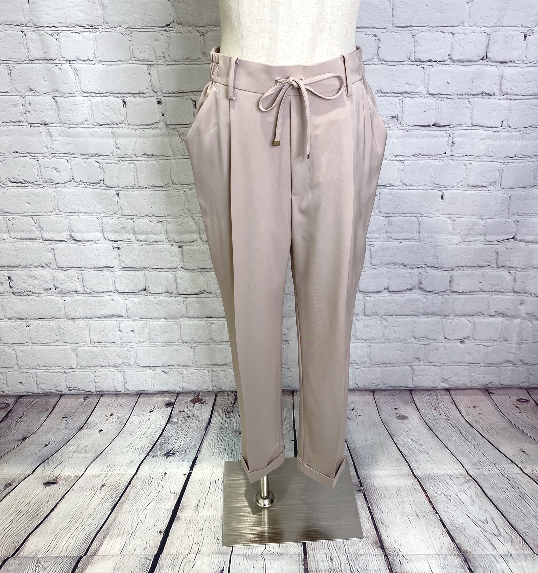 Dignite collier人気の定番シリーズからオケージョンにも使えるテーパードパンツです!きれいめのシルエットで合わせるトップスでカジュアルにもきれいめにも使えるアイテムです。ウエスト後ろゴム、前紐でサイズ調節できます。ポケットあり。お家で洗えます。
