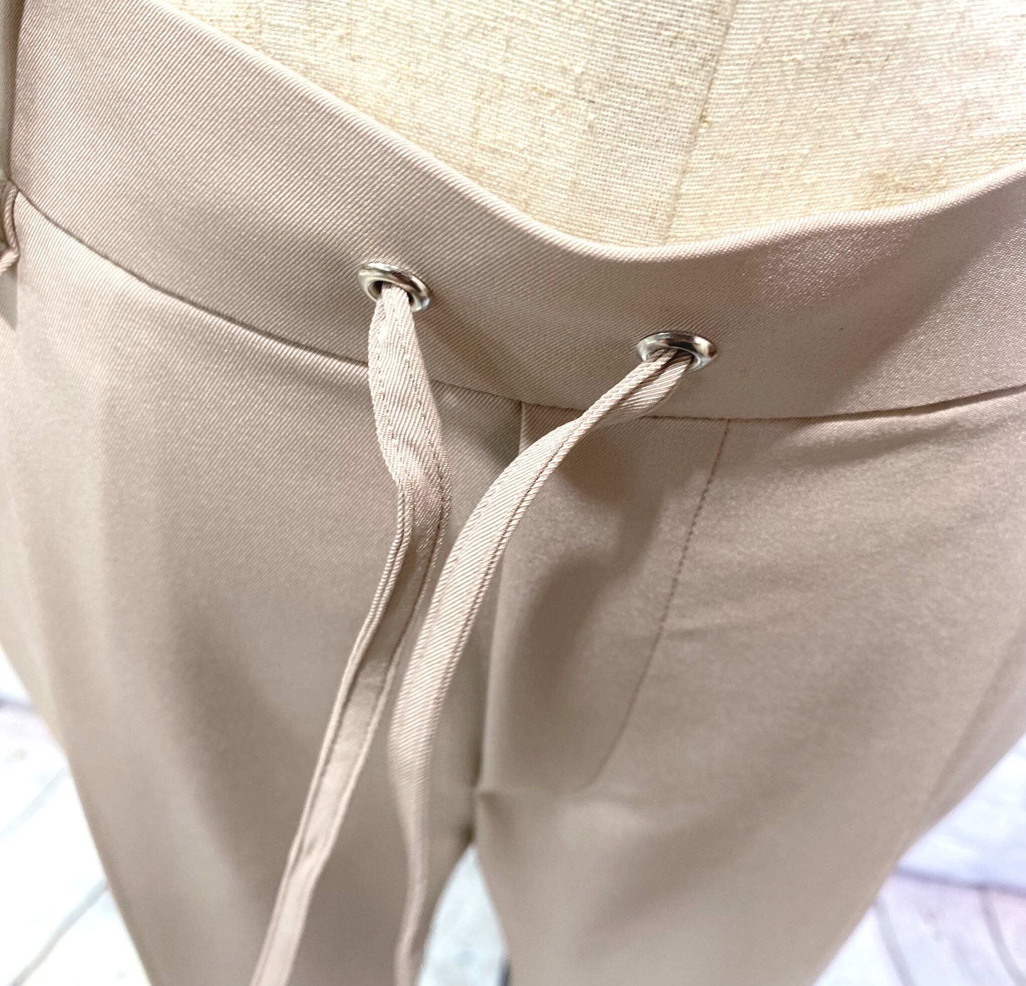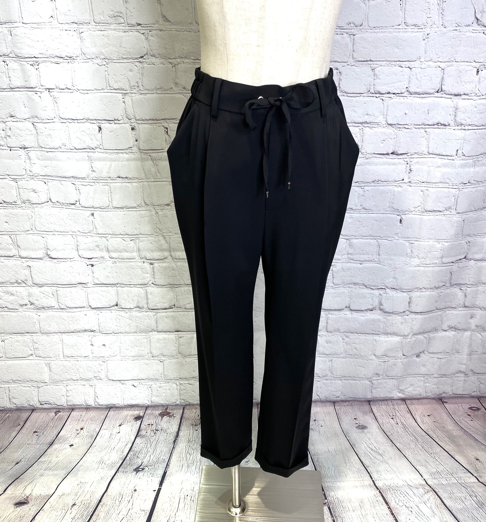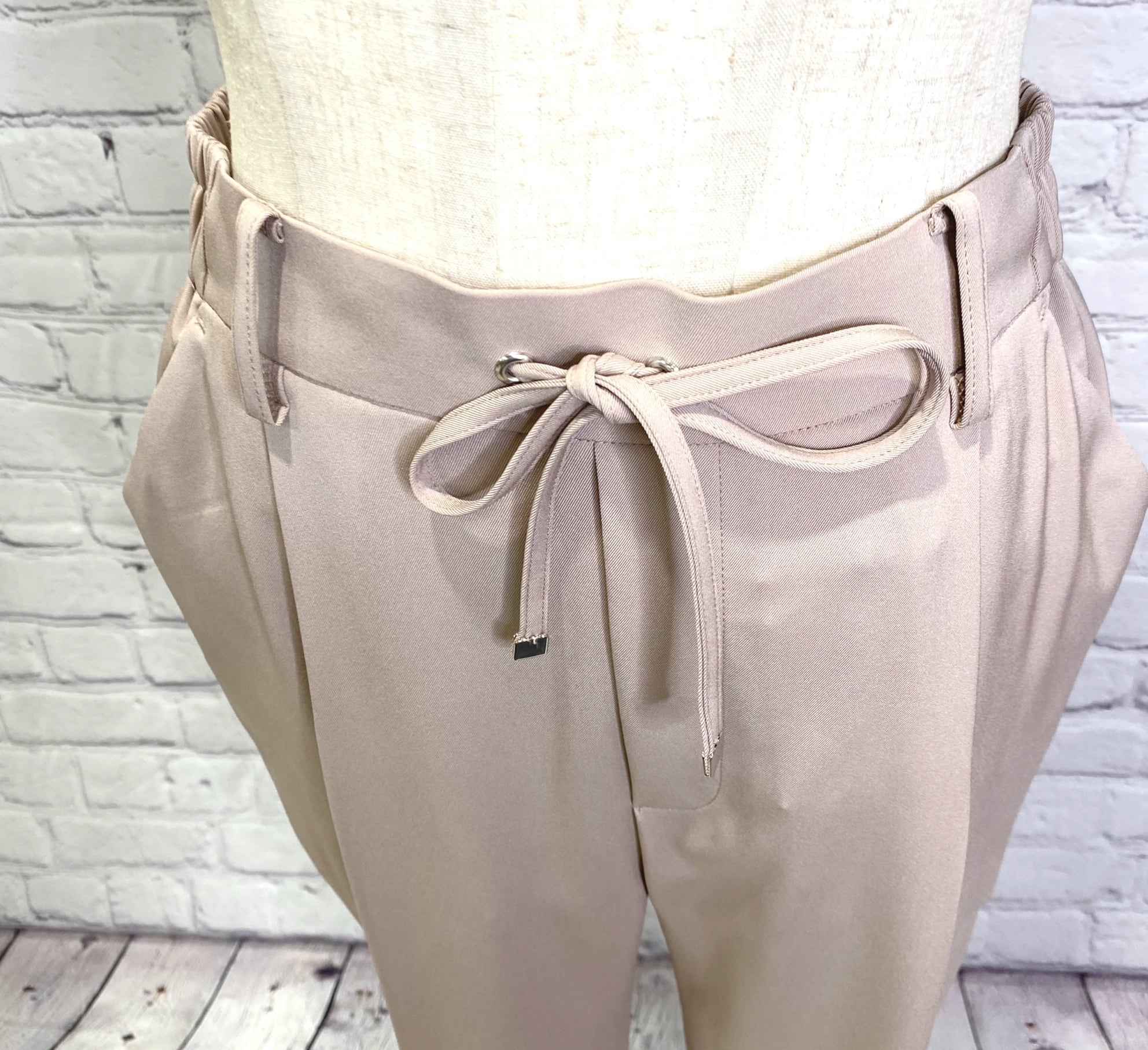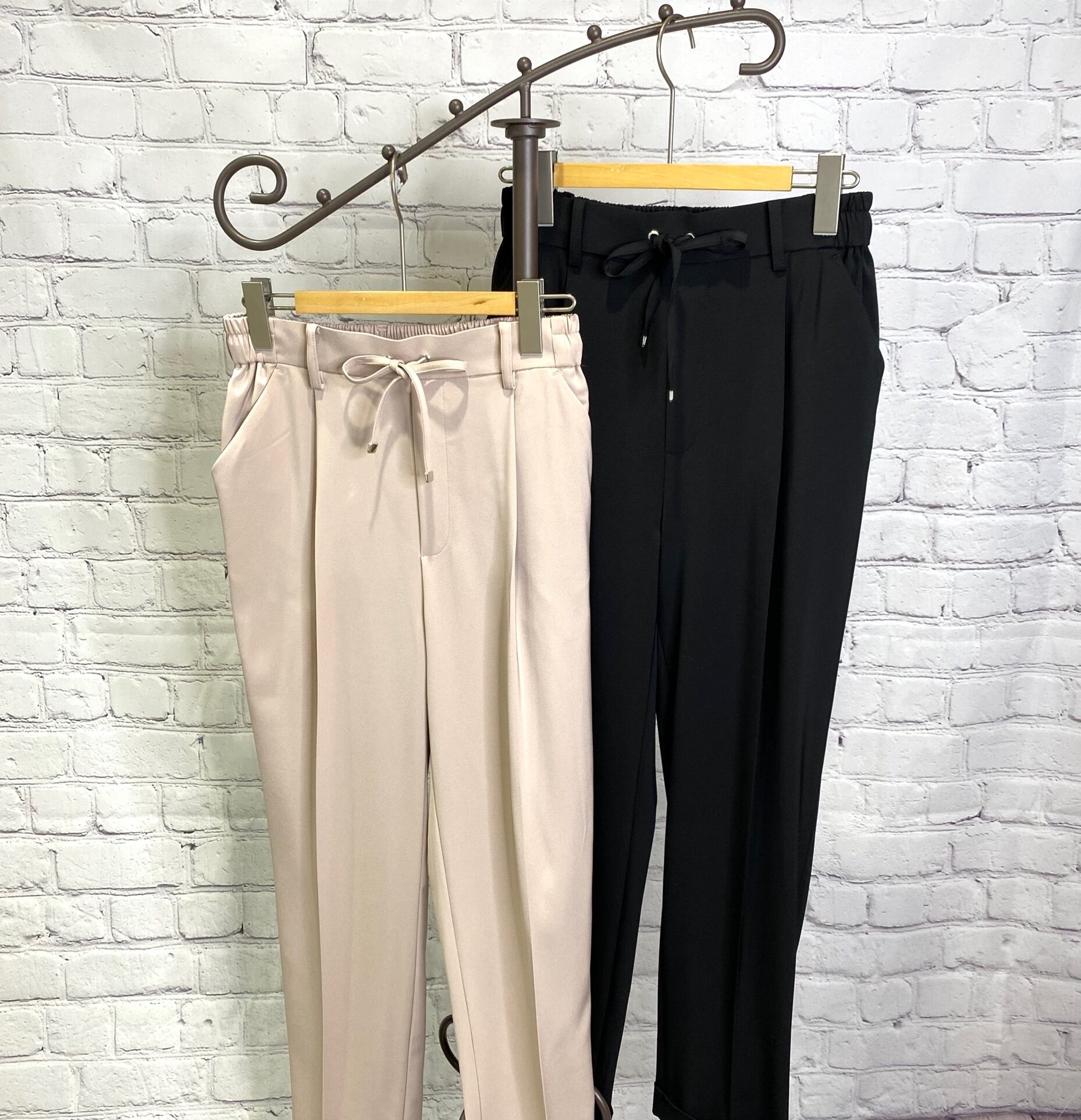 Dignite collier人気の定番シリーズからオケージョンにも使えるテーパードパンツです!きれいめのシルエットで合わせるトップスでカジュアルにもきれいめにも使えるアイテムです。ウエスト後ろゴム、前紐でサイズ調節できます。ポケットあり。お家で洗えます。